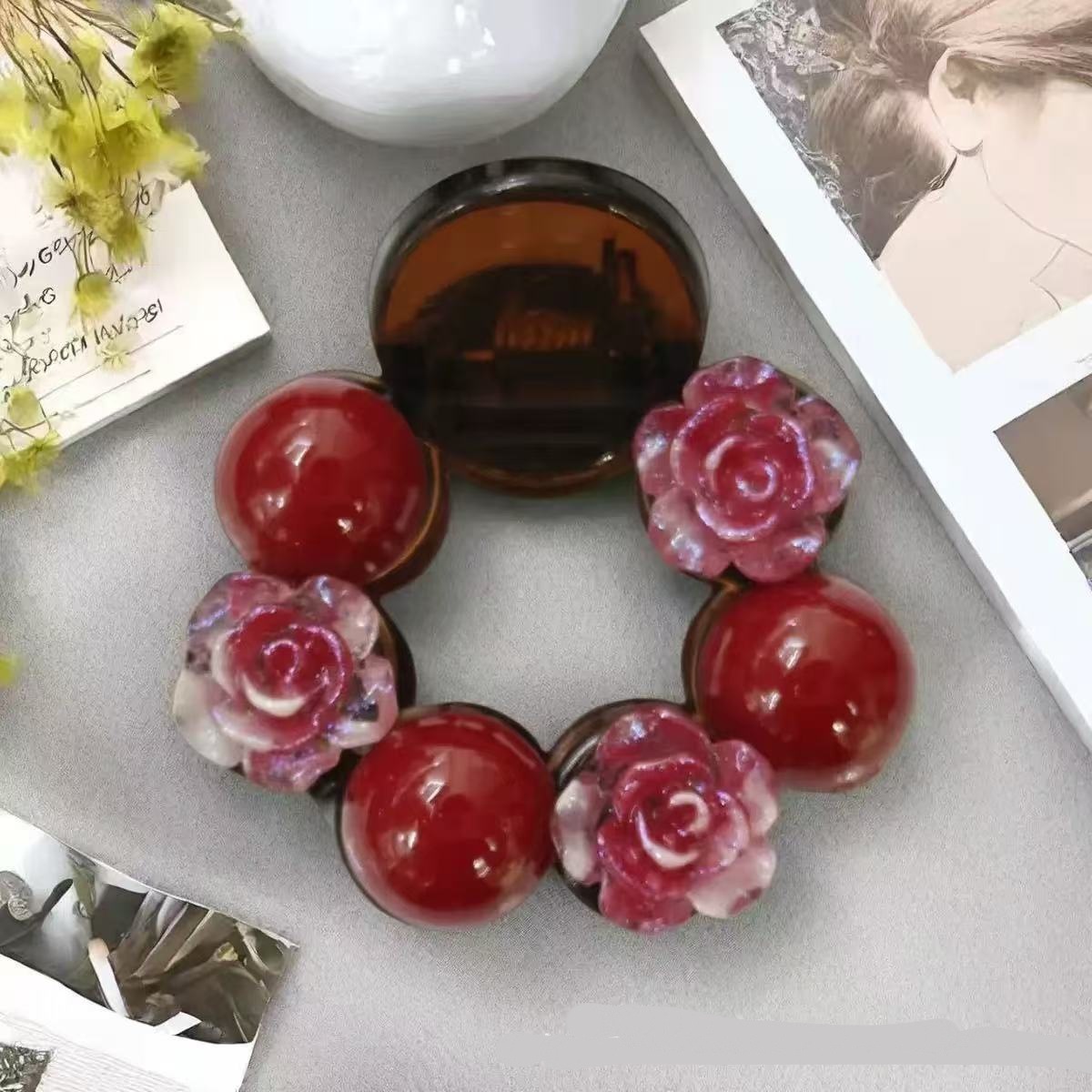 • 스파클링 로즈 라운드 클립 [4cm]