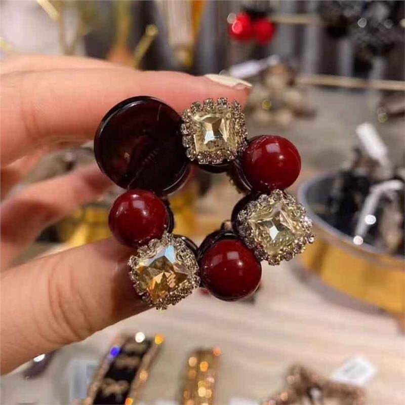 • 스퀘어 다이아몬드 레드 비즈 라운드 클립 [4cm]