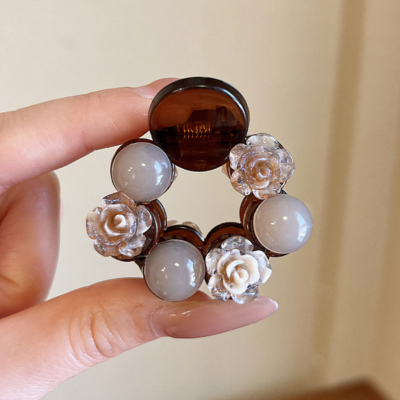 가볍고 고급스러운 향기로운 진주 동백 머리핀 2025 새로운 스타일의 반 머리핀 머리 뒤쪽에 머리카락이 적은 상어 클립