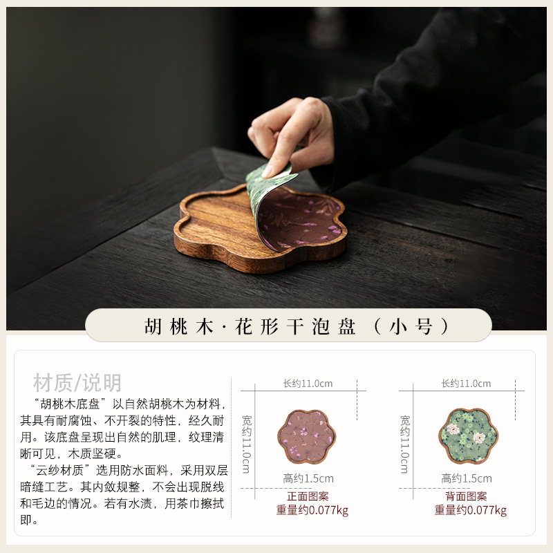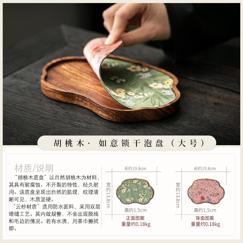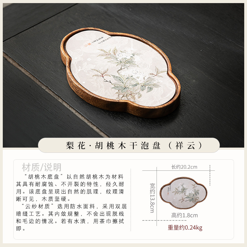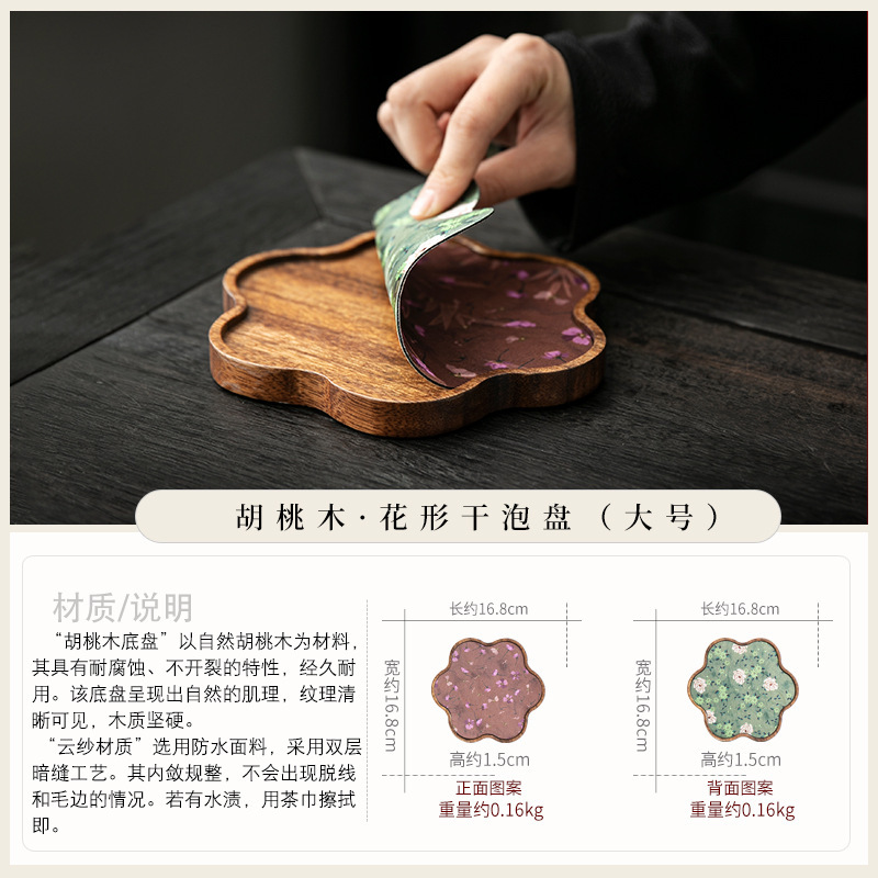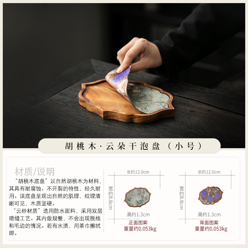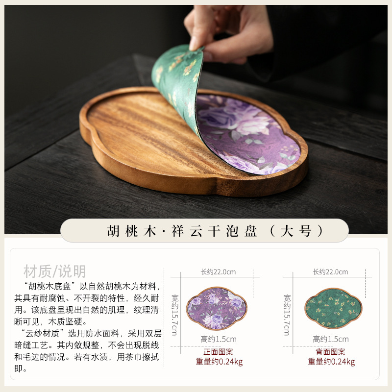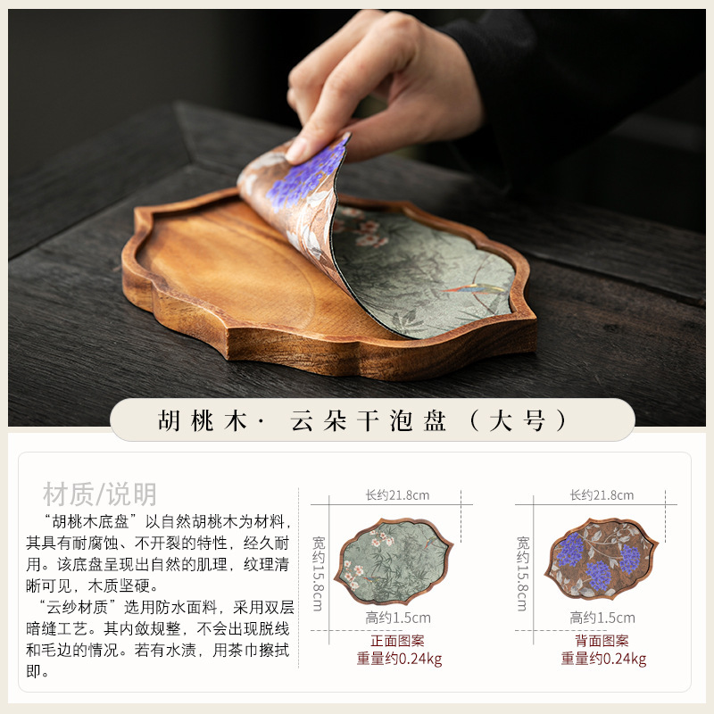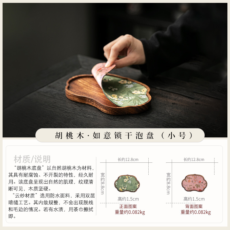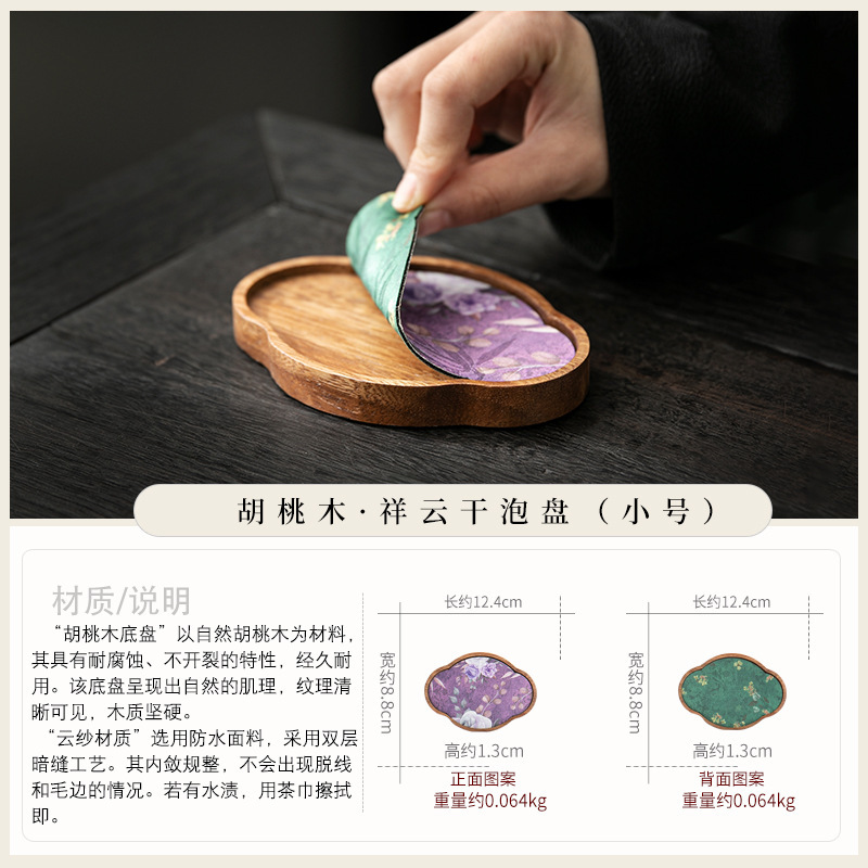 호두 냄비 베어링 트레이 드라이 버블 타이 중 스타일 중국 스타일 패브릭 티 컵 매트 매트 작은 솔리드 우드 티 플레이트 티 플레이트 티 트레이