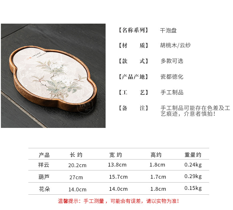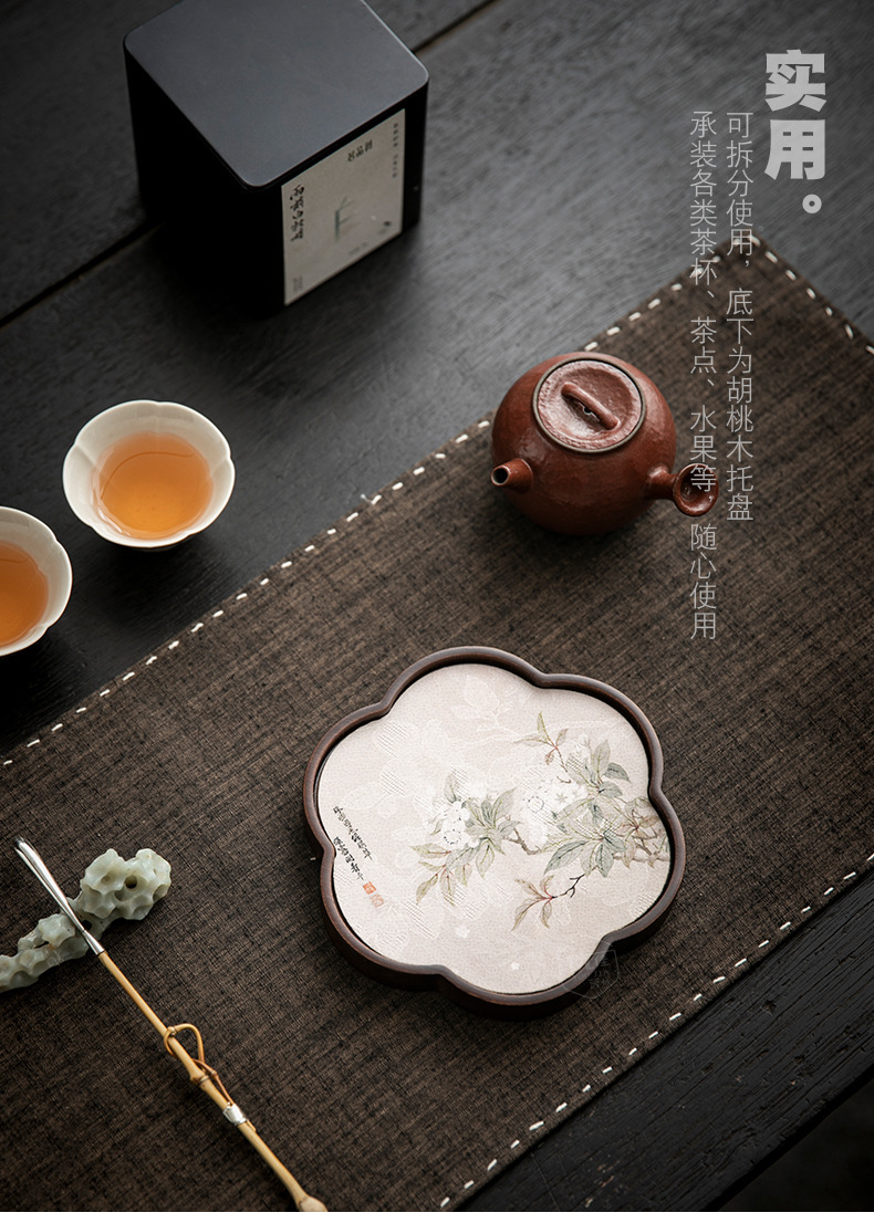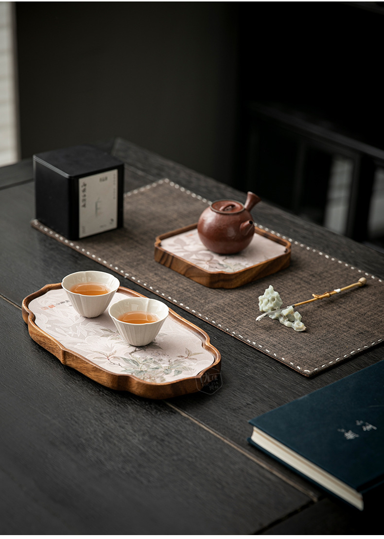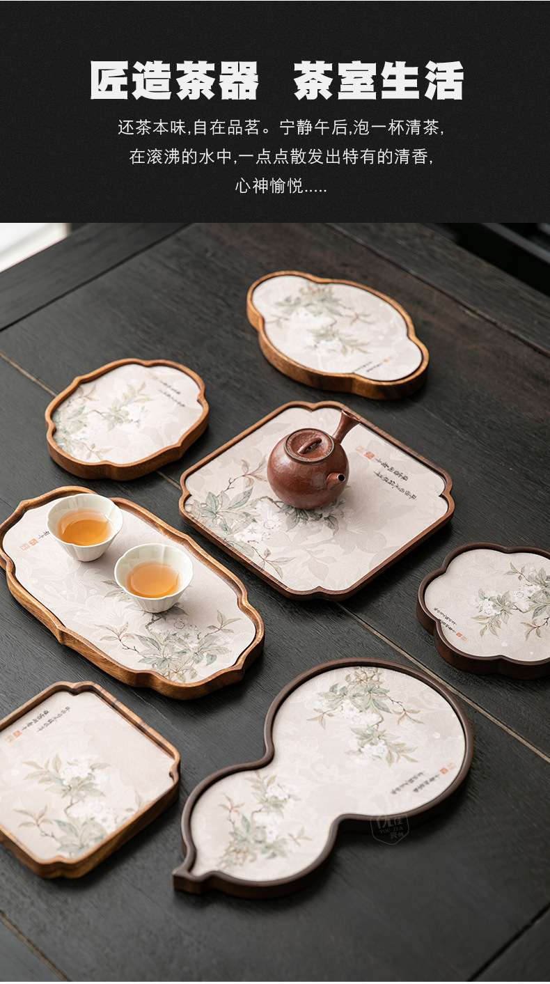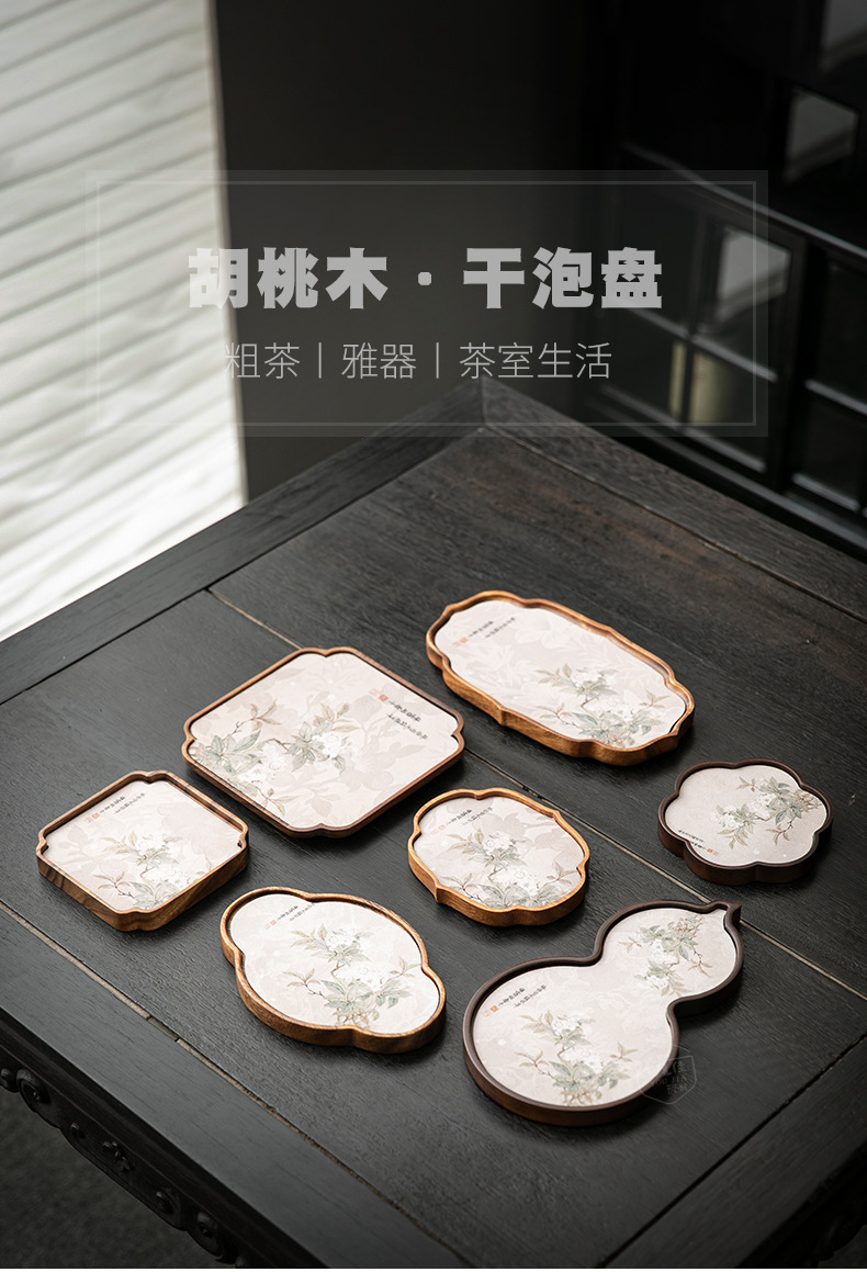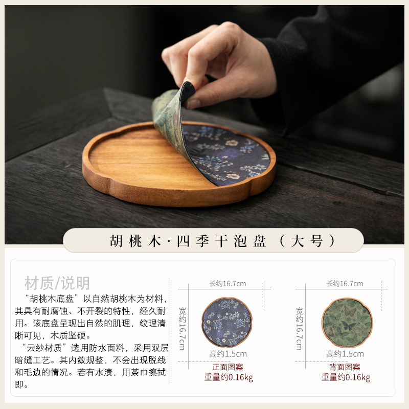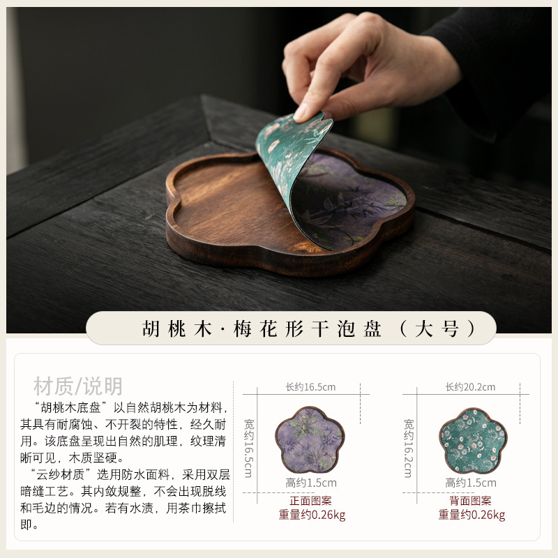 호두 냄비 베어링 트레이 드라이 버블 타이 중 스타일 중국 스타일 패브릭 티 컵 매트 매트 작은 솔리드 우드 티 플레이트 티 플레이트 티 트레이