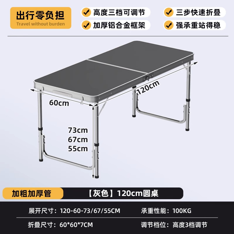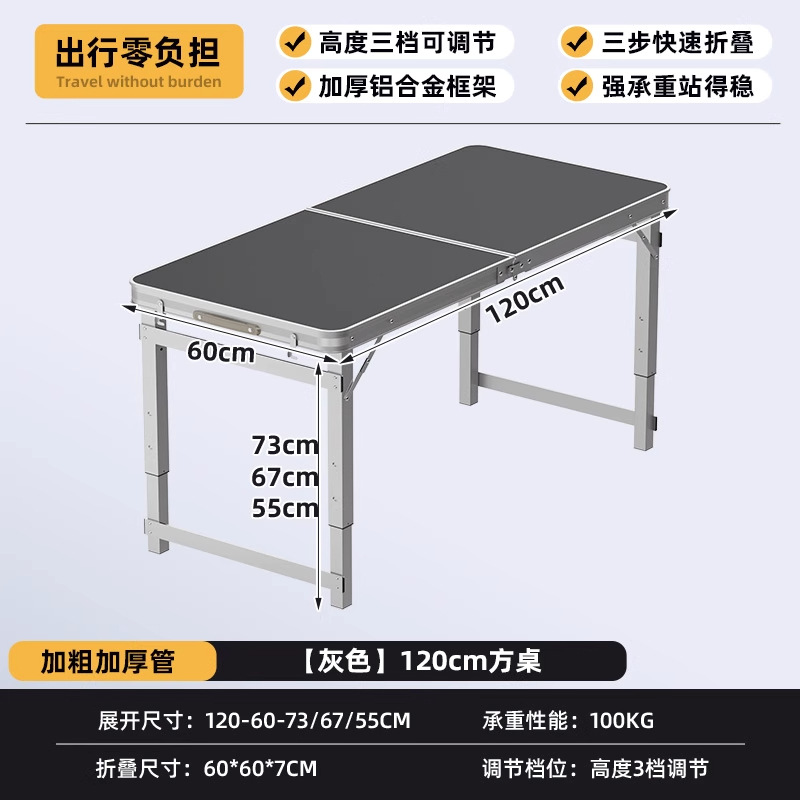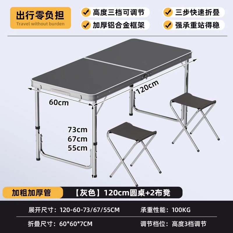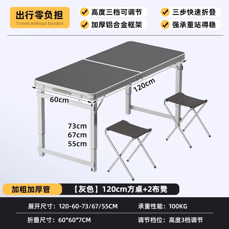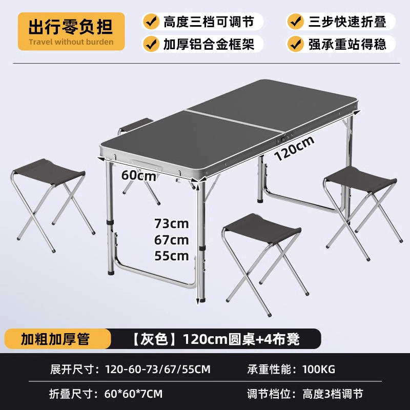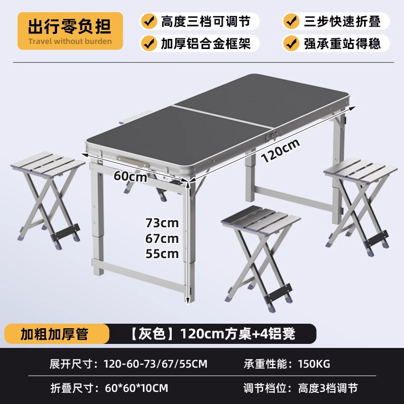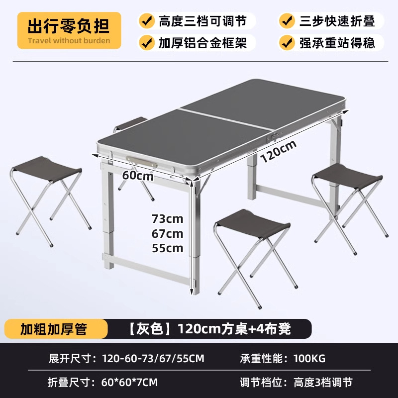 • [다크그레이] 120*60cm (두꺼운 사각관 설치 불필요) + 알루미늄 스툴 4개