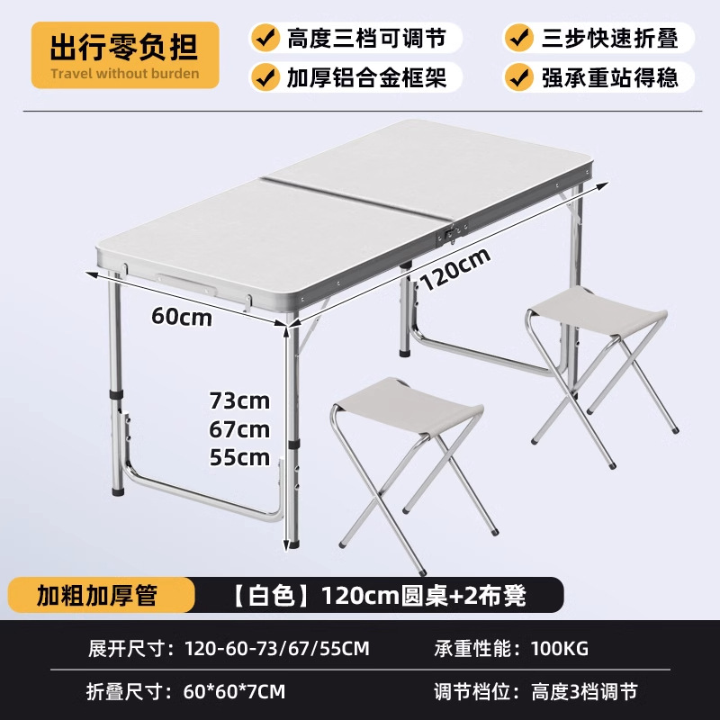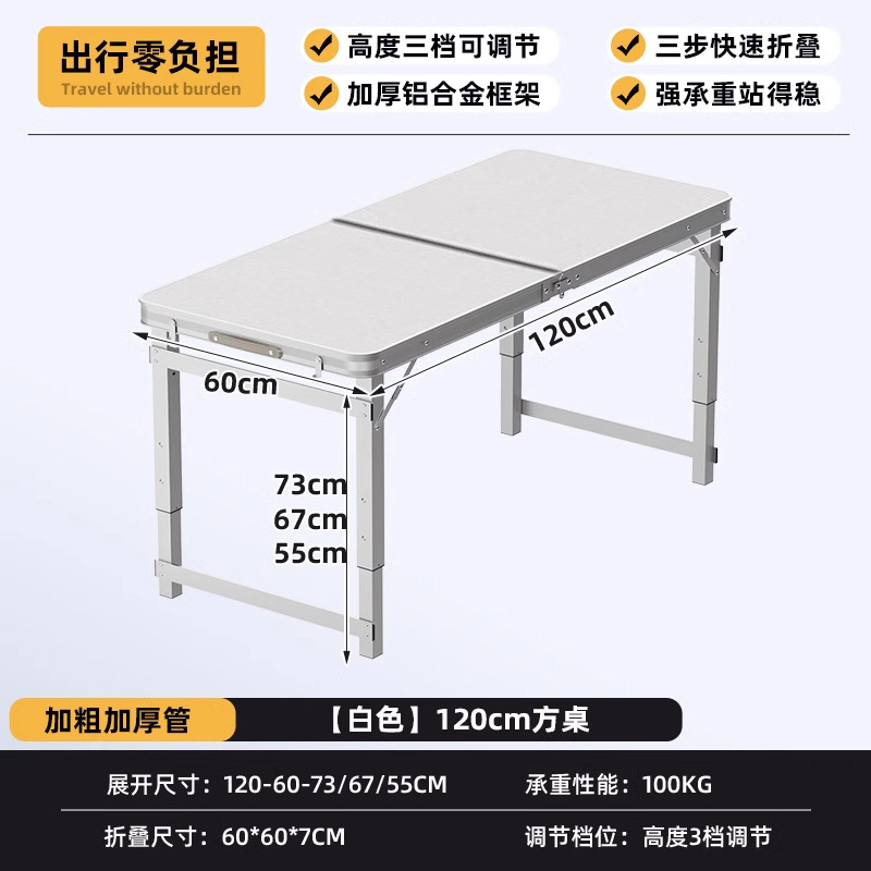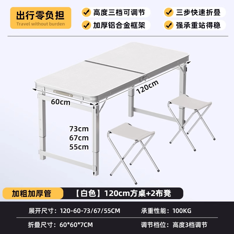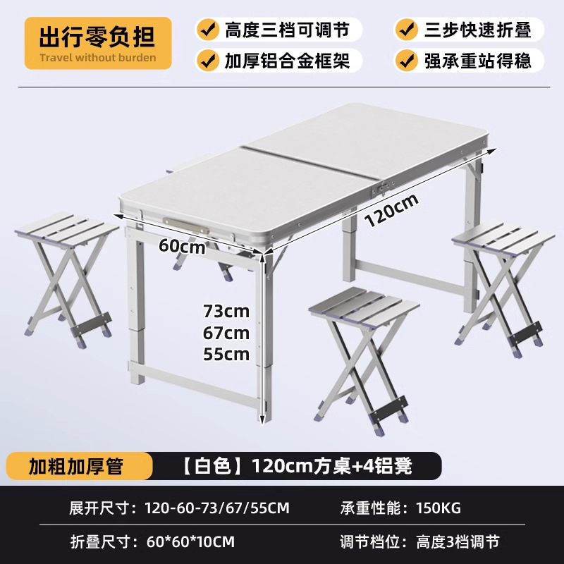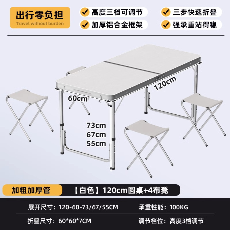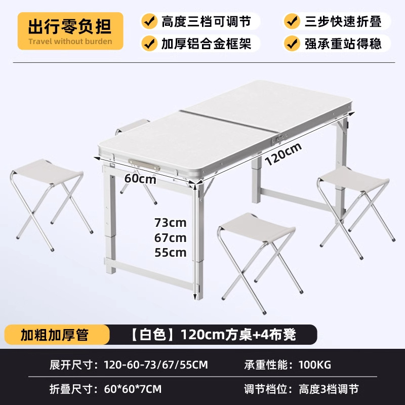 • [화이트] 120*60cm (두꺼운 사각관 설치 불필요) + 시원한 알루미늄 스툴*4