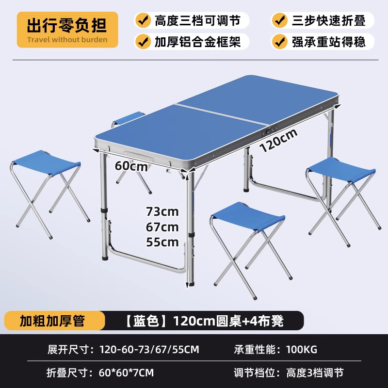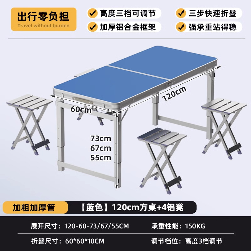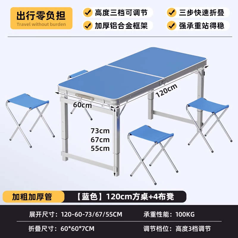 • [블루] 120*60cm (두꺼운 사각 튜브 설치 불필요) + 알루미늄 스툴 4개