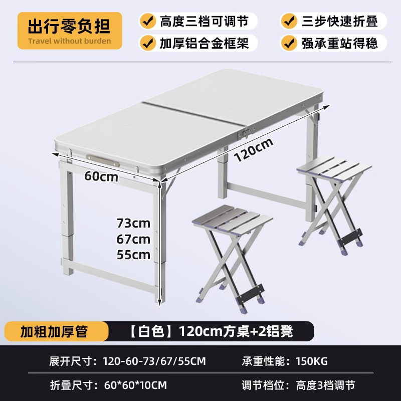 • [화이트] 120*60cm (두꺼운 사각관 설치 불필요) + 알루미늄 스툴 2개