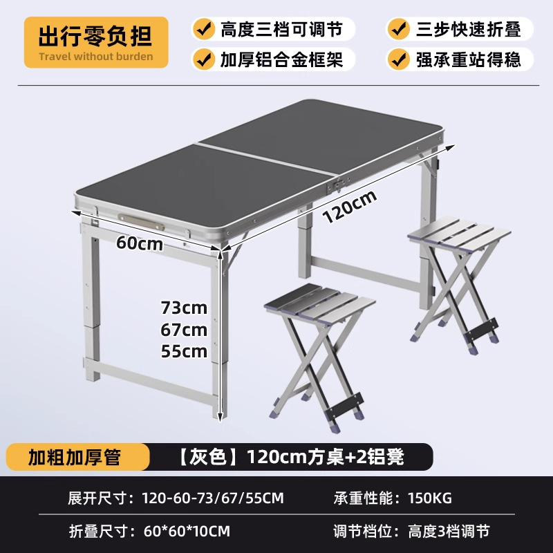 • [다크그레이] 120*60cm (두꺼운 사각튜브 설치 불필요) + 알루미늄 스툴 2개