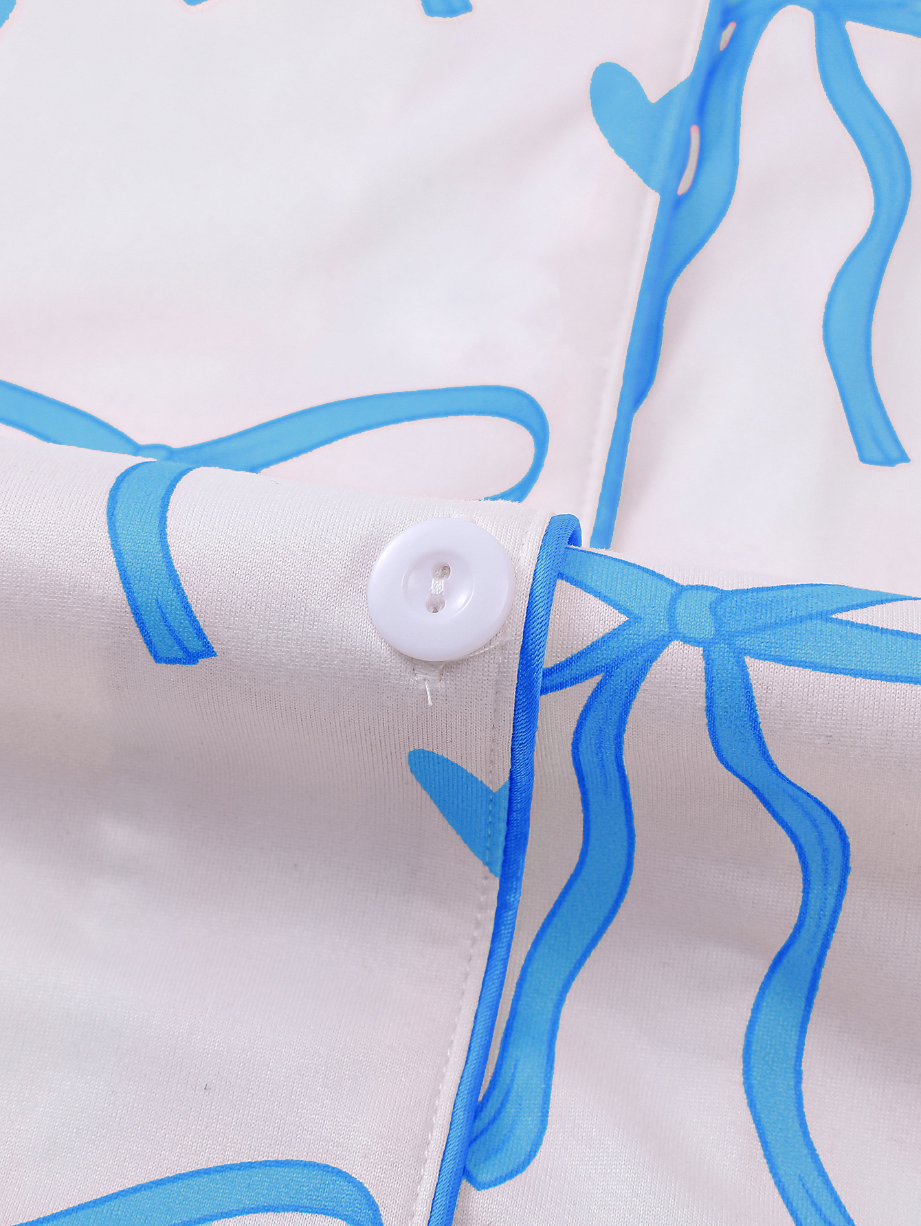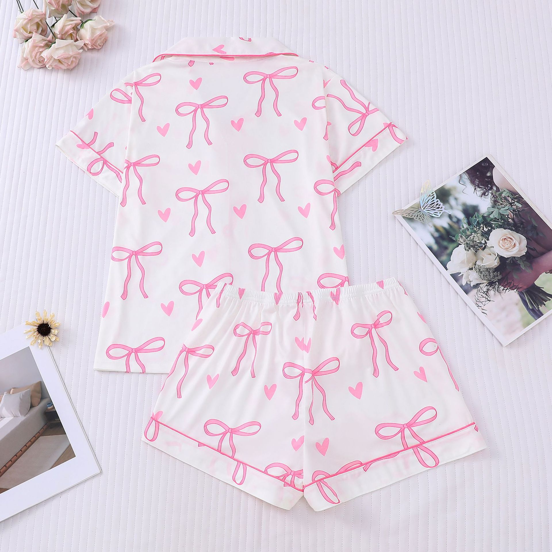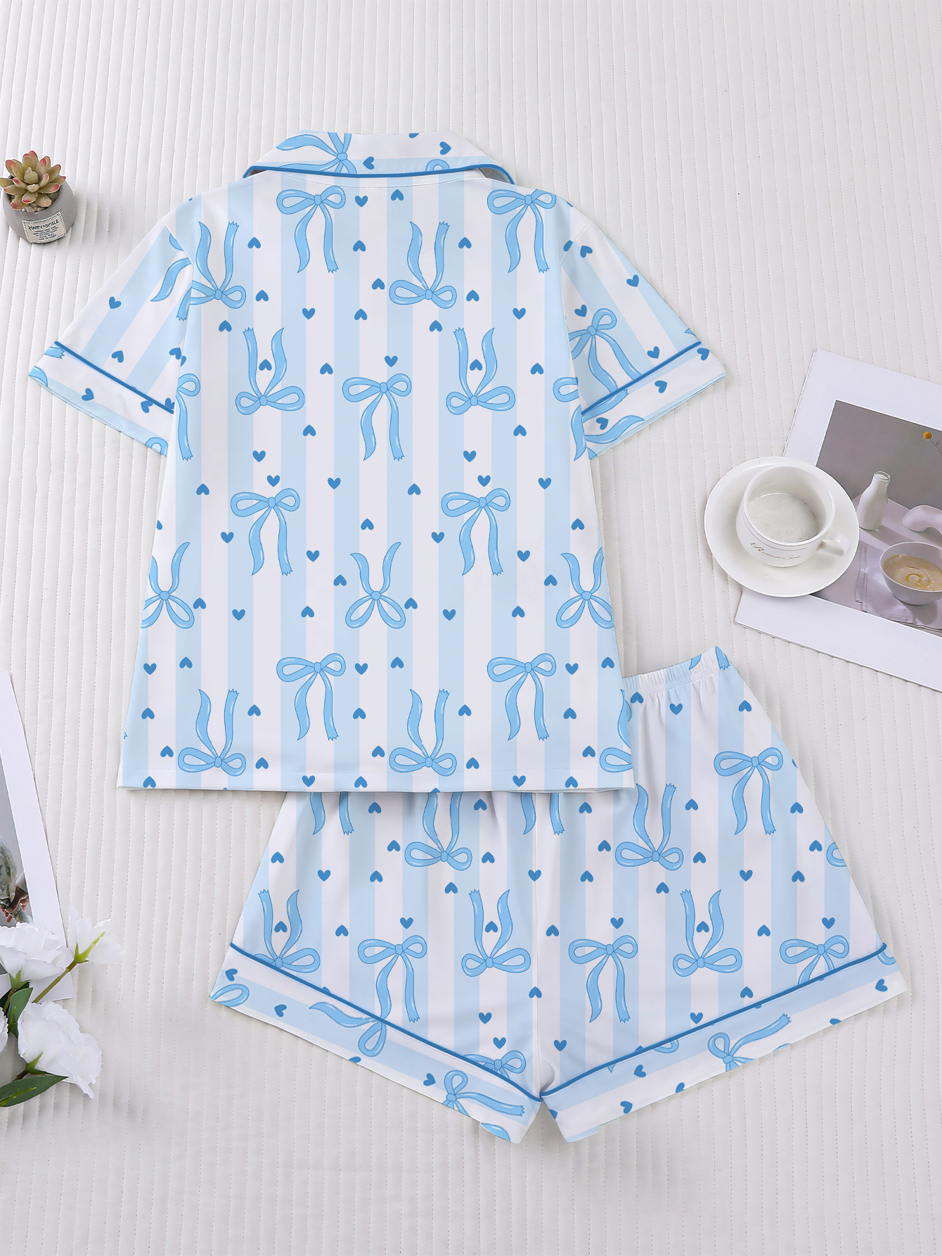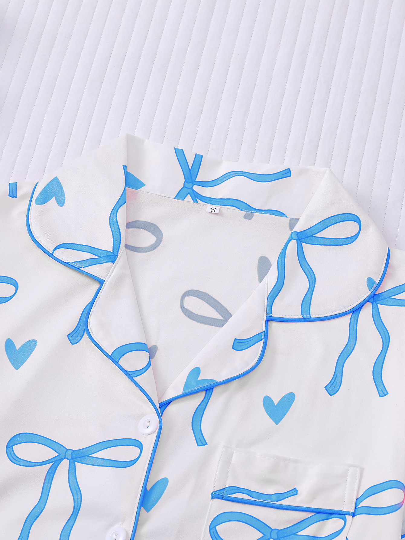 국경 간 대외 무역 새로운 스타일의 잠옷 사계절 활 프린트 라펠 느슨한 반팔 반바지 여성 홈웨어 세트