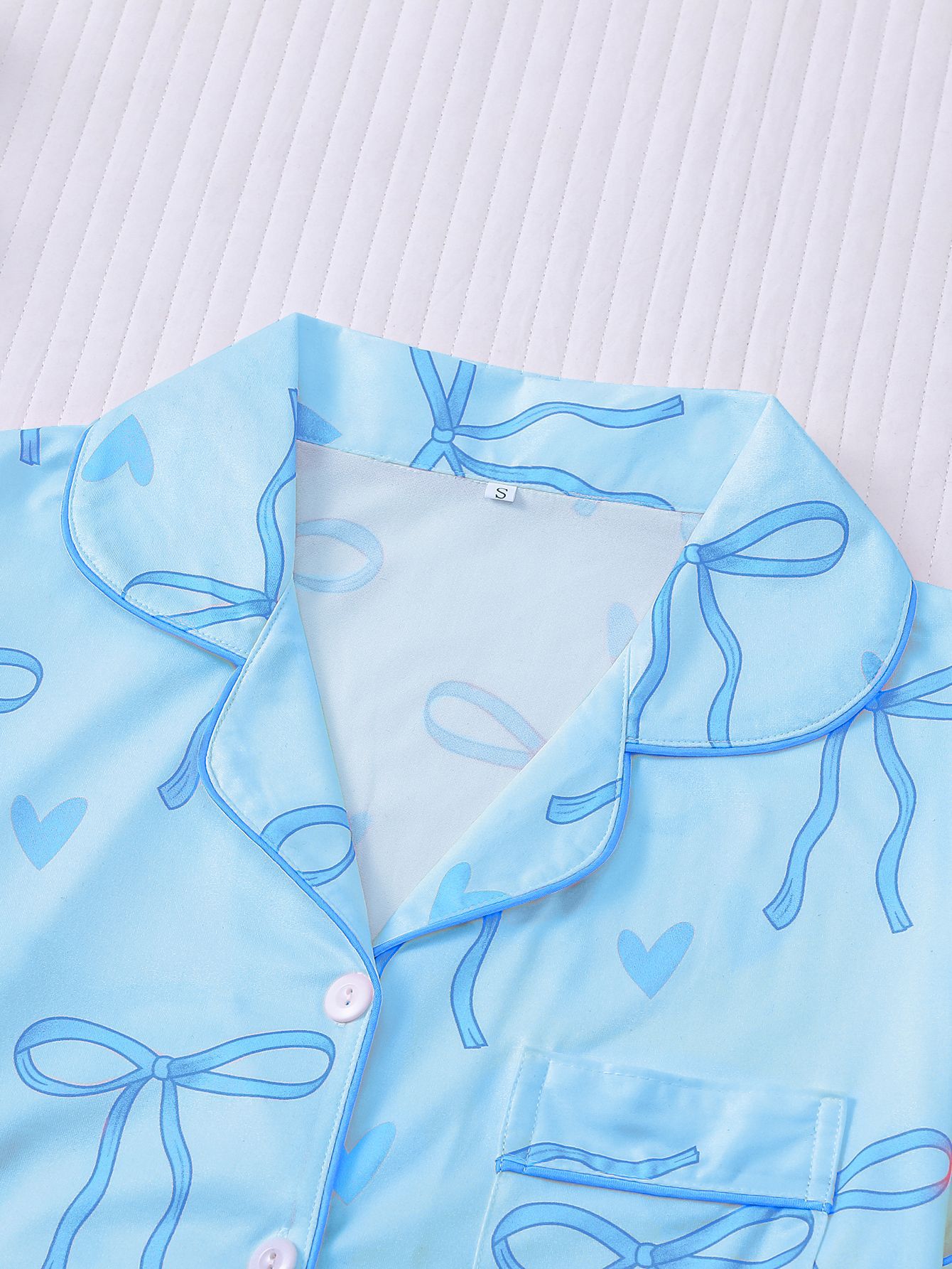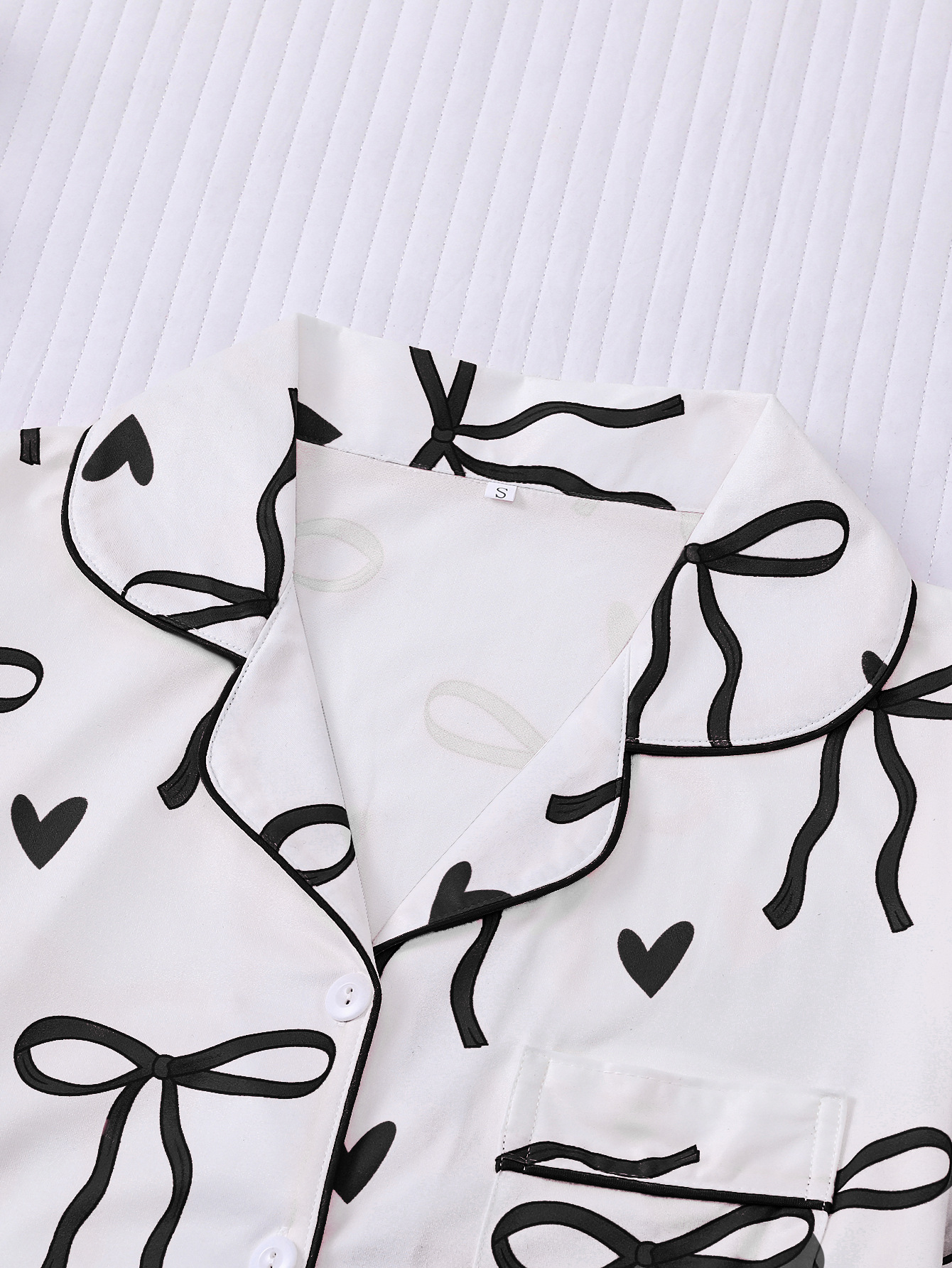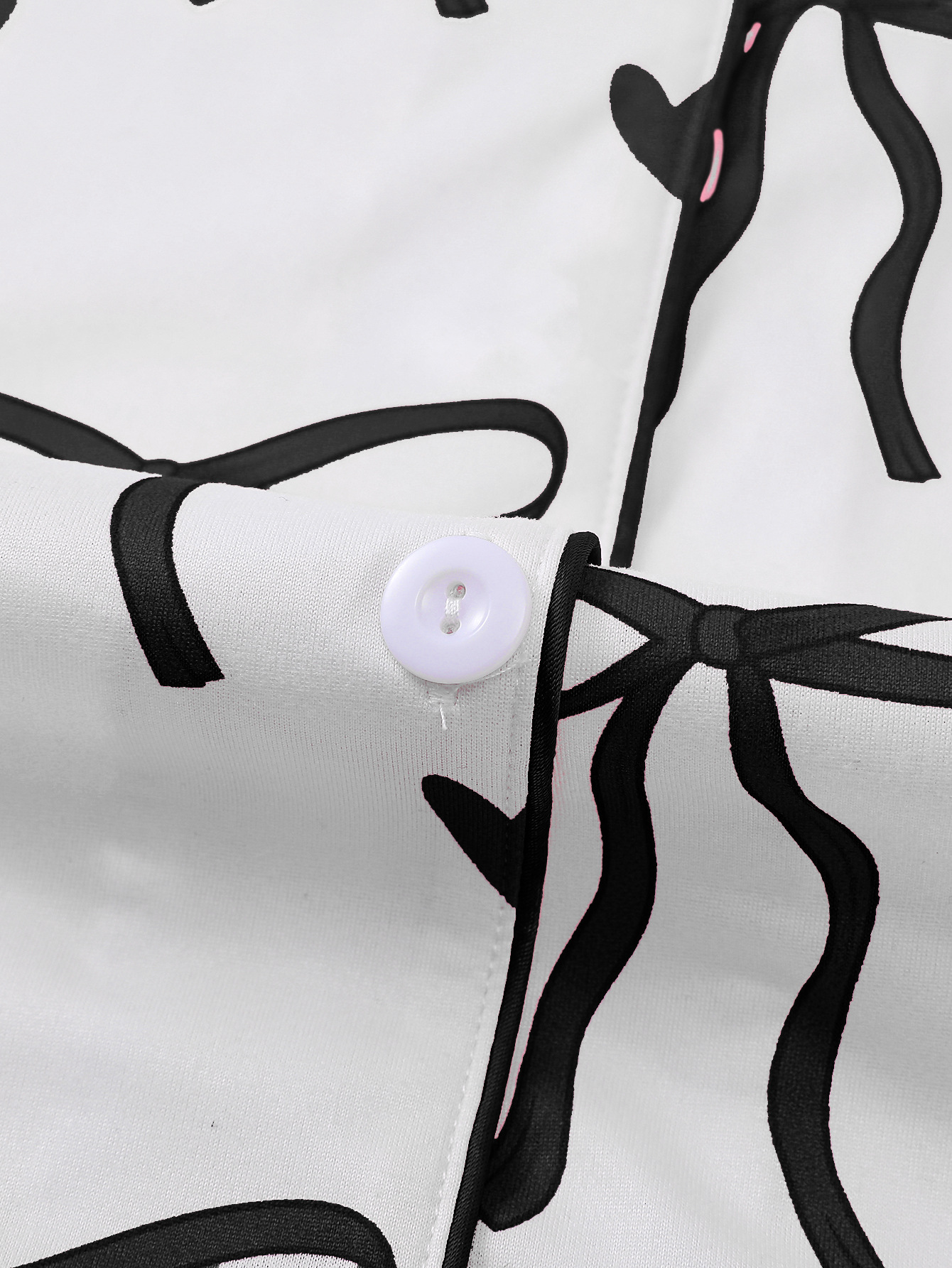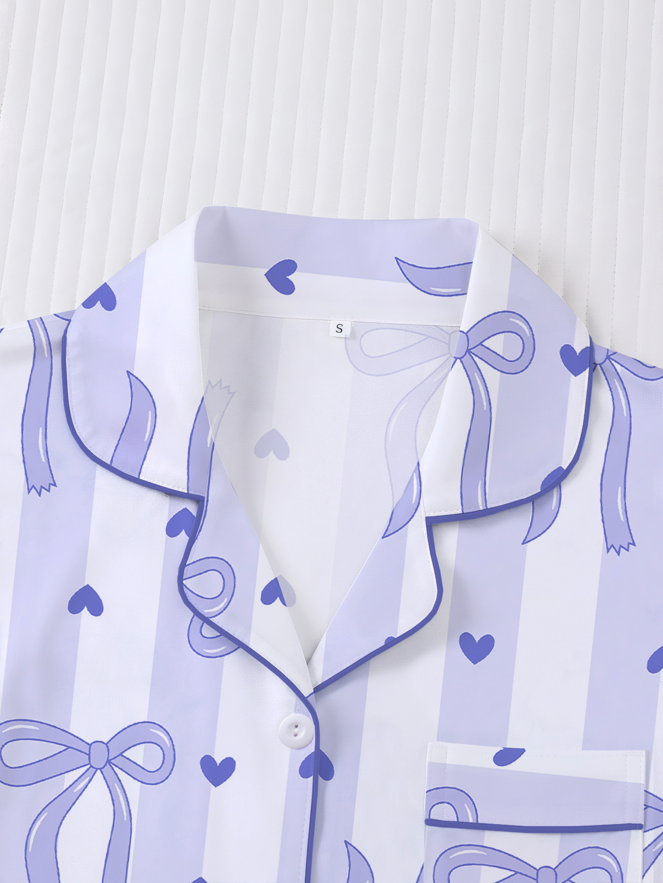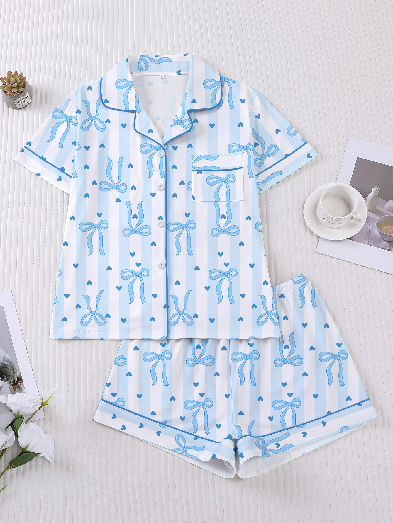 국경 간 대외 무역 새로운 스타일의 잠옷 사계절 활 프린트 라펠 느슨한 반팔 반바지 여성 홈웨어 세트