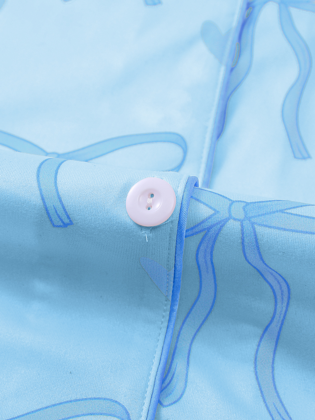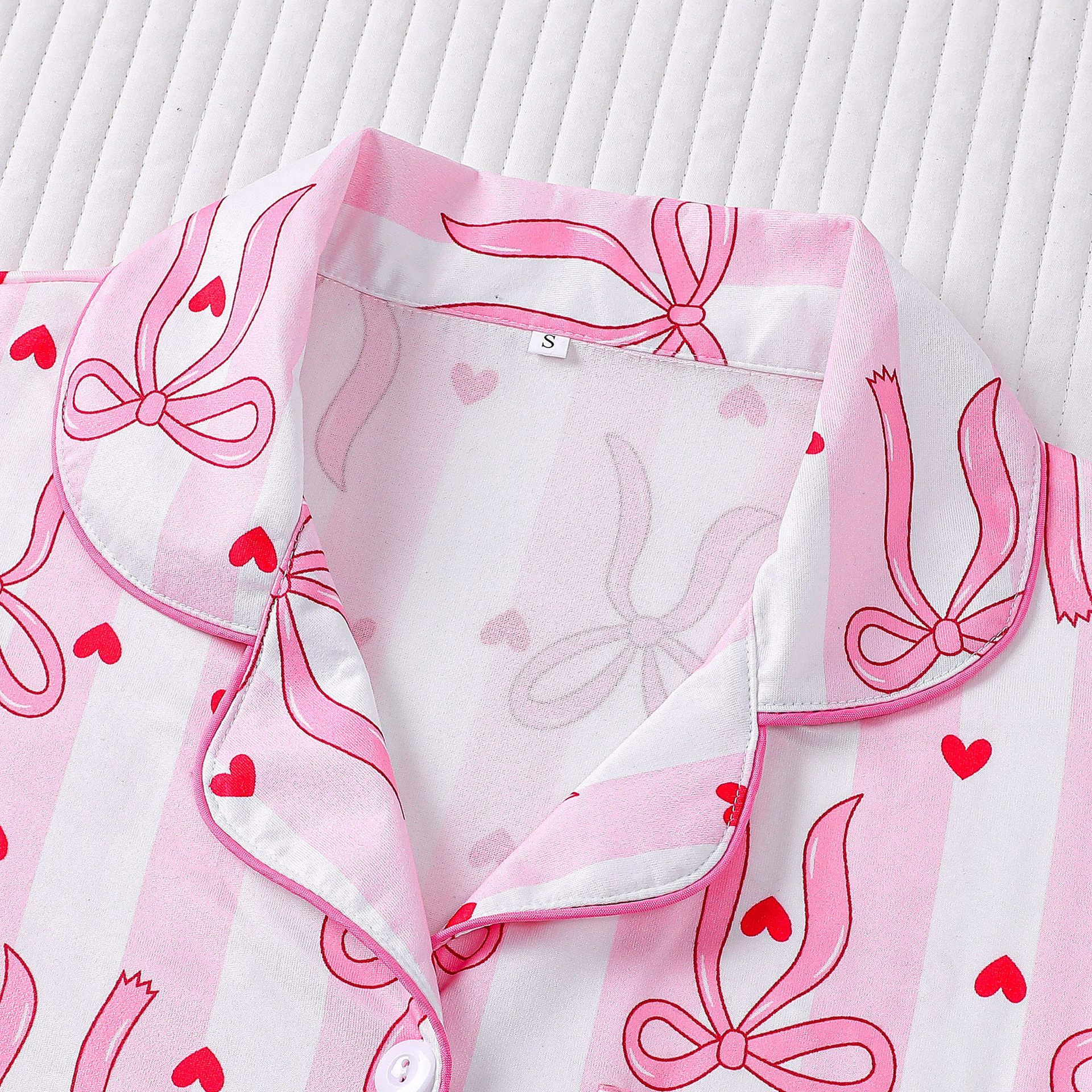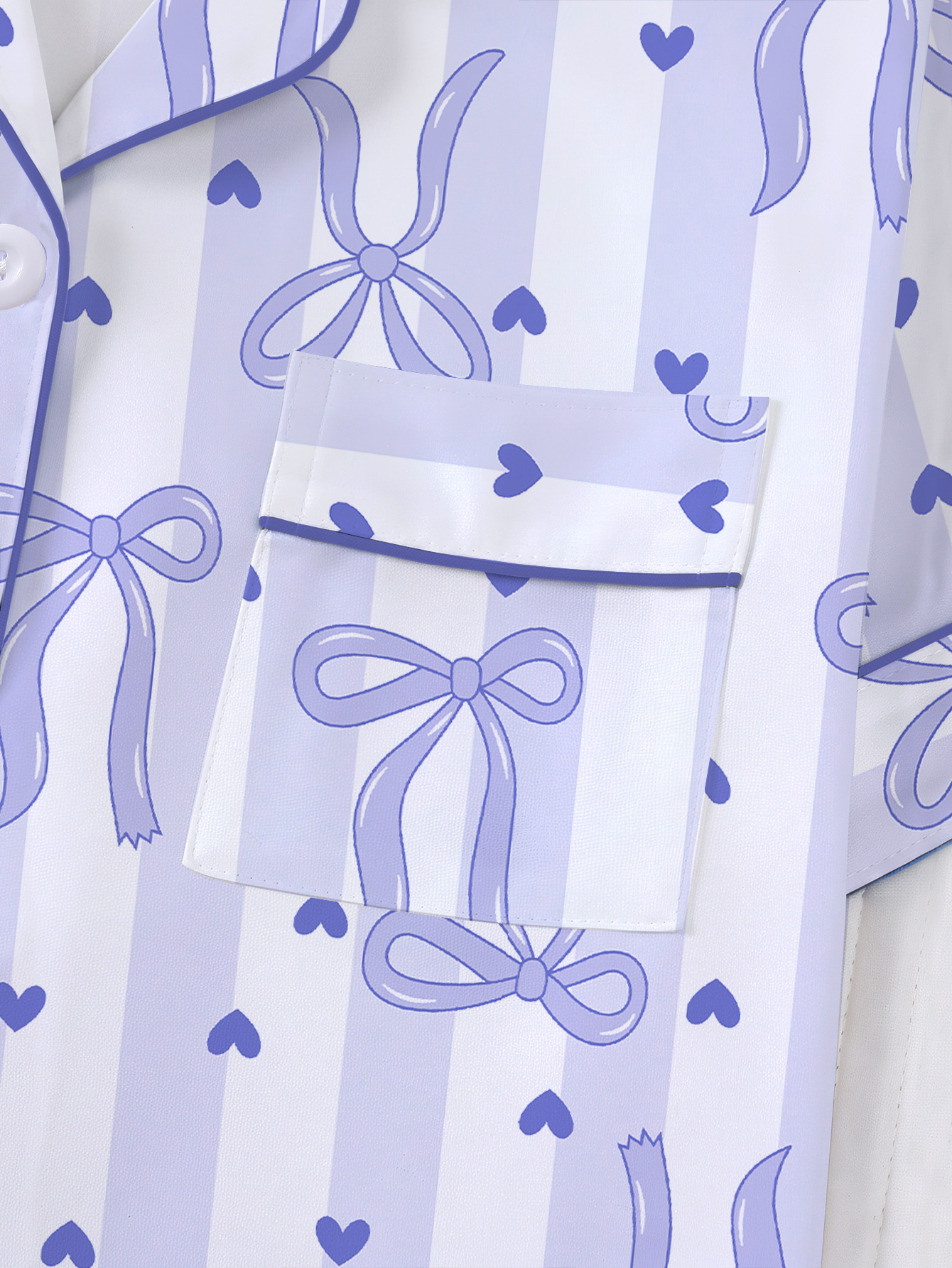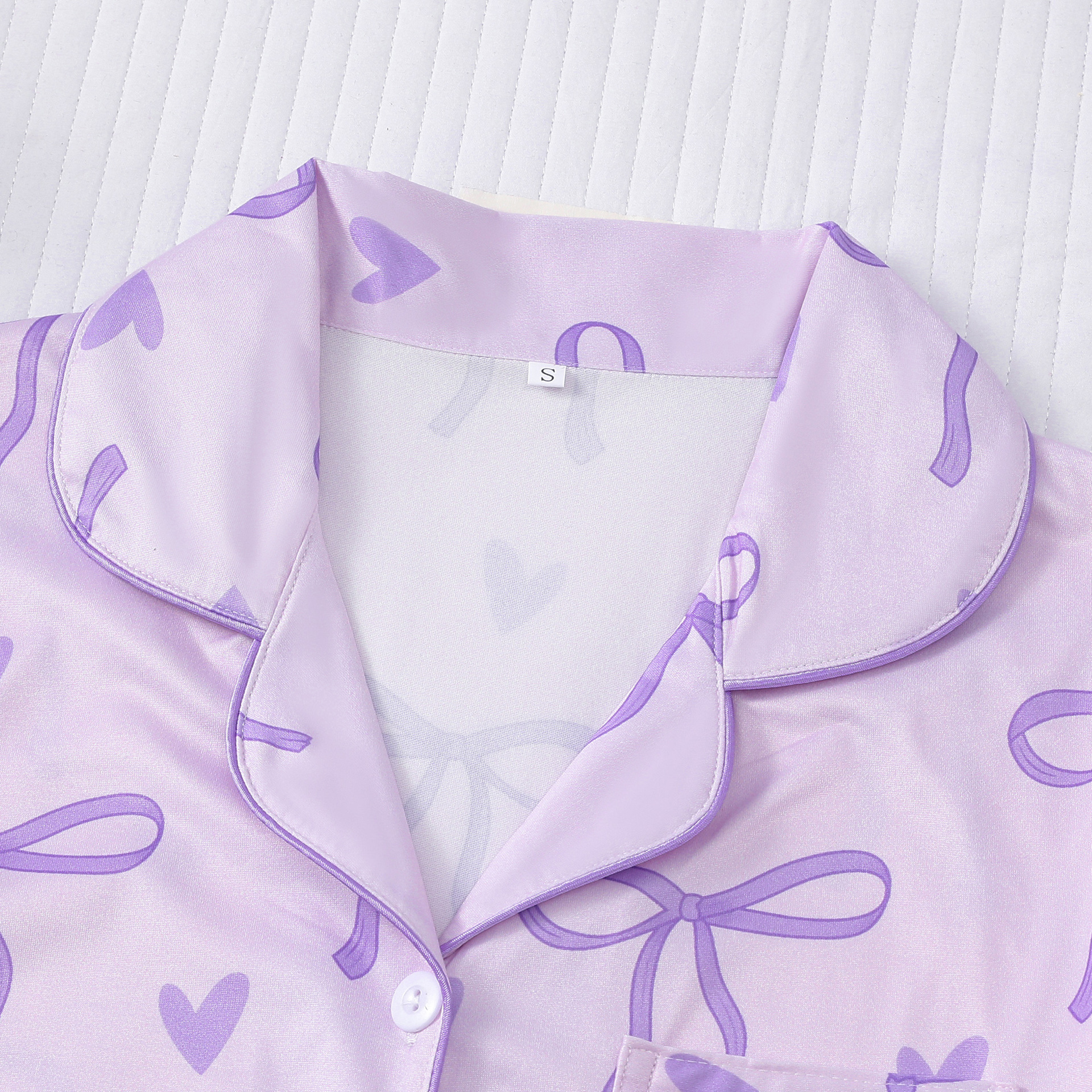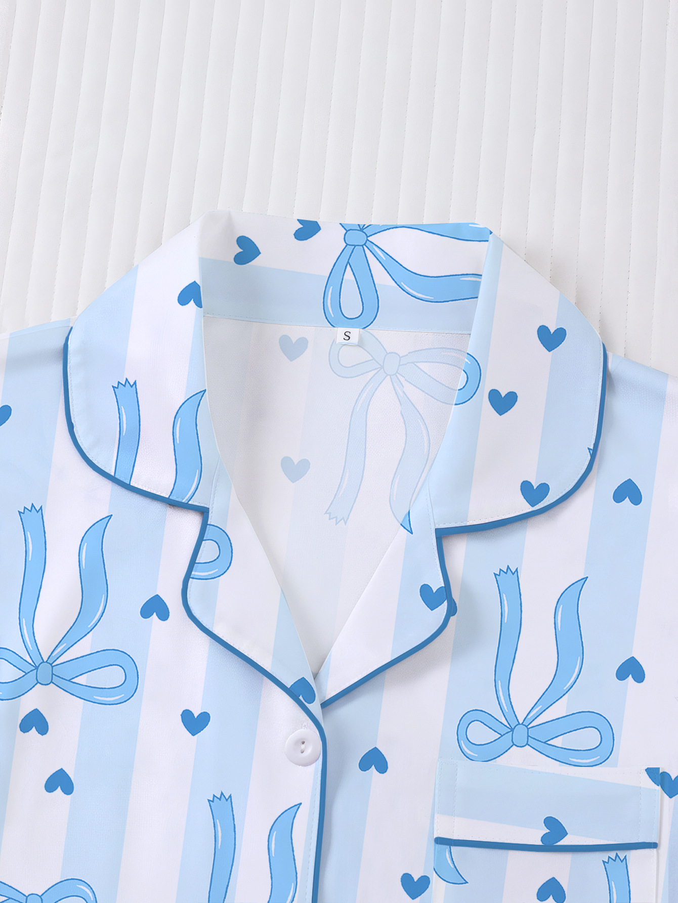 국경 간 대외 무역 새로운 스타일의 잠옷 사계절 활 프린트 라펠 느슨한 반팔 반바지 여성 홈웨어 세트