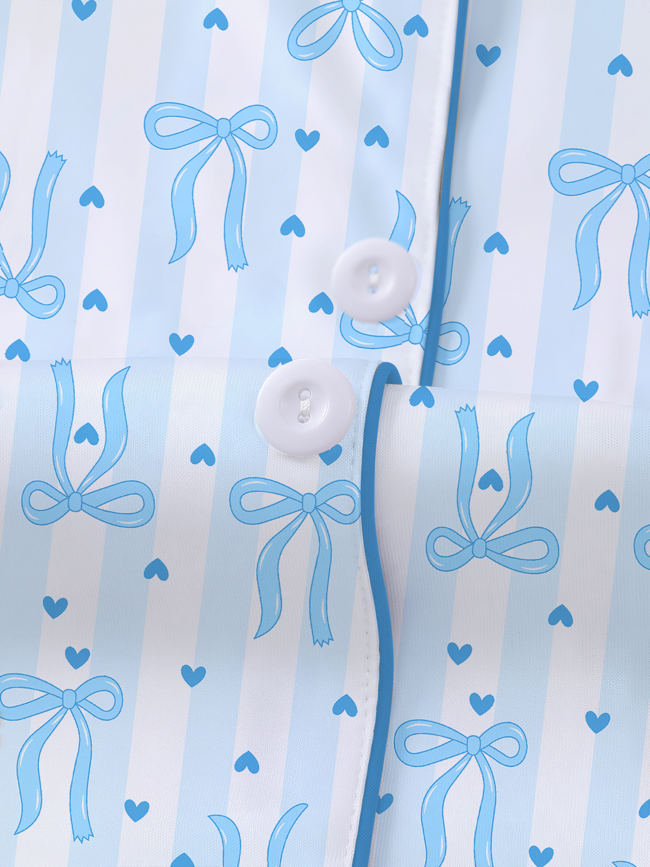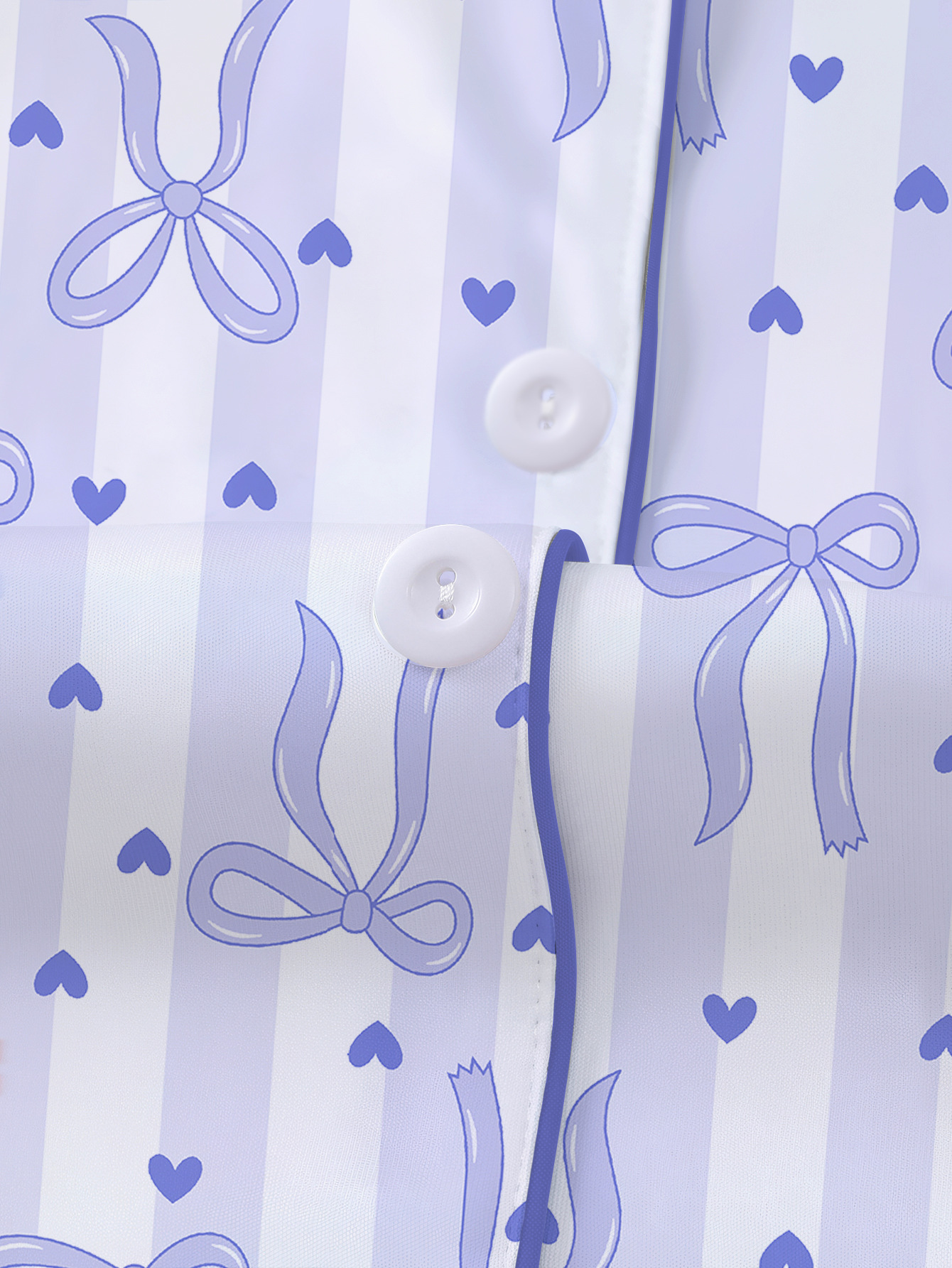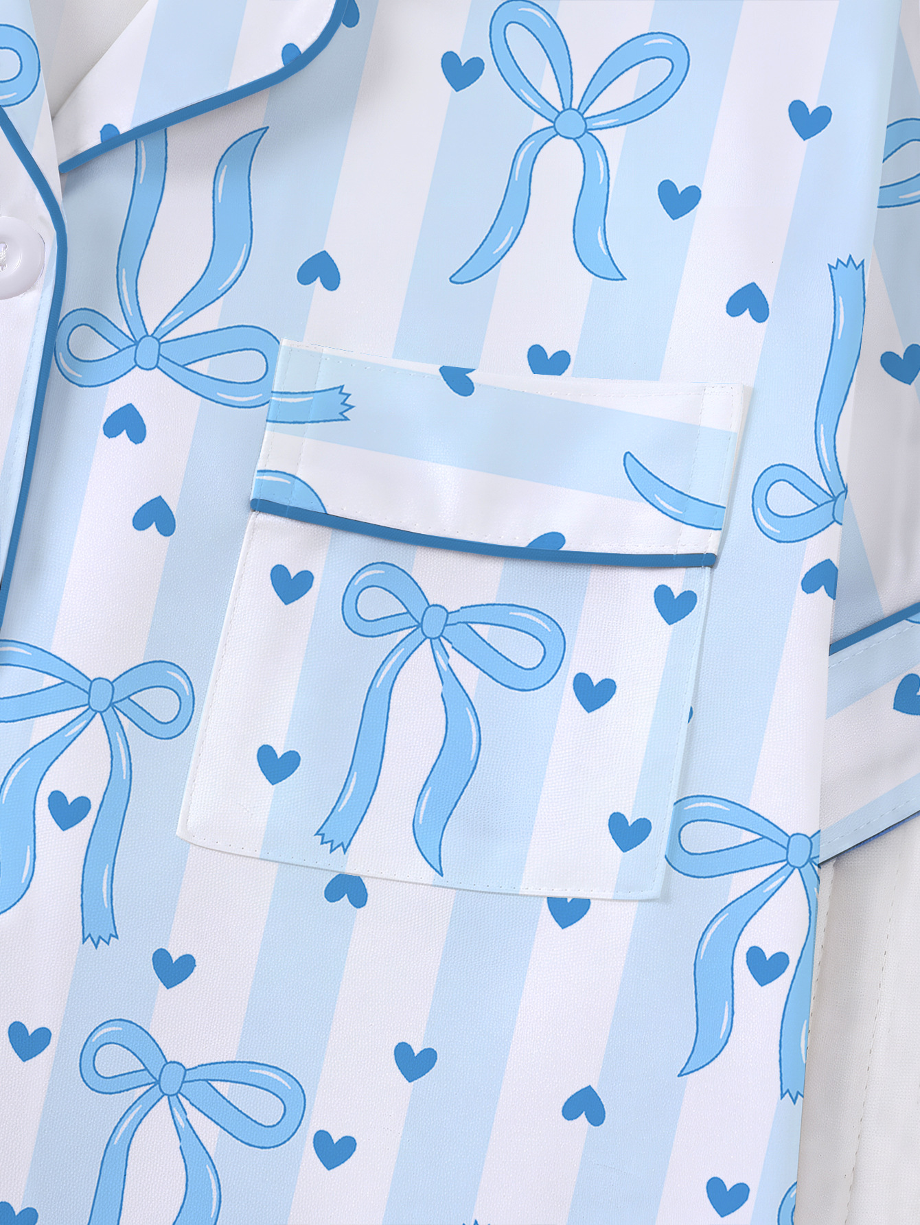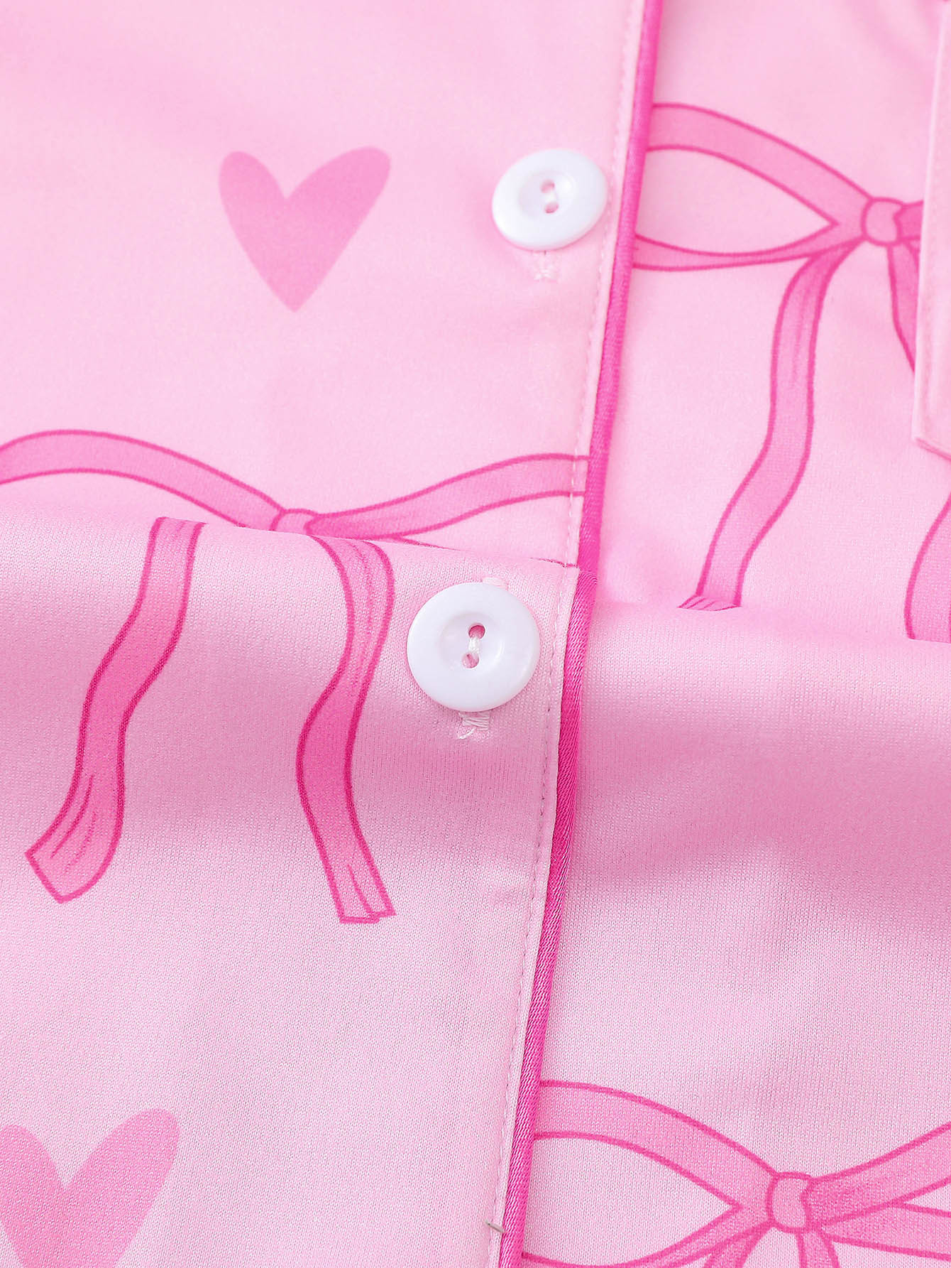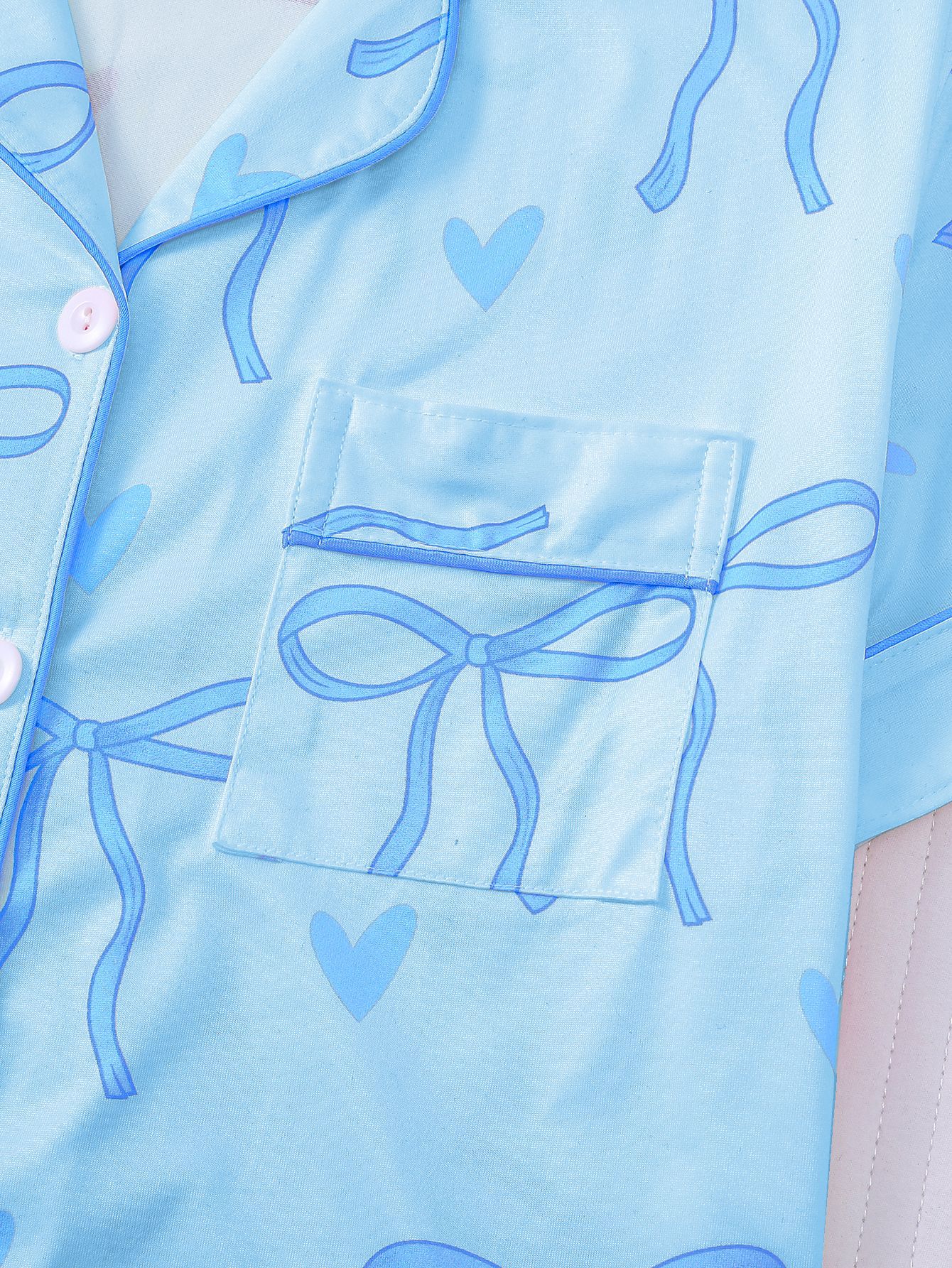 국경 간 대외 무역 새로운 스타일의 잠옷 사계절 활 프린트 라펠 느슨한 반팔 반바지 여성 홈웨어 세트