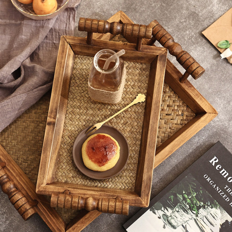 나무 접시 중간 고대 트레이 태국 스타일 솔리드 우드 뷰티 살롱 차 트레이 빈티지 중국 스타일 가정용 티 컵 티 트레이스토어 가기