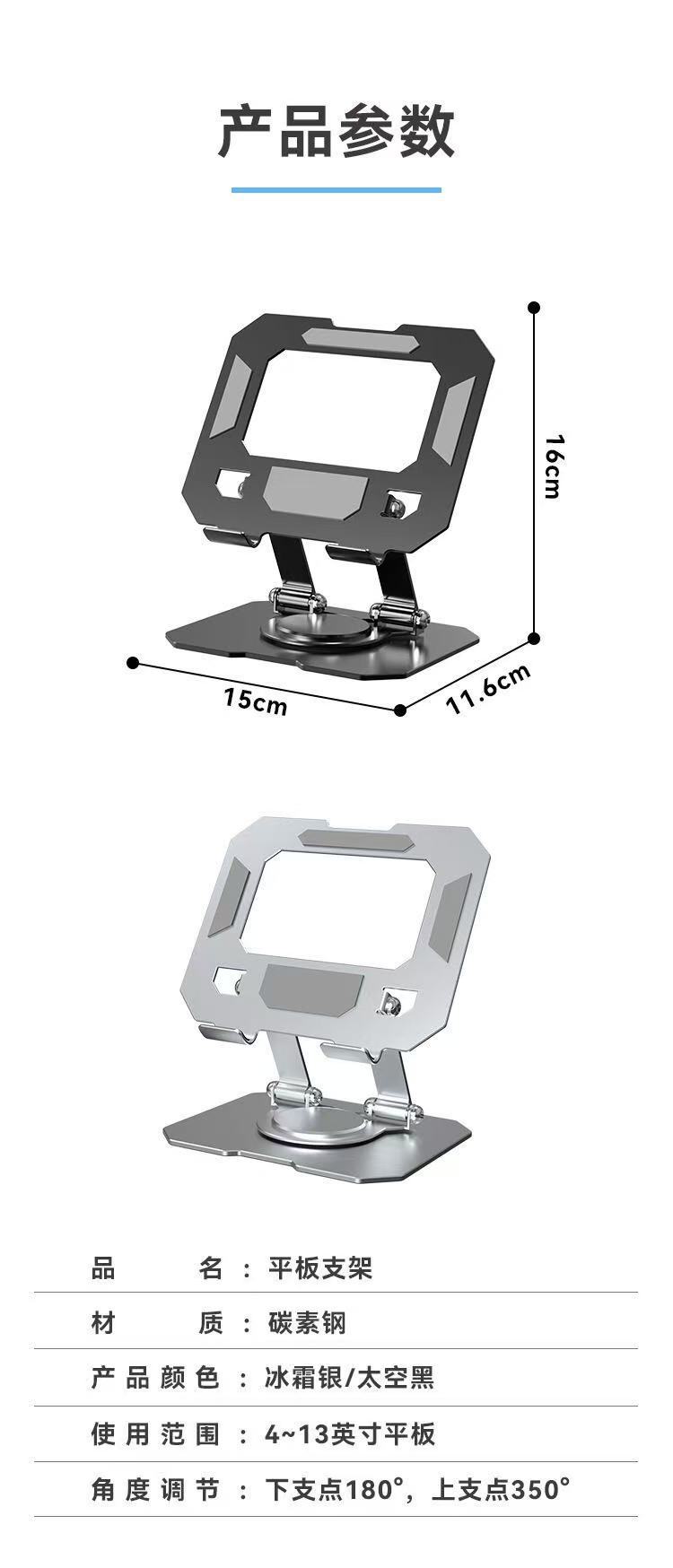 탄소강 360 ° 데스크탑 컴퓨터 태블릿 스탠드 풀 메탈 회전 접이식 사무실 냉각 베이스 노트북스토어 가기