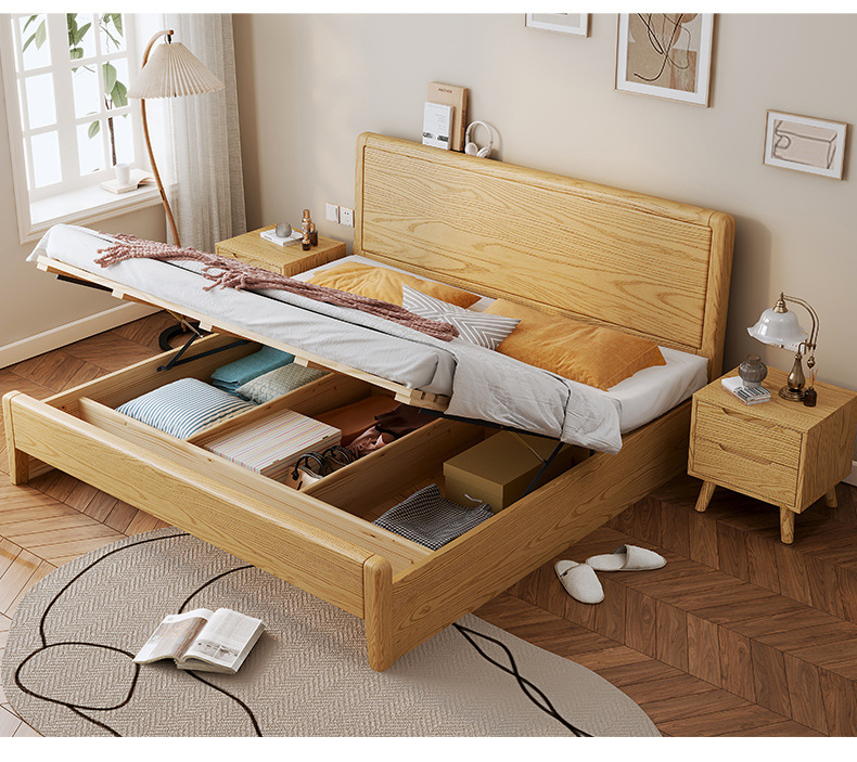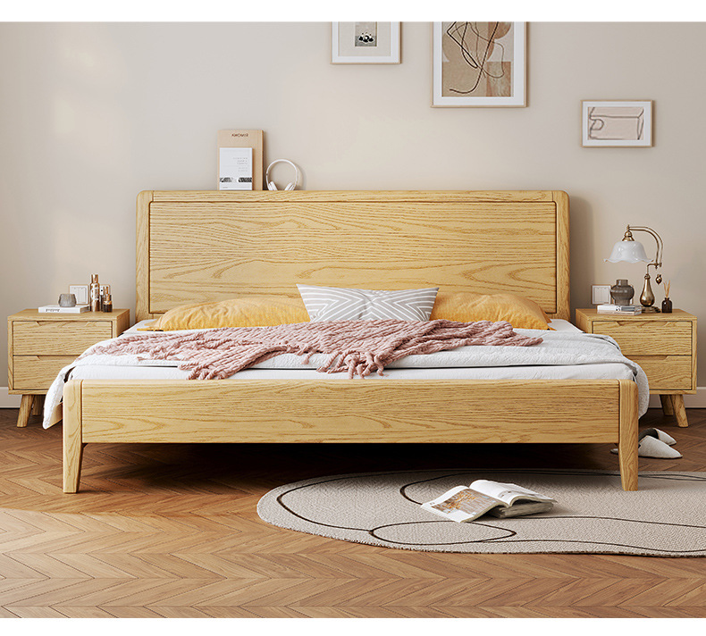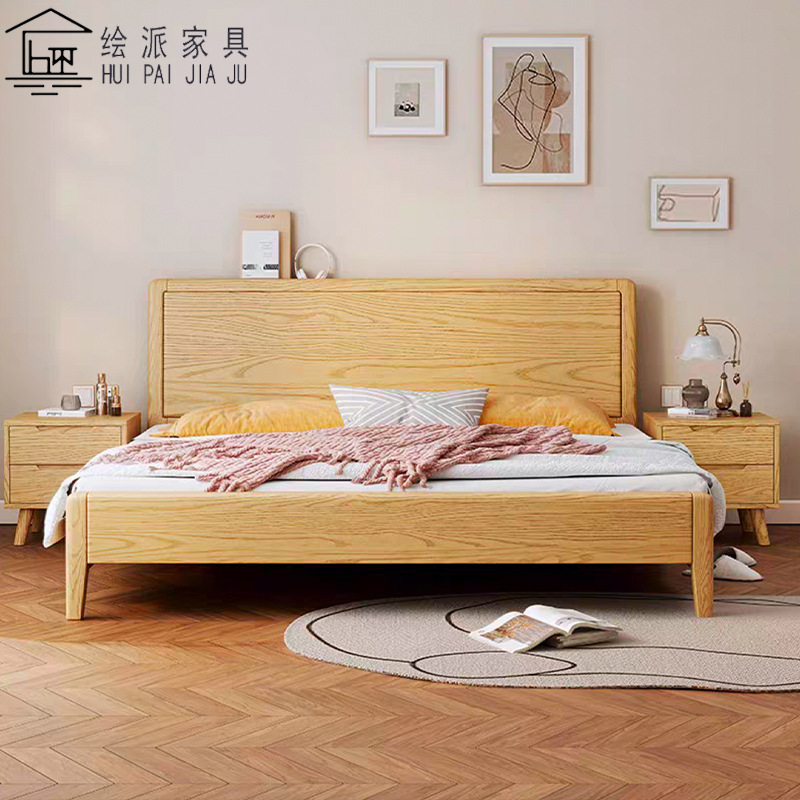 북유럽 단단한 나무 더블 침대 1.8m 현대 간단한 1.5m 가정용 작은 아파트 마스터 침실 웨딩 침대 대형 침대 공장스토어 가기