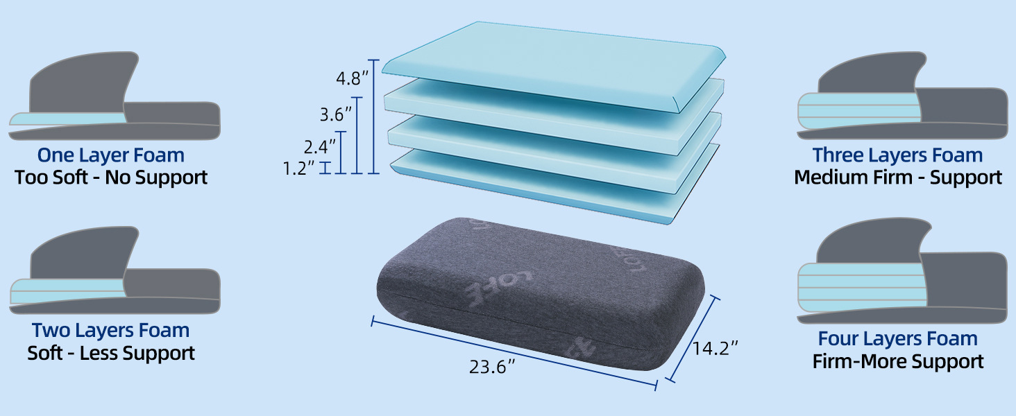 딥슬립 메모리베개, 목보호대, 3중 메모리폼베개, 높이조절이 가능한 분리형 중간층 메모리폼베개스토어 가기