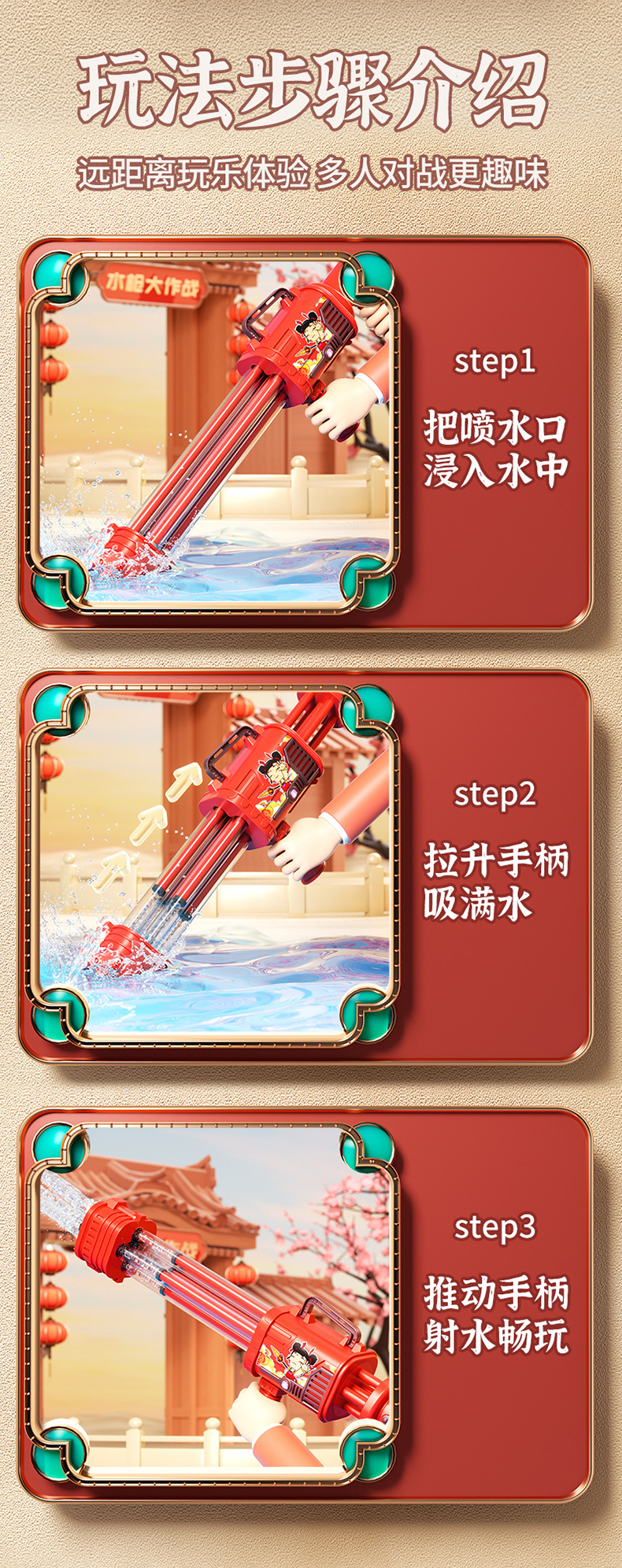 진짜 물총 어린이 장난감이 대형 개틀링 물대포를 끄는 폭발 물 싸움 도매 제조 업체스토어 가기