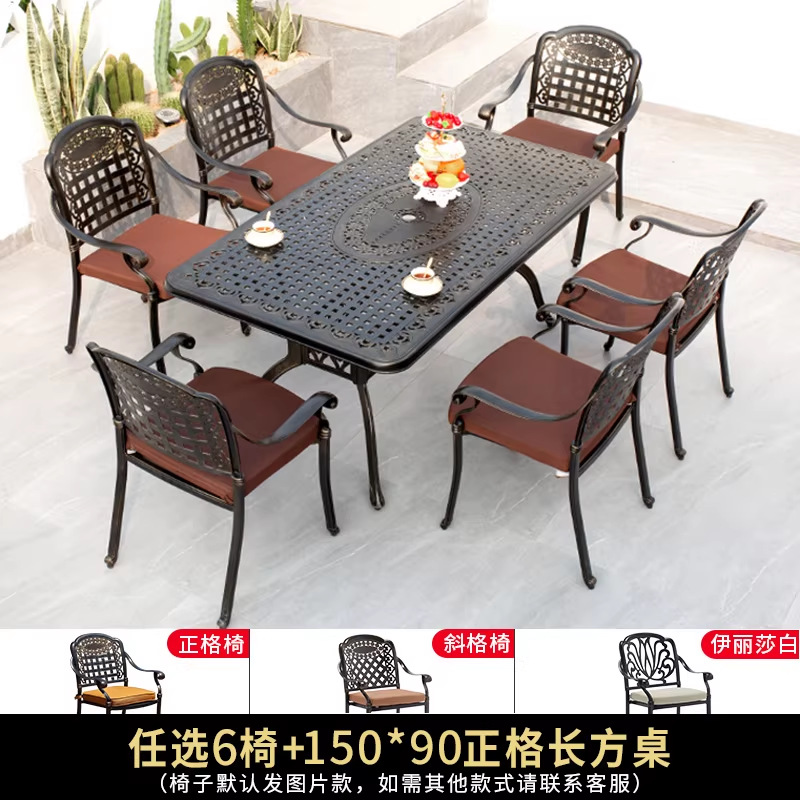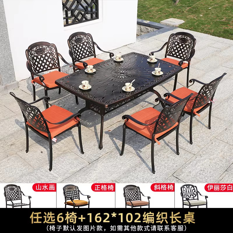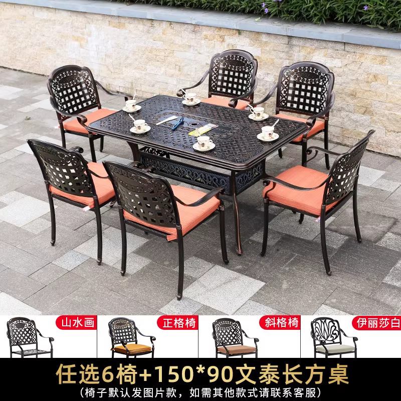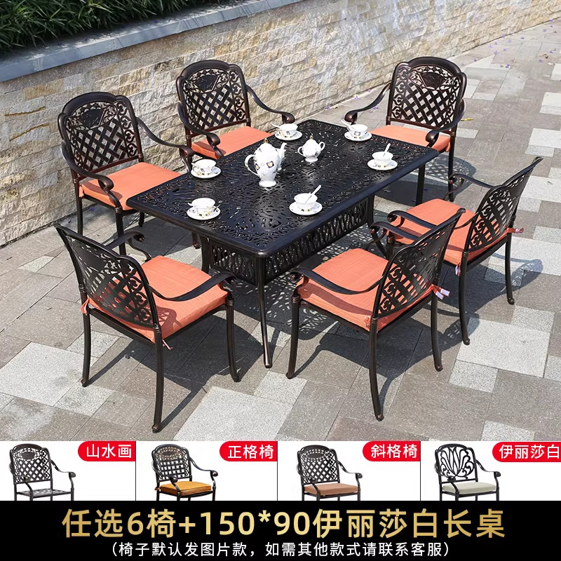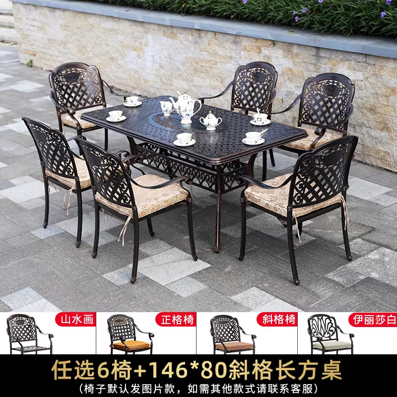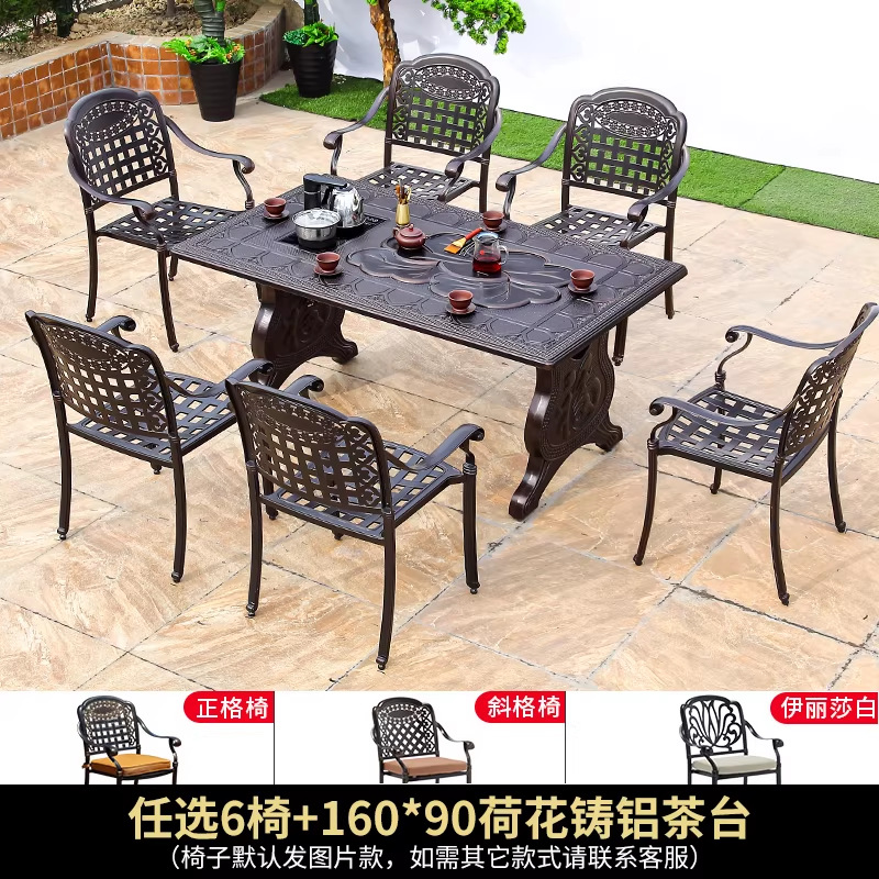 • 의자 6개 + 160*90 연꽃 주조 알루미늄 티 테이블