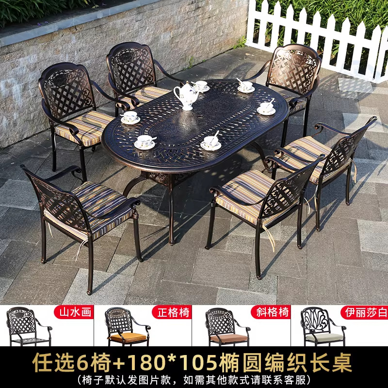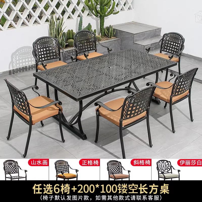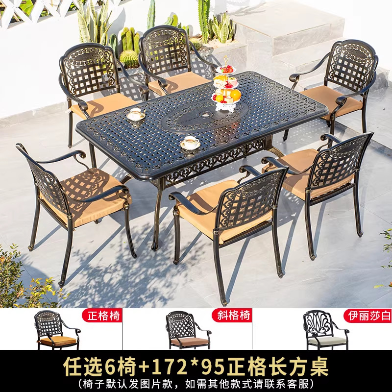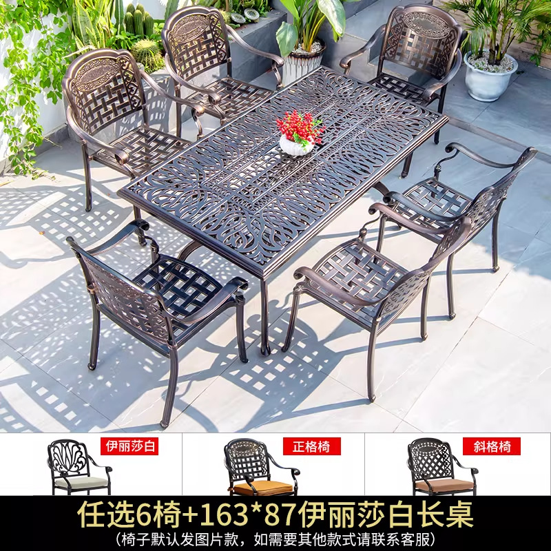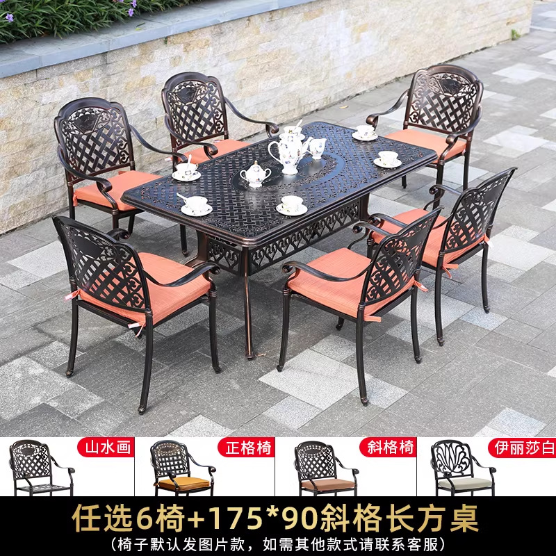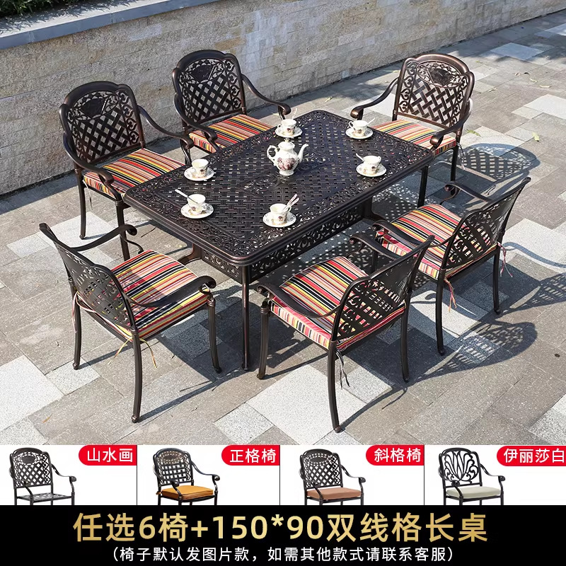 • 의자 6개 + 160*90 연꽃 주조 알루미늄 티 테이블