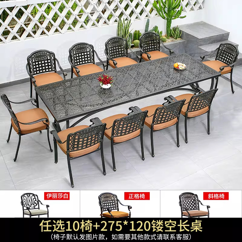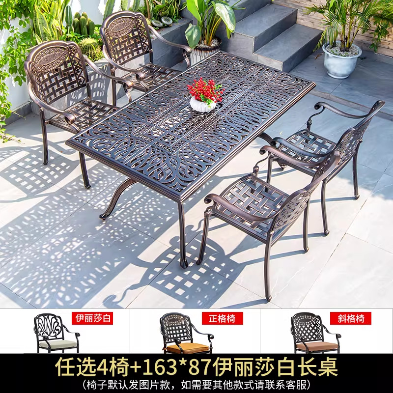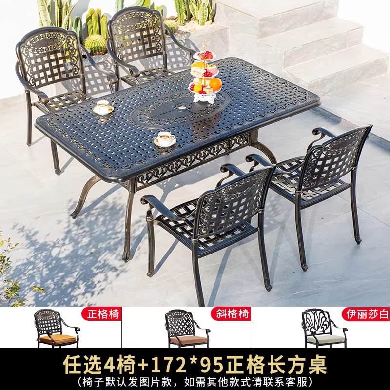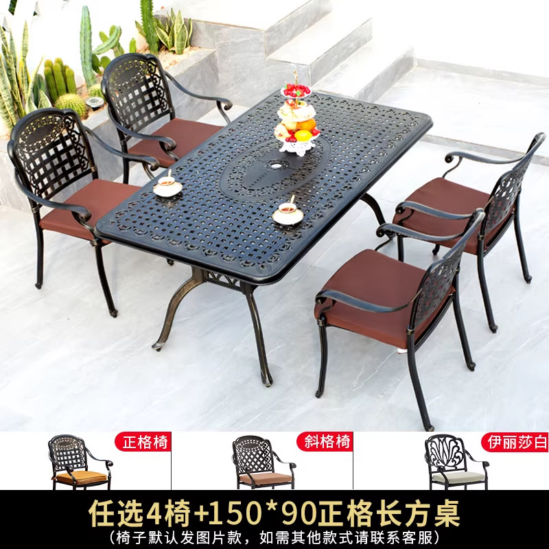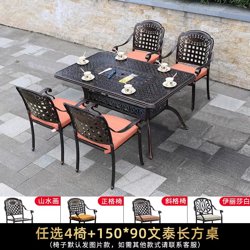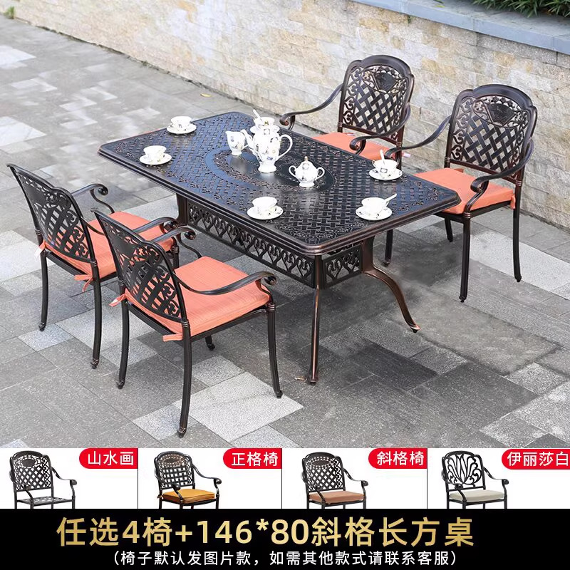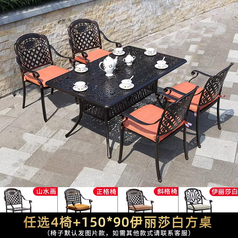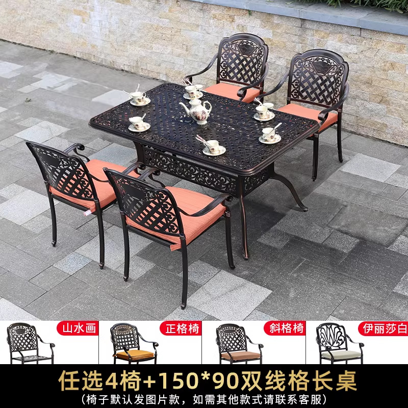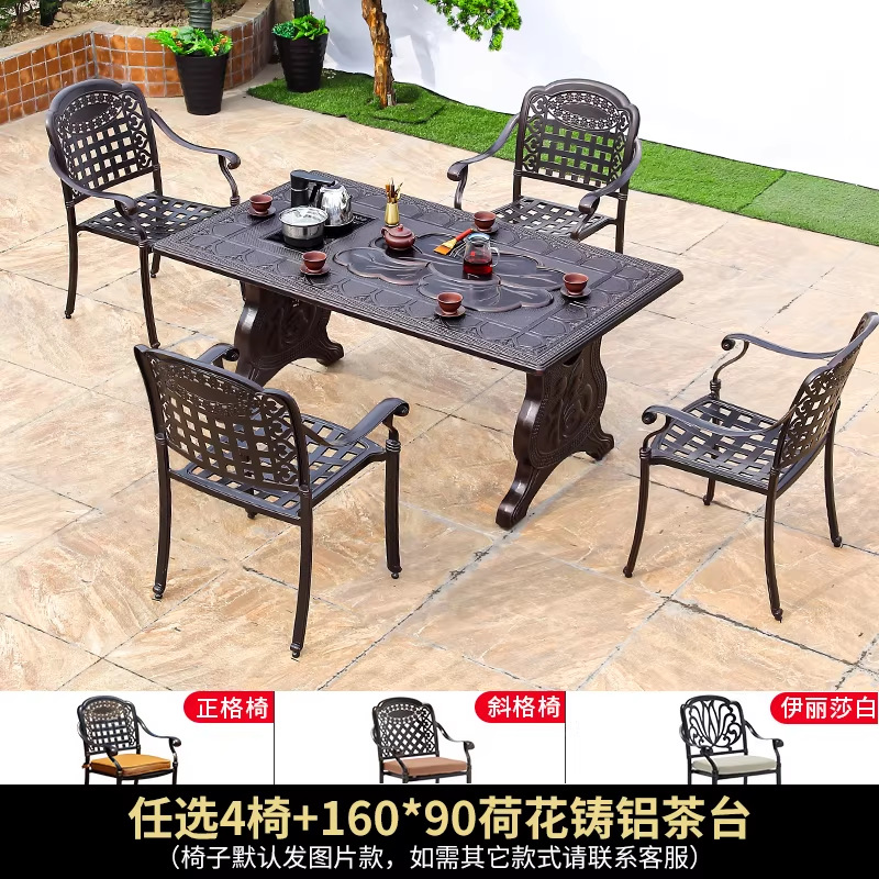 • 4인용 의자 + 160*90 연꽃 무늬 주조 알루미늄 티 테이블