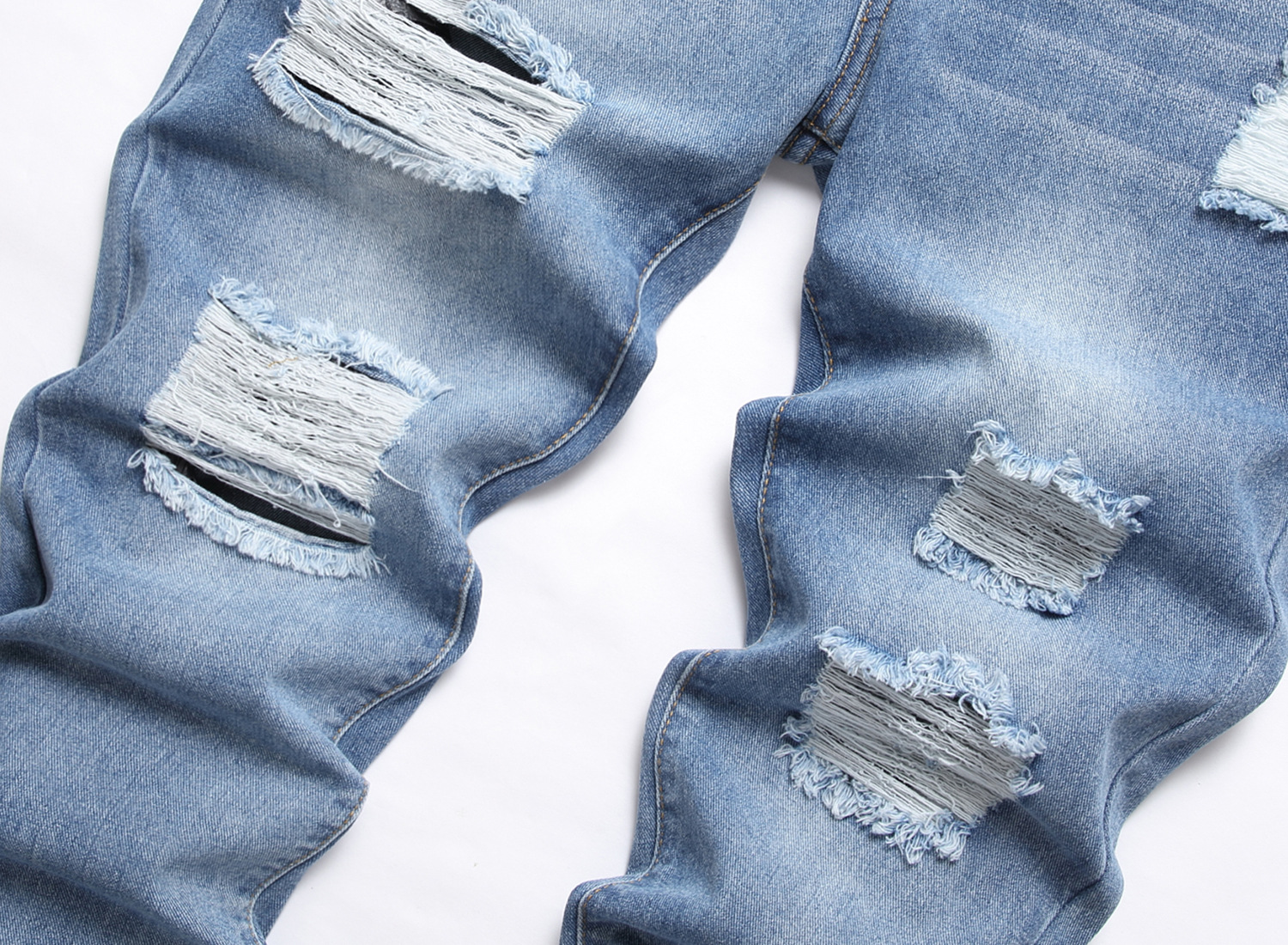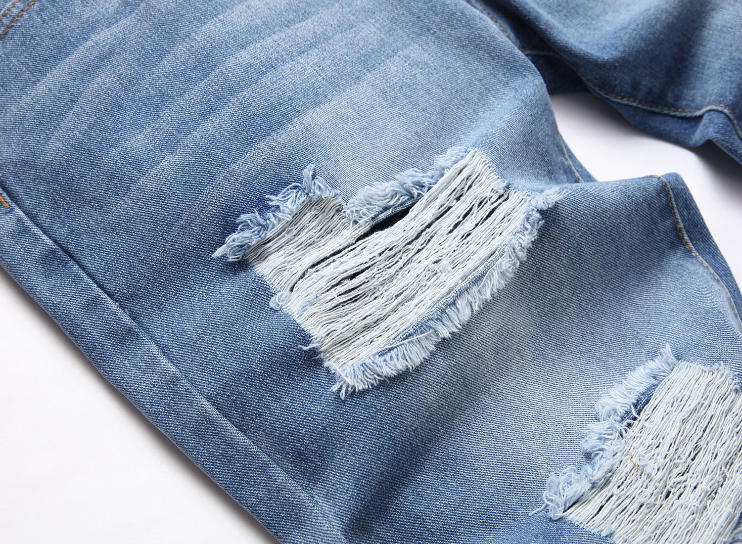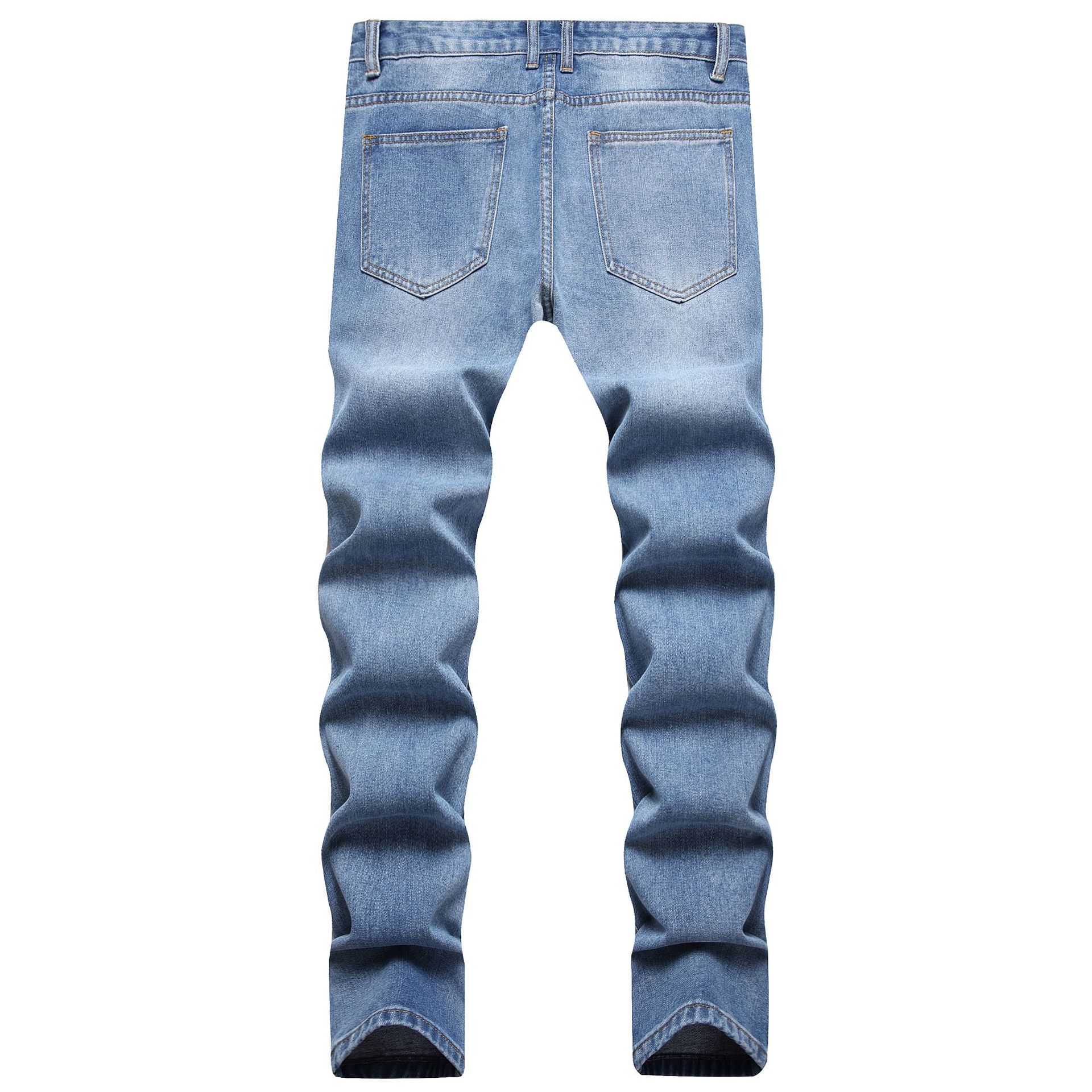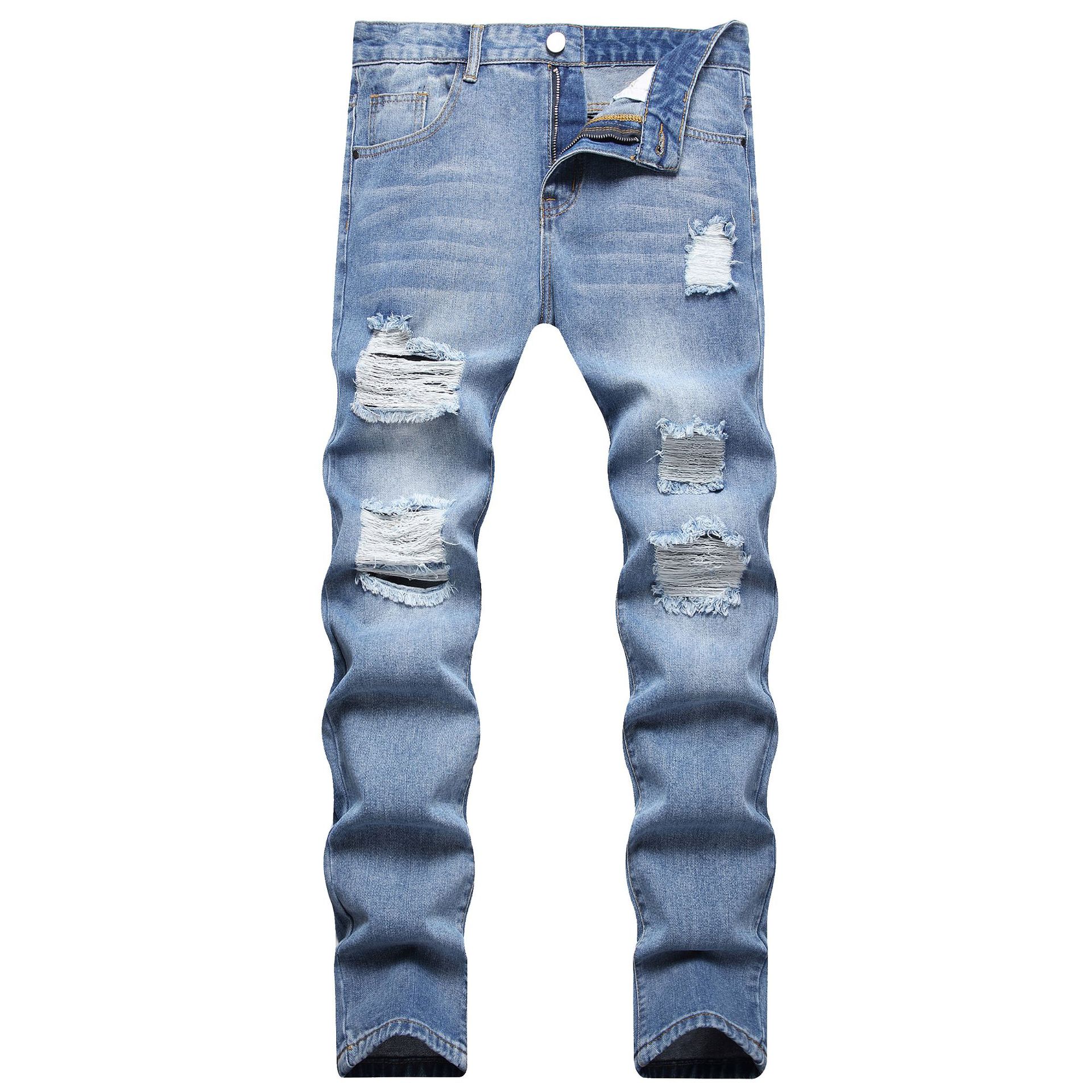 국경 간 유럽과 미국의 새로운 스타일 비탄성 스트레이트 레그 찢어진 청바지 패션 남성 슬림핏 아마존 대외 무역 데님 바지