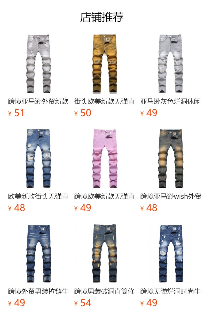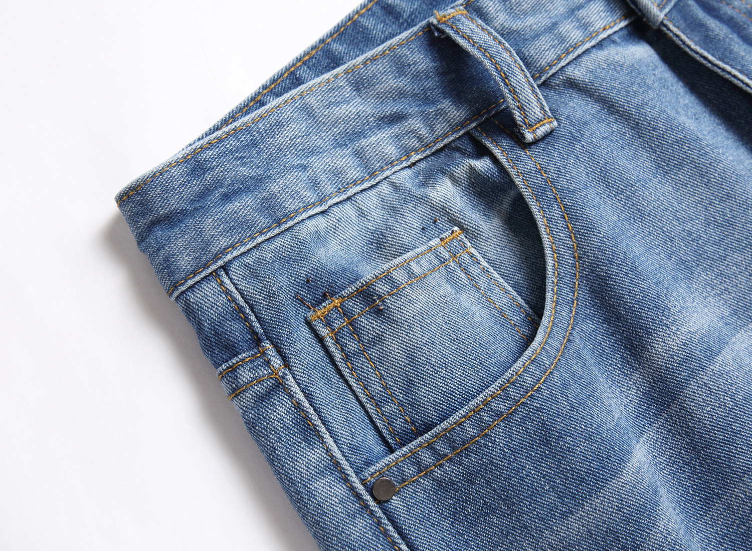 국경 간 유럽과 미국의 새로운 스타일 비탄성 스트레이트 레그 찢어진 청바지 패션 남성 슬림핏 아마존 대외 무역 데님 바지스토어 가기