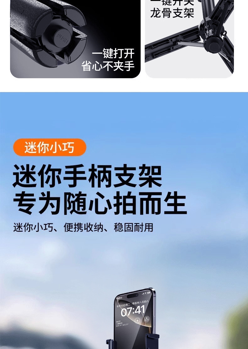 2025 새로운 셀카 스틱 휴대 전화 사진 아티팩트 여행 휴대용 유니버설 플로어 4 중 슈퍼 미니 셀카 스틱스토어 가기