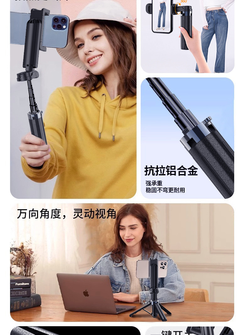 2025 새로운 셀카 스틱 휴대 전화 사진 아티팩트 여행 휴대용 유니버설 플로어 4 중 슈퍼 미니 셀카 스틱