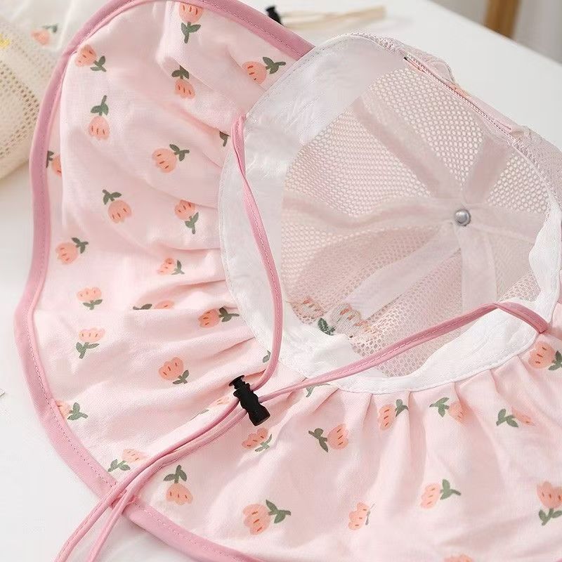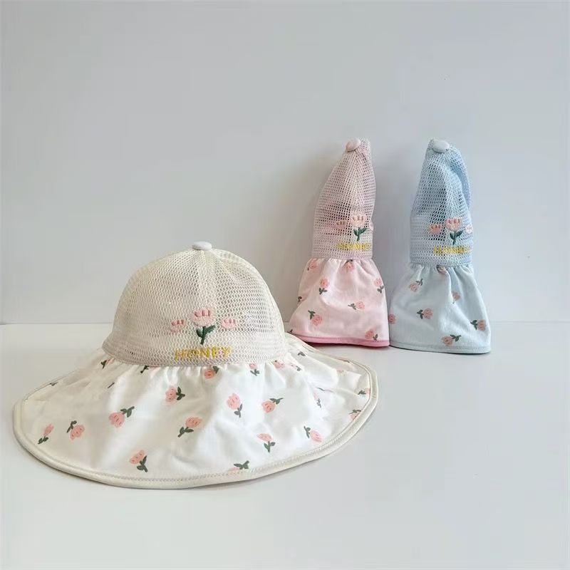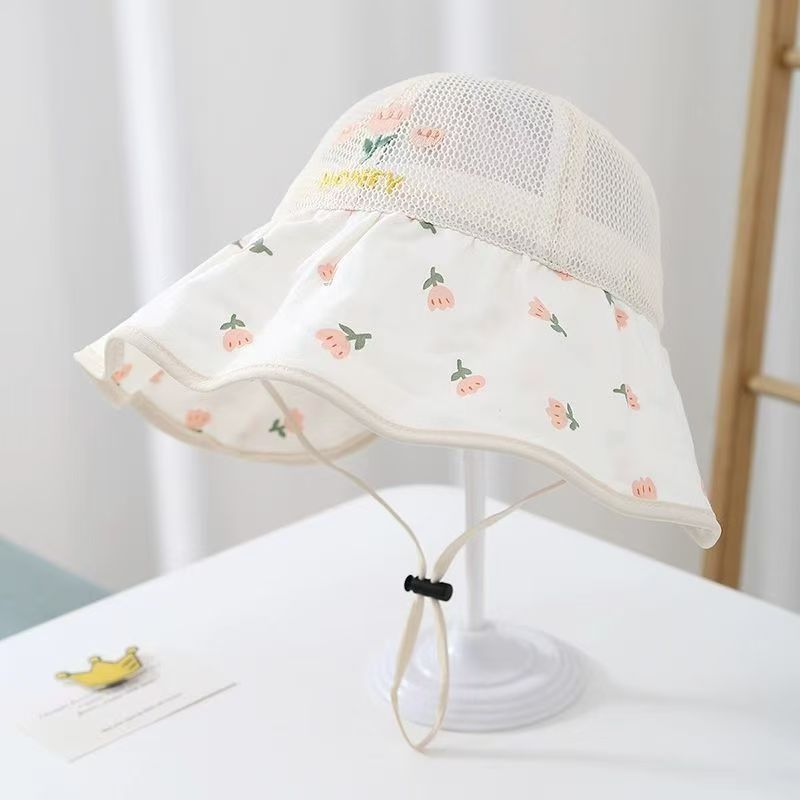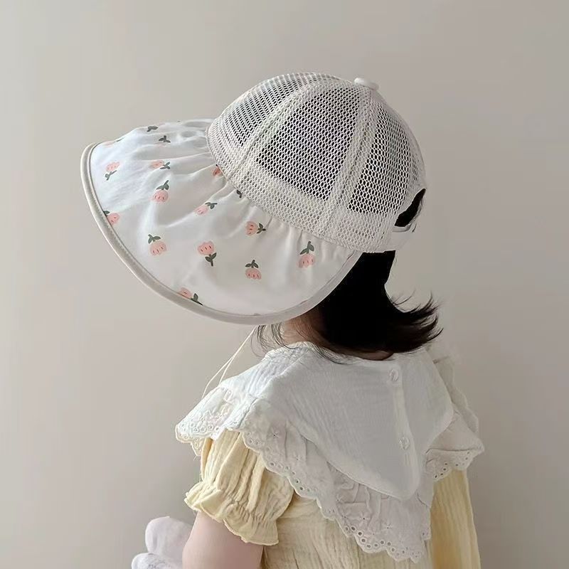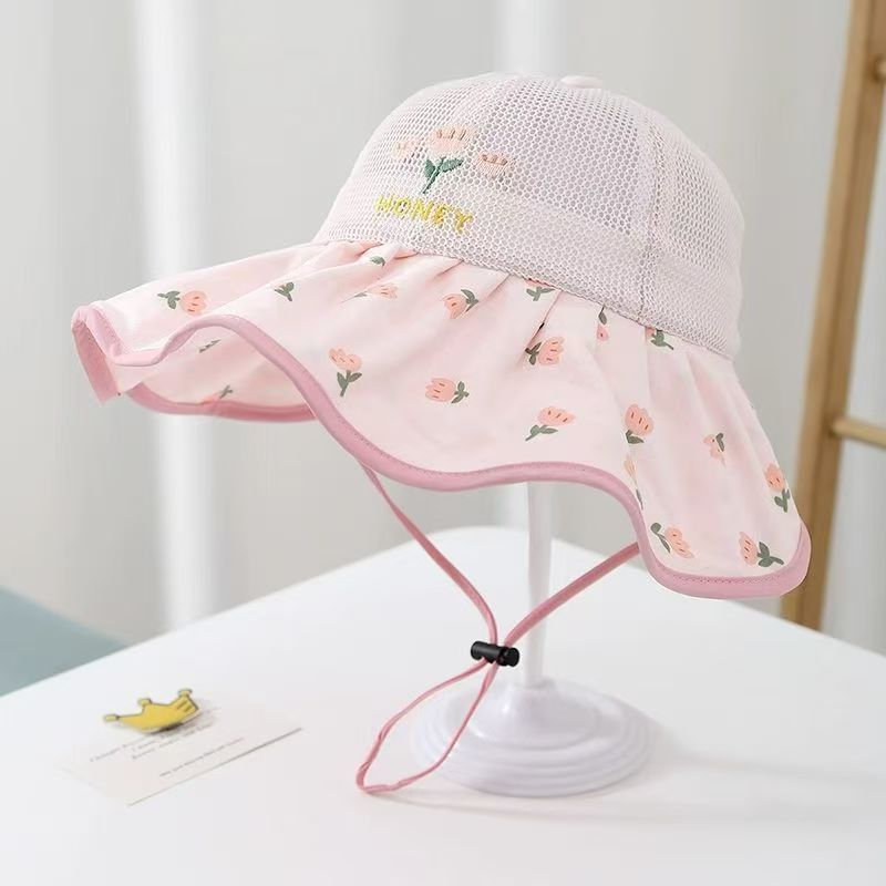 어린이 모자 여름 얇은 통기성 메쉬 큰 챙 태양 보호 모자 아기 소녀 달콤한 꽃 어부 모자