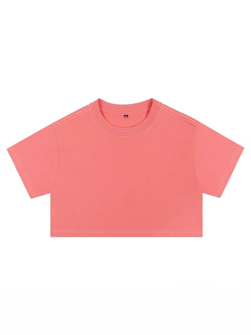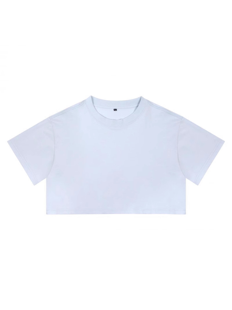 순수 코튼 210g 여성용 하이 웨이스트 배꼽 노출 티셔츠, 루즈한 요가 피트니스 반팔 스포츠 탑, 핫걸 의상, 다용도스토어 가기