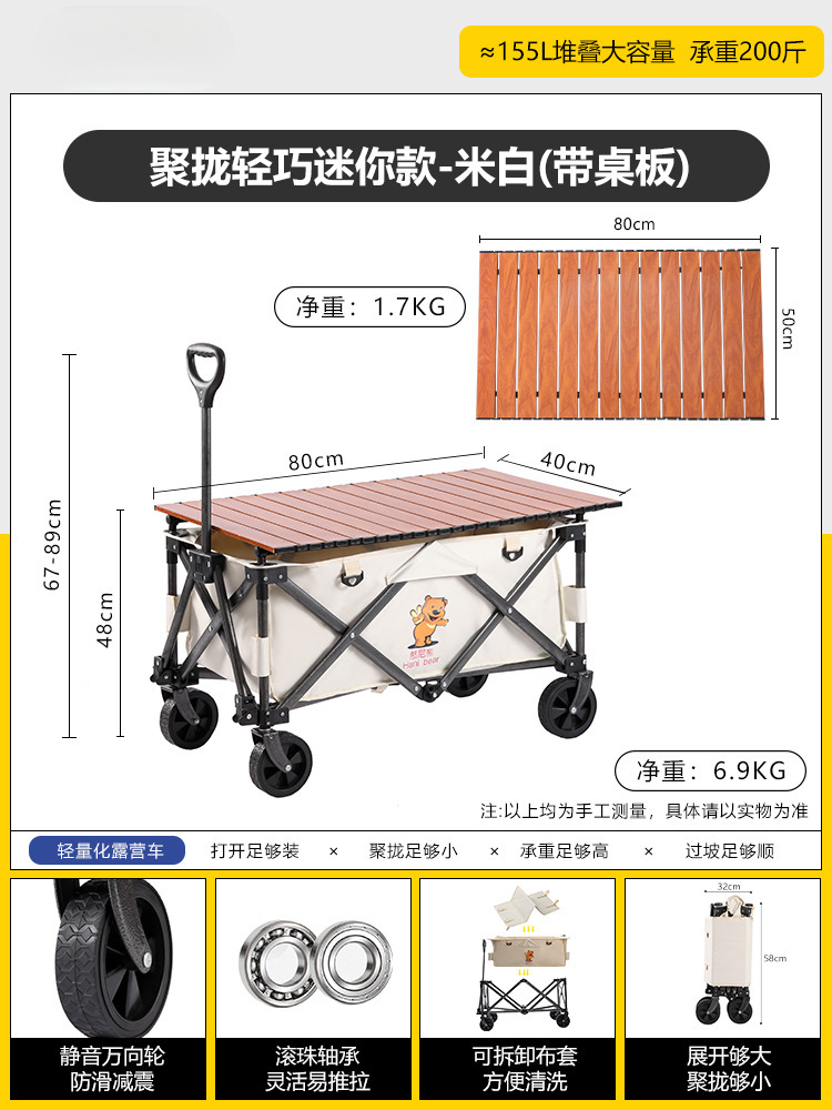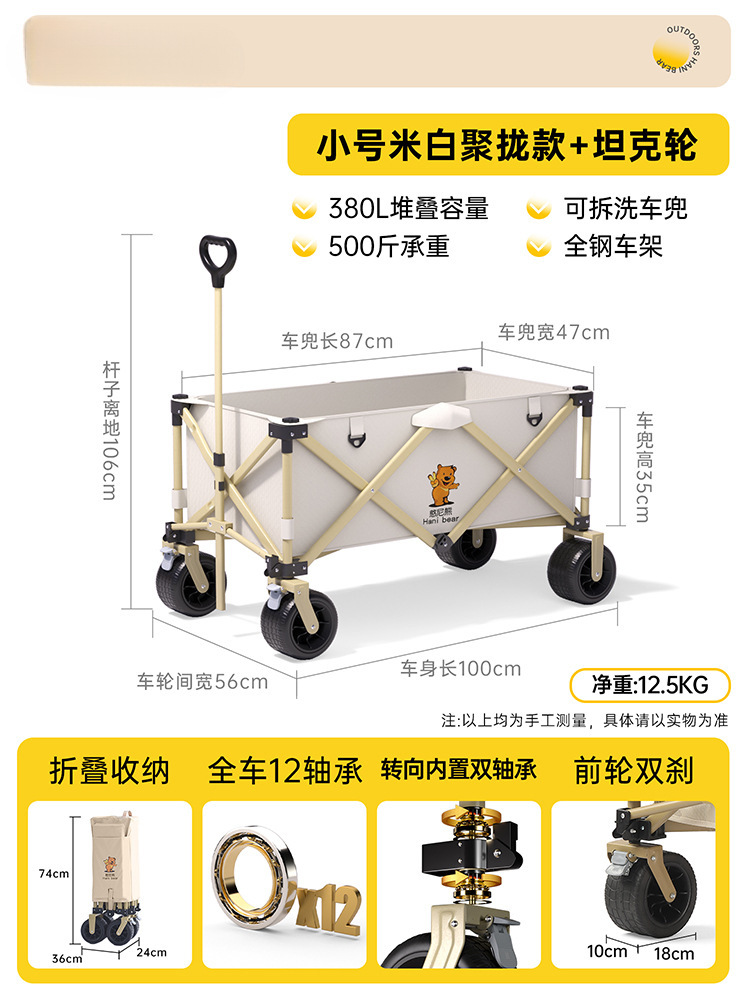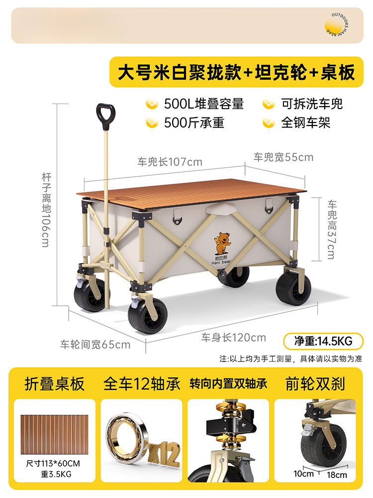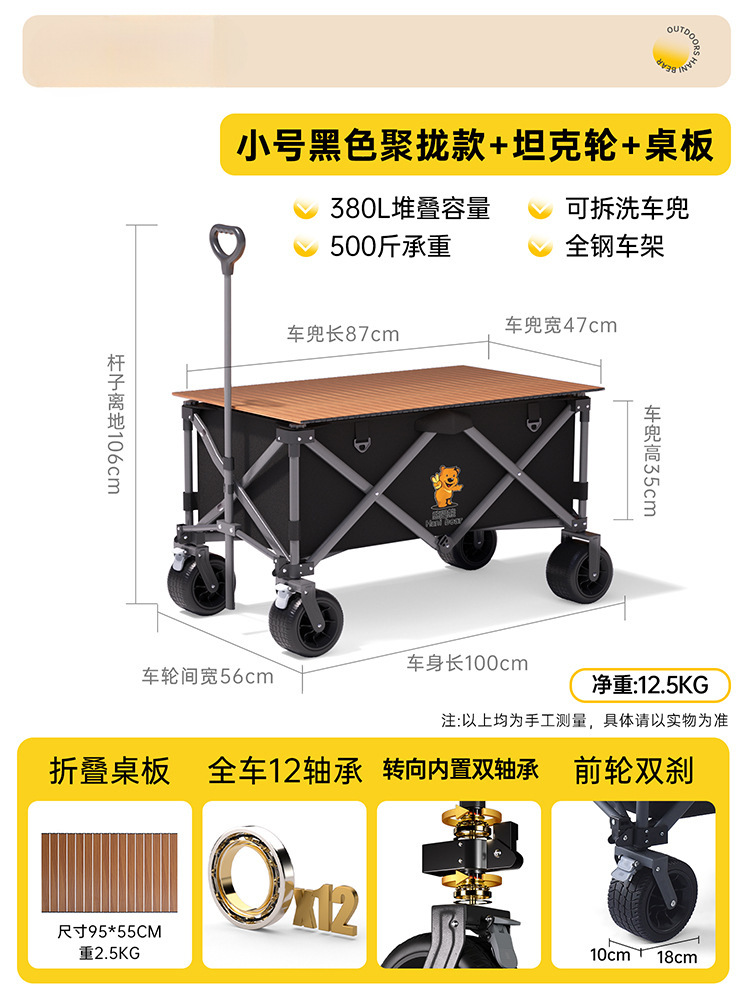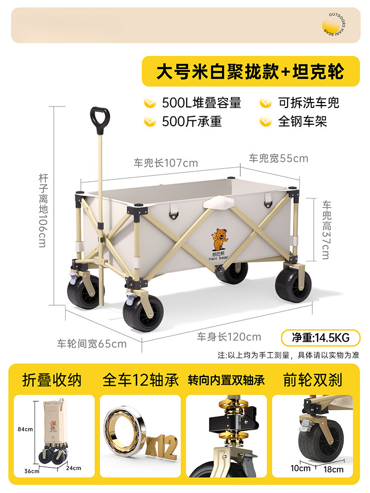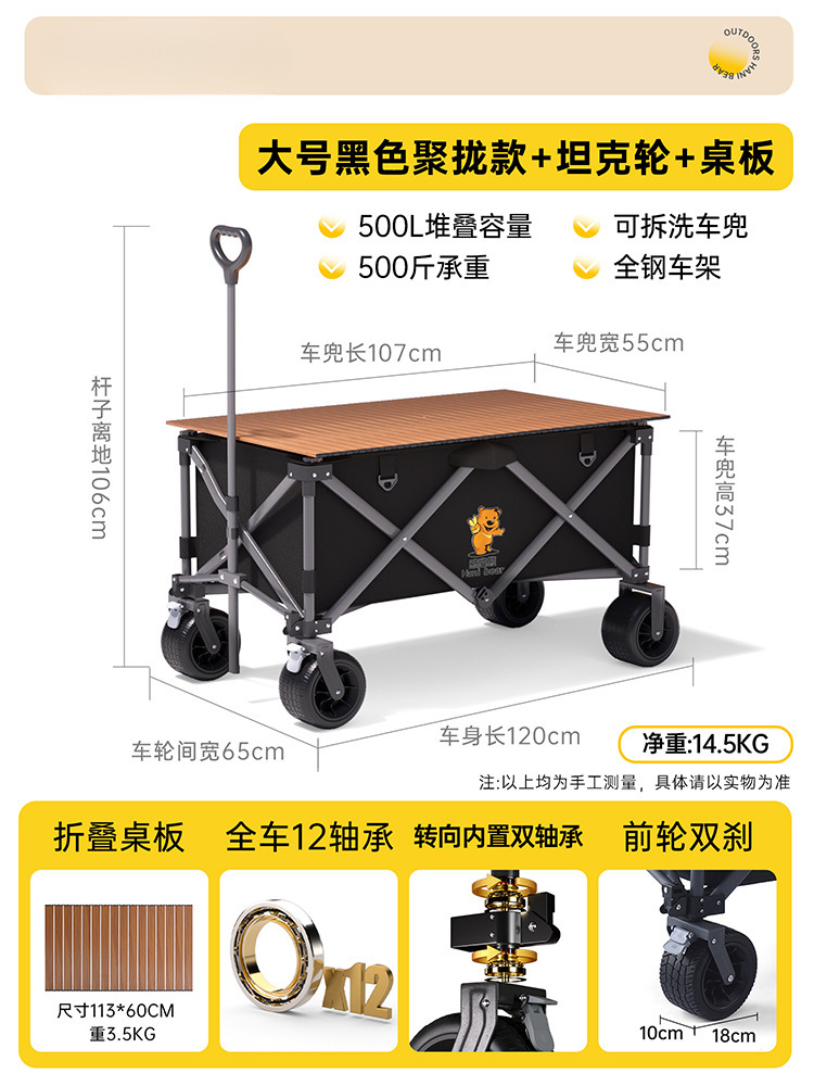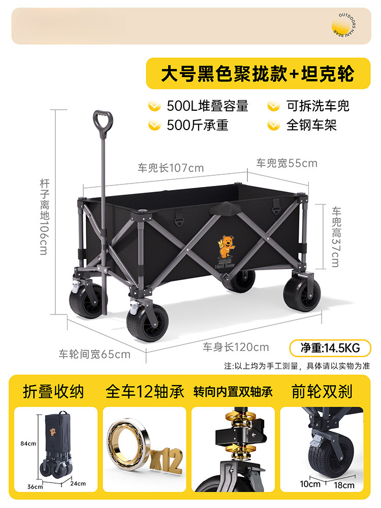 캠핑카 야외 초대형 캠핑카 접이식 캠핑 트레일러 휴대용 푸시 카트 피크닉 낚시 트레일러