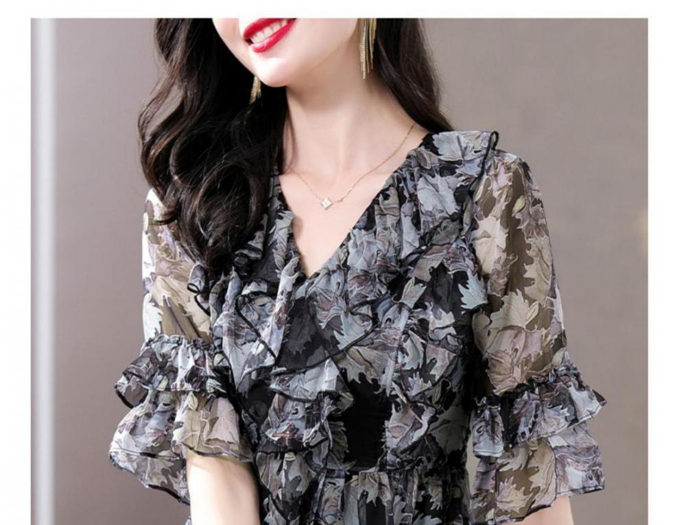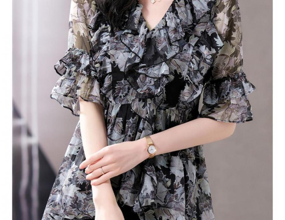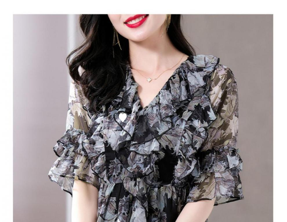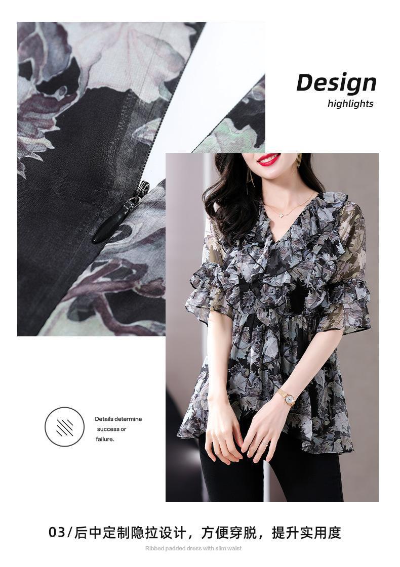 Q7N [스토어 핫셀링] 2025 여름 신작 엄마 반팔 셔츠 루즈한 배 커버 패셔너블 쉬폰 셔츠
