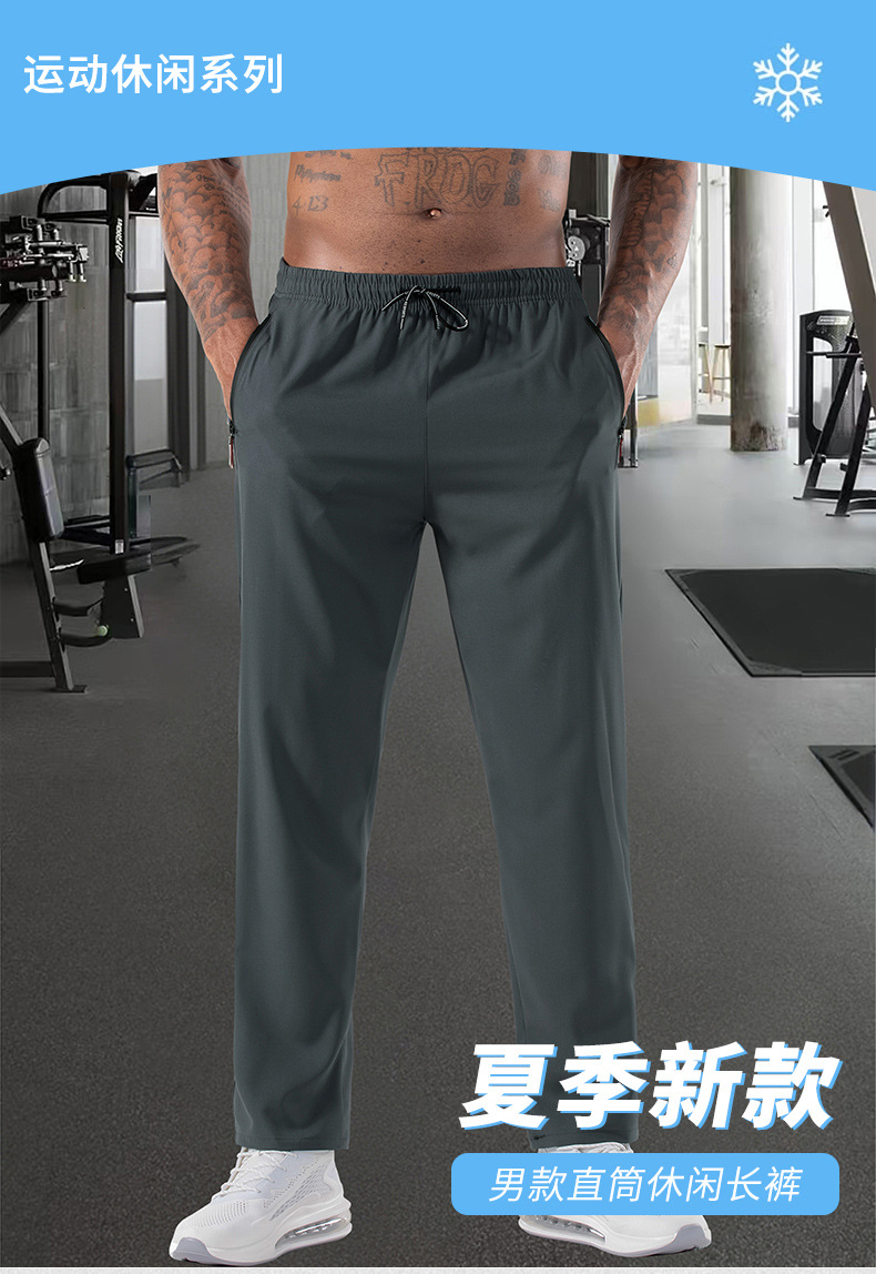 국경 간 유럽 코드 여름 얼음 실크 바지 남성용 얇은 통기성 대형 캐주얼 스트레치 바지 플랫 발 속건 바지스토어 가기