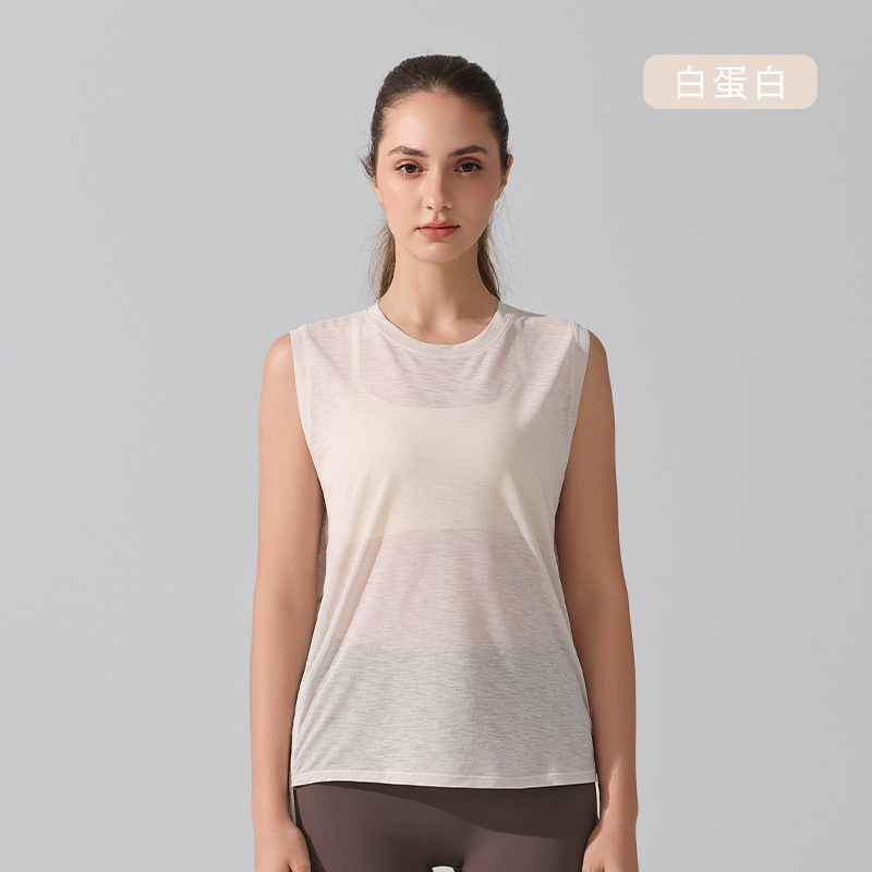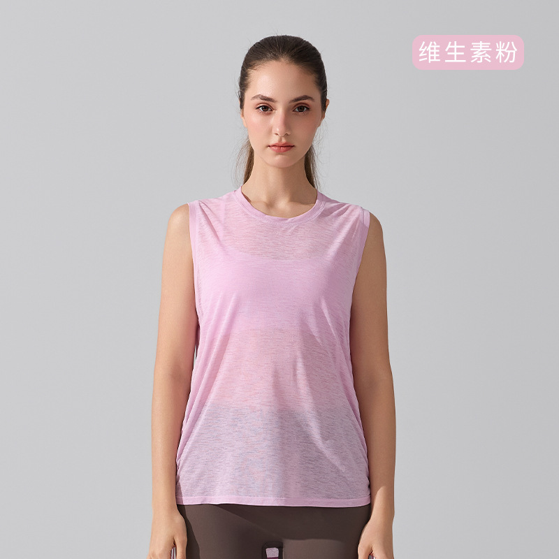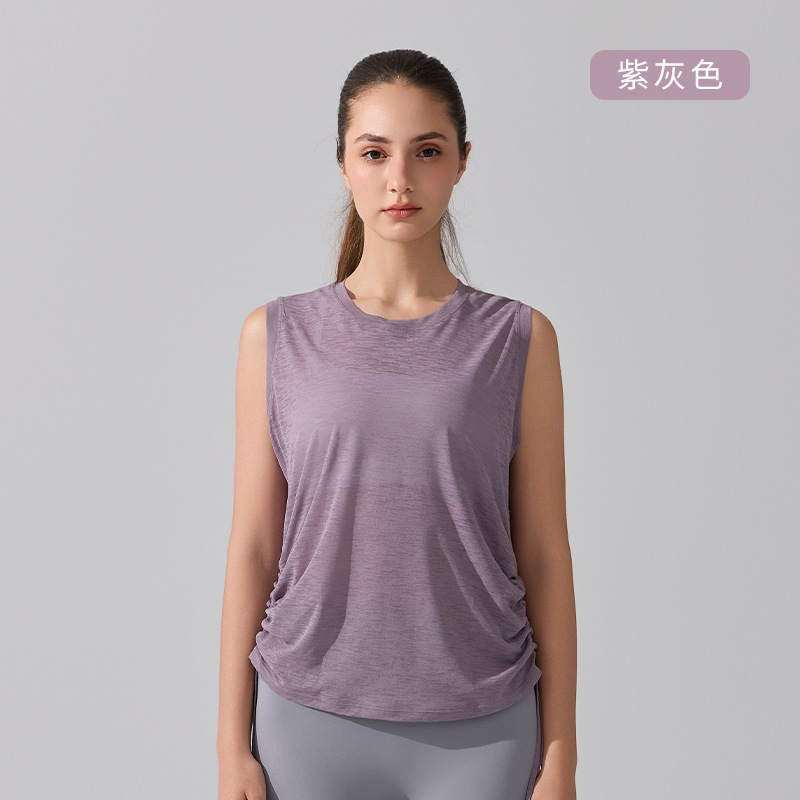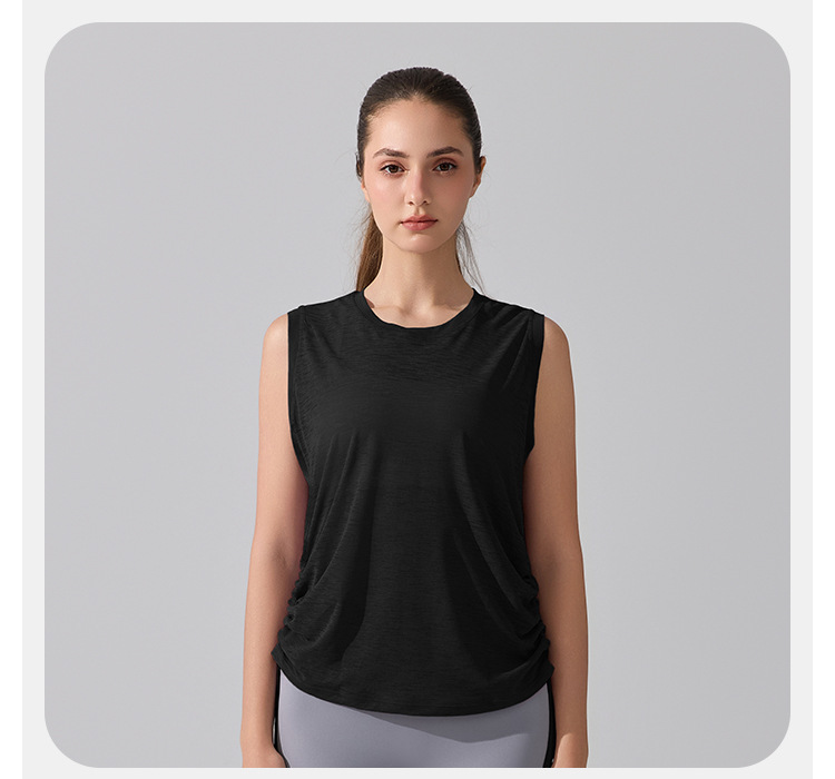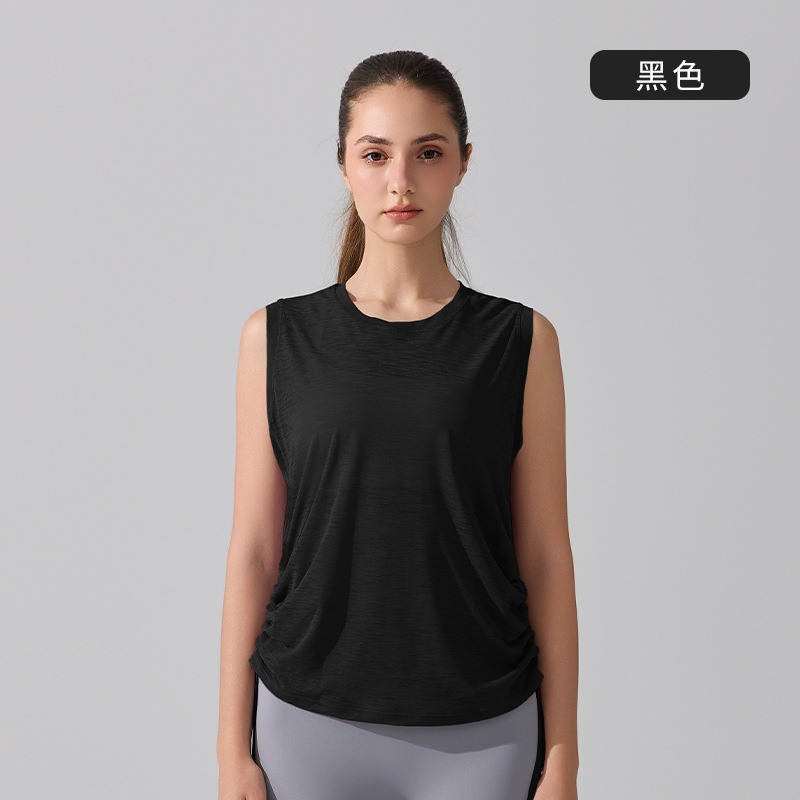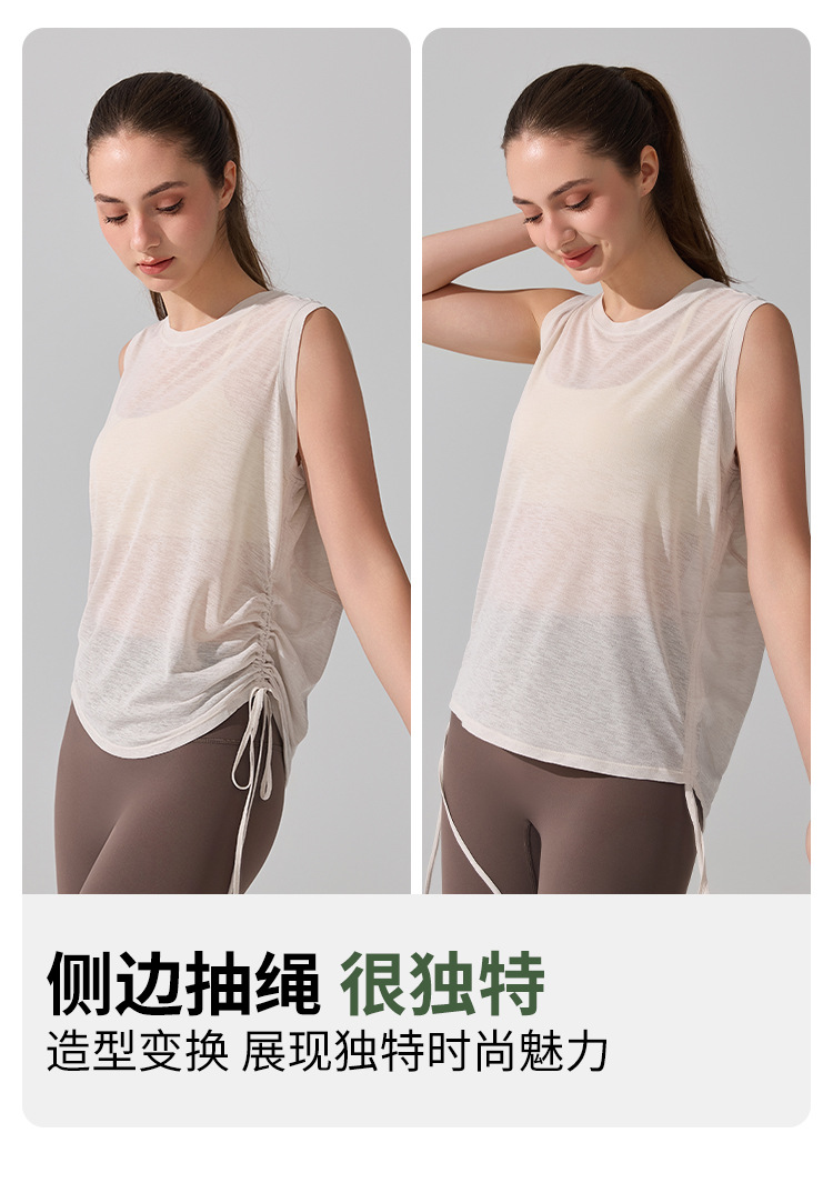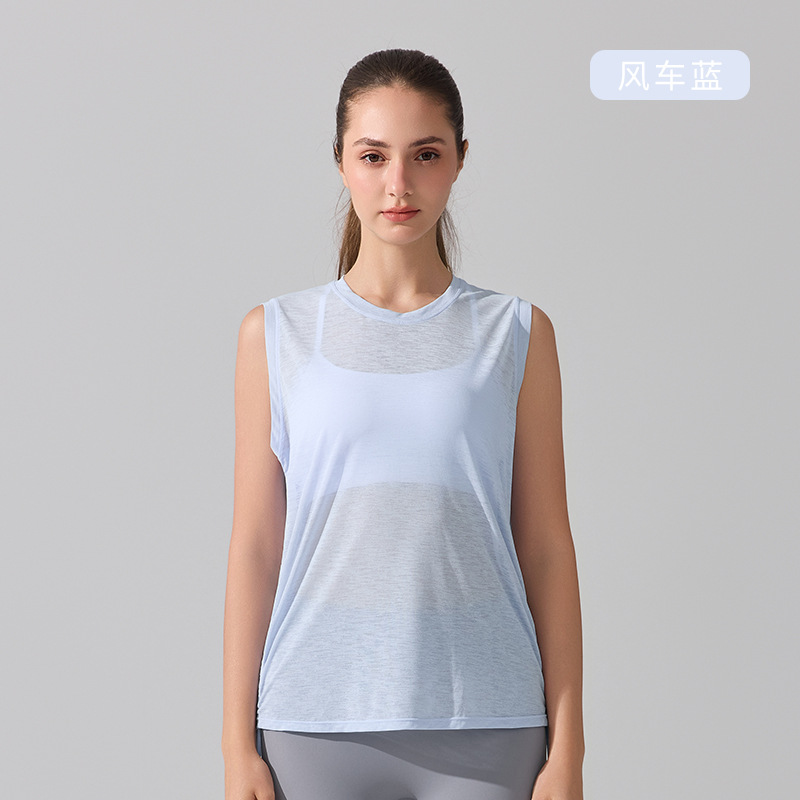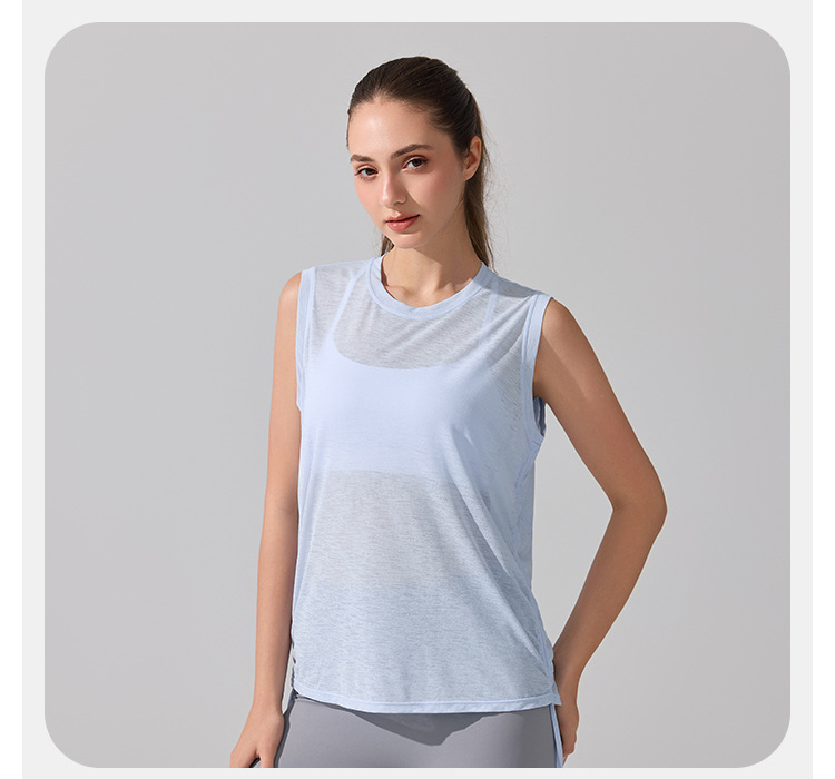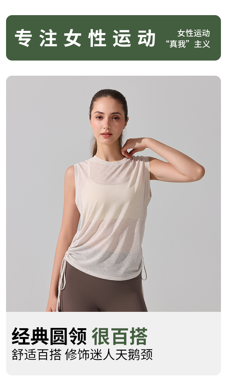 국경 간 느슨한 요가 원피스 블라우스 헴 그린 민소매 탑 달리기 훈련 외부 착용 가벼운 여름 피트니스 옷