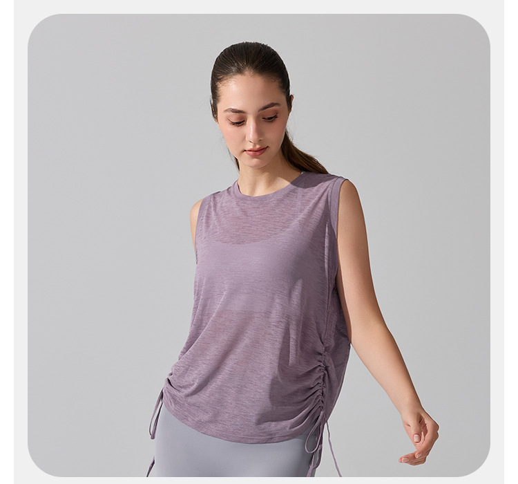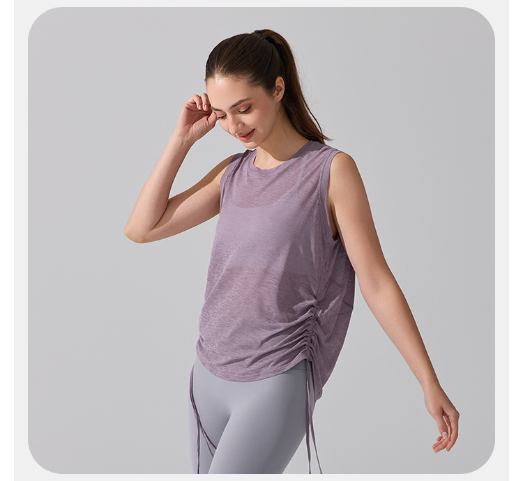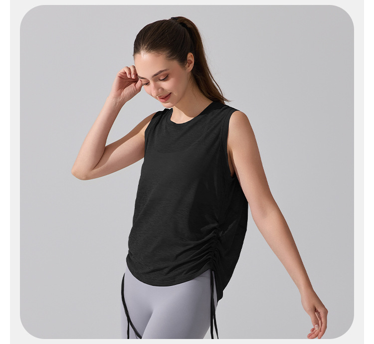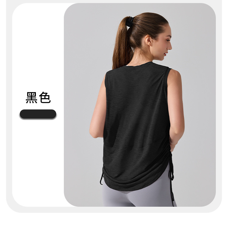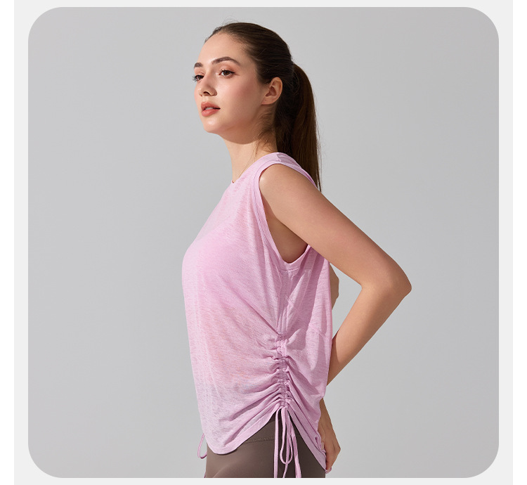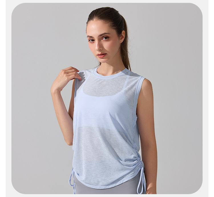 국경 간 느슨한 요가 원피스 블라우스 헴 그린 민소매 탑 달리기 훈련 외부 착용 가벼운 여름 피트니스 옷스토어 가기