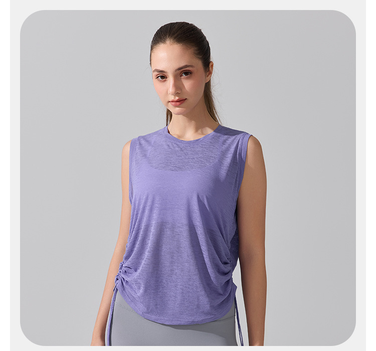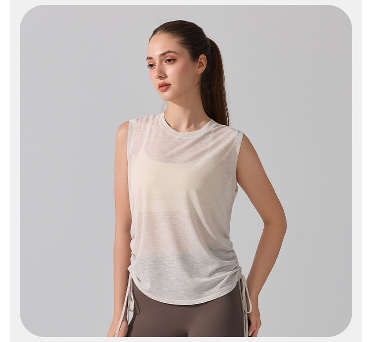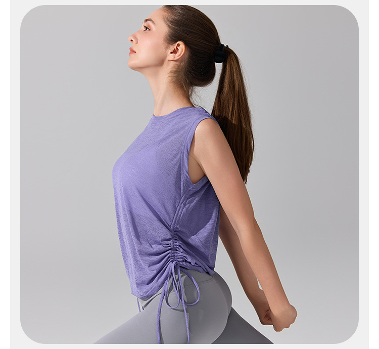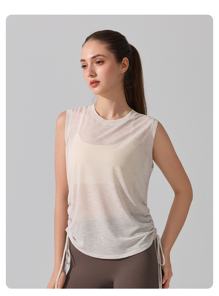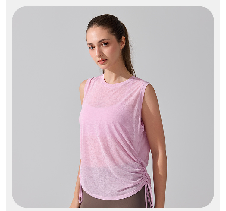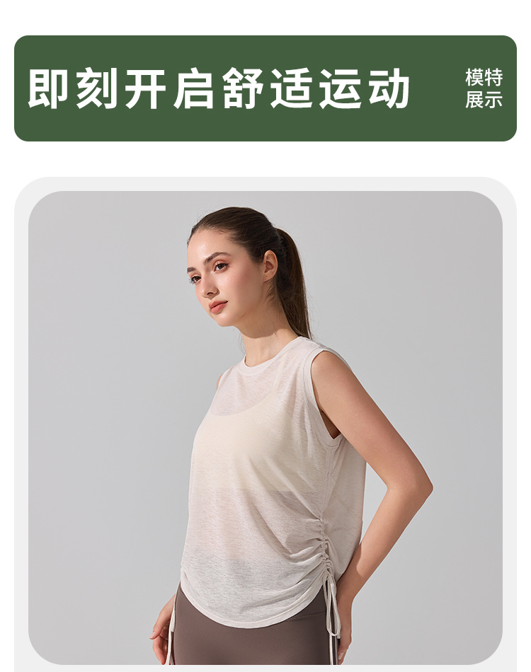 국경 간 느슨한 요가 원피스 블라우스 헴 그린 민소매 탑 달리기 훈련 외부 착용 가벼운 여름 피트니스 옷스토어 가기
