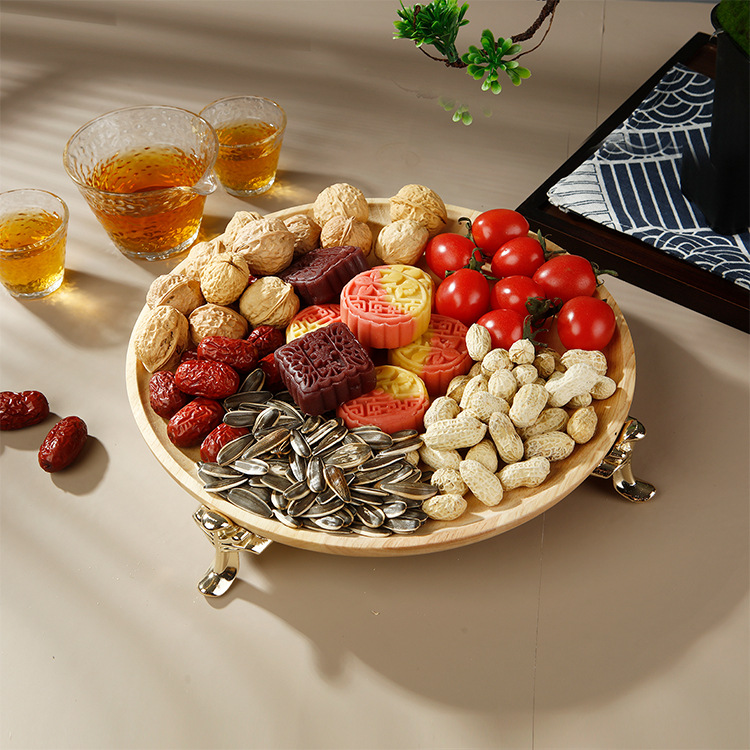단단한 나무 상쾌한 접시 너도밤 나무 과일 접시 큰 골동품 발 매트 데스크탑 저장 트레이 말린 과일 간식 간식 과일 접시