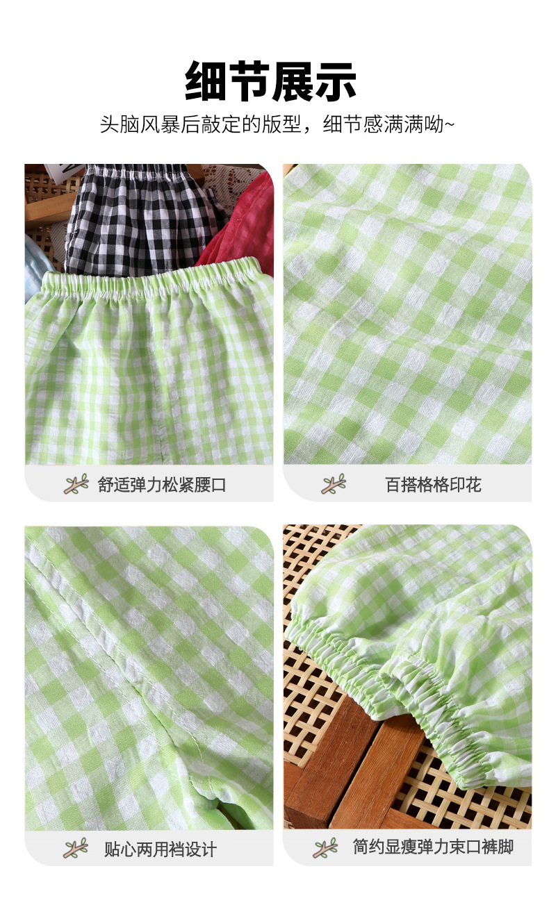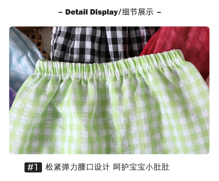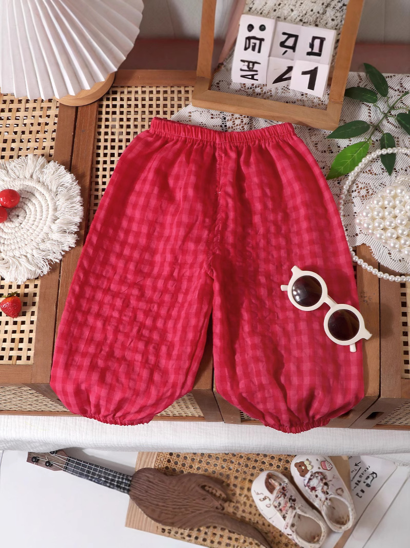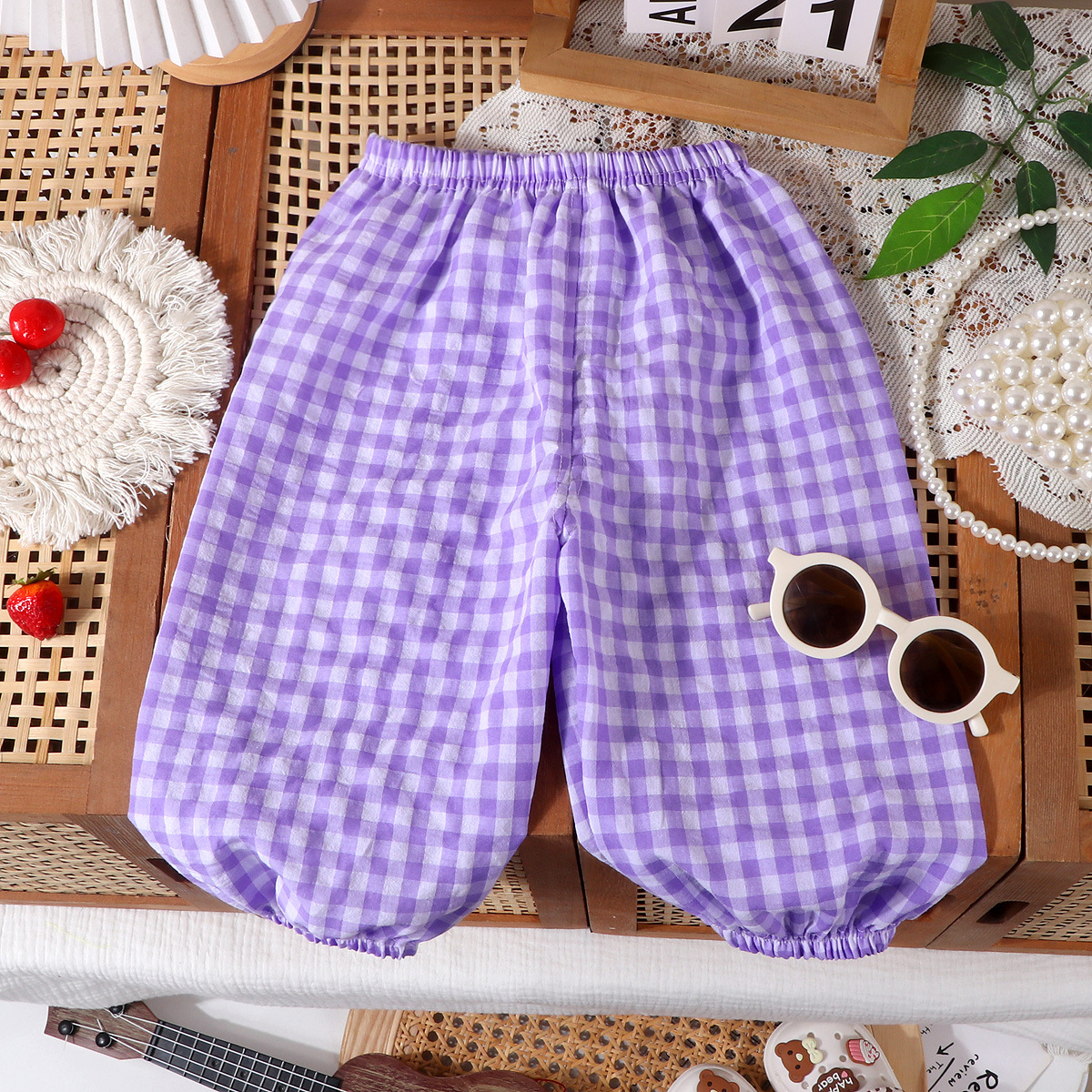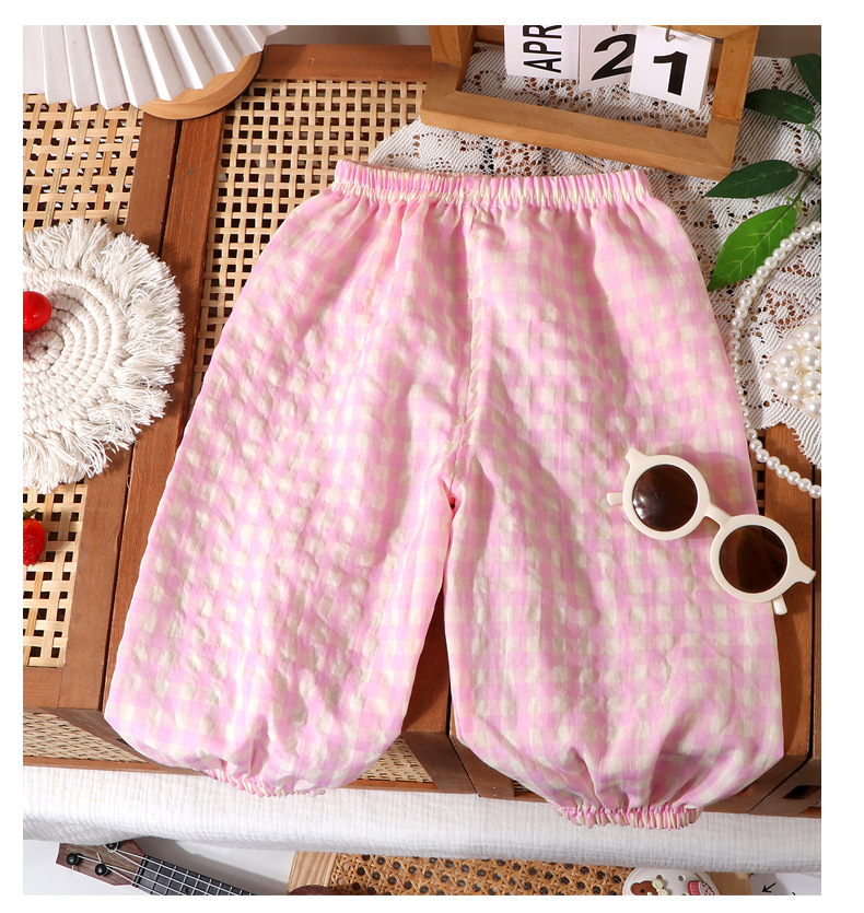 아동용 신상 여름 모기 방지 바지, 남아 및 여아용 베이비 캐주얼 체크 무늬 블루머, 한국식 루즈한 발목 묶음 9부 바지스토어 가기
