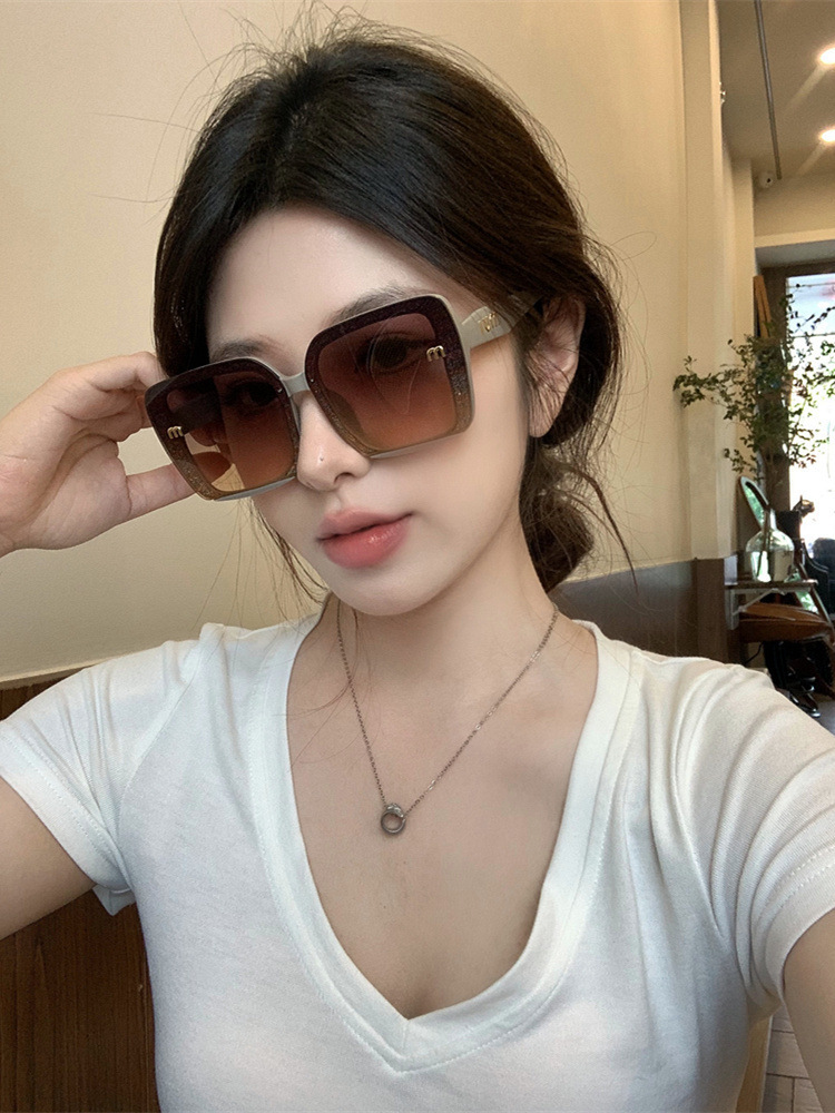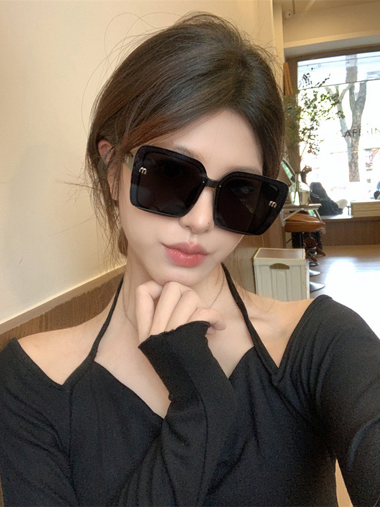한국식 대형 프레임 블랙 라운드 페이스 안티 UV 선글라스 여성 유행 우아한 고급 선스크린 선글라스스토어 가기