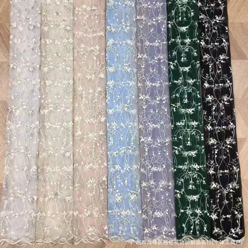 공장 직접 판매 소녀 메쉬 자수 2 색 작은 꽃 레이스 자수 레이스 원단 드레스 자수 천스토어 가기