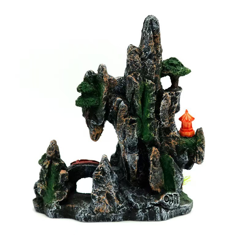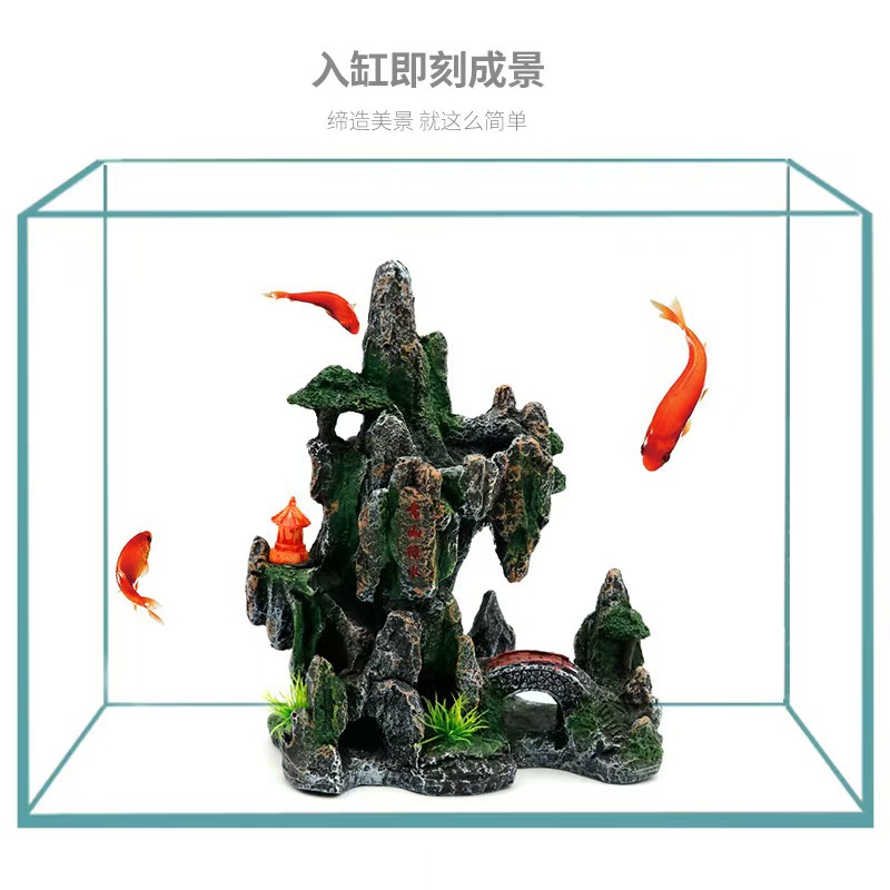 물고기 탱크 조경 분재 녹색 산 녹색 물 시뮬레이션 돌 산 수지 공예 수족관 장식 돌 예술스토어 가기
