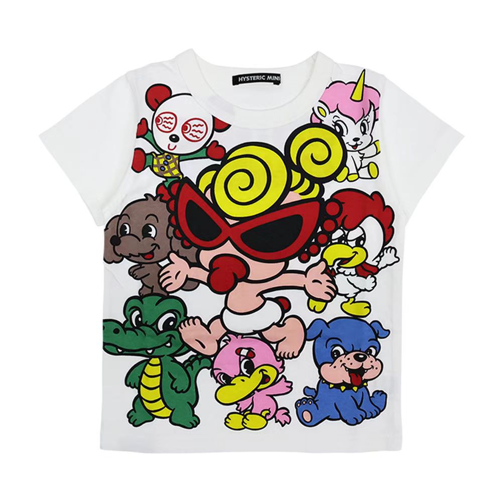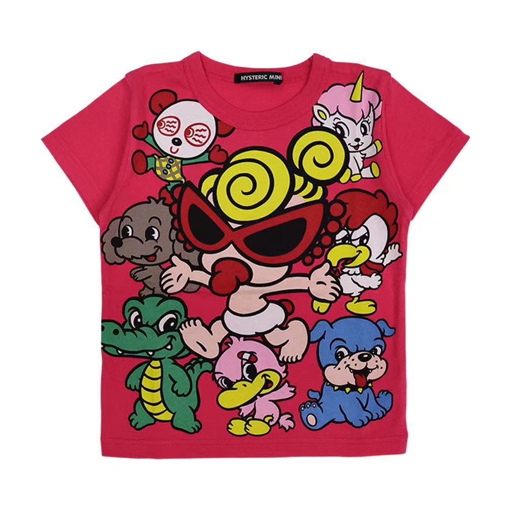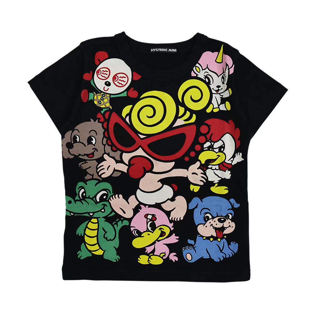 【재고 있음】고급 디자인 블랙 슈퍼25 여름 유니콘 패턴 남아 여아 순면 반팔 티셔츠