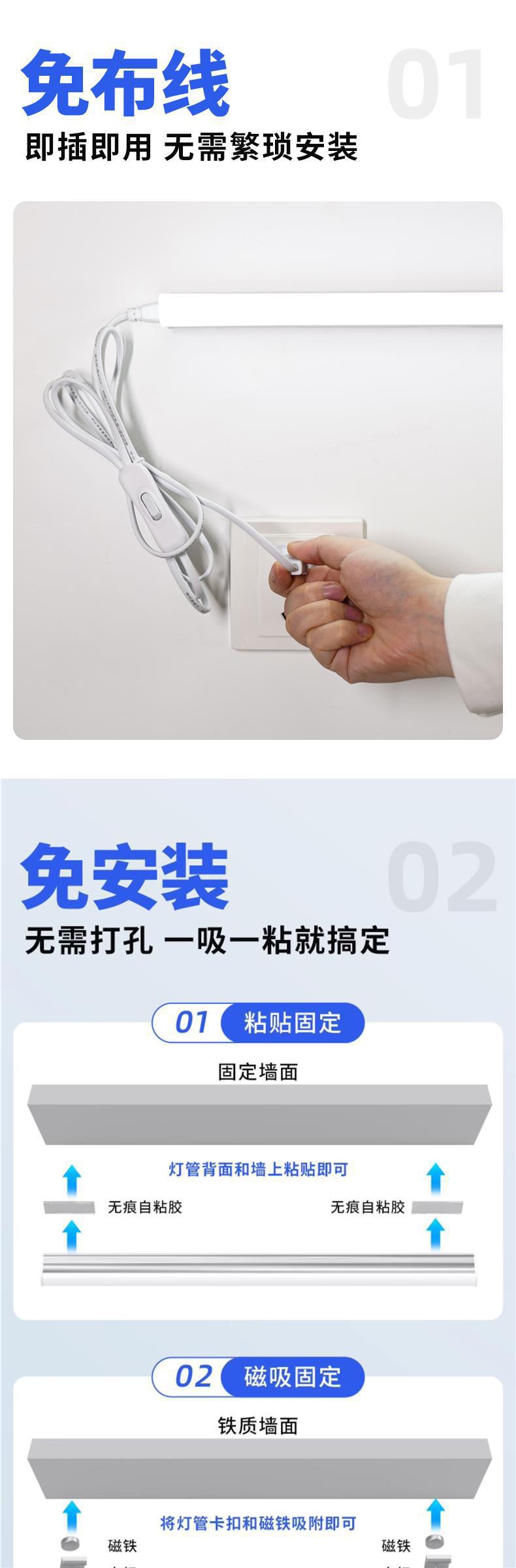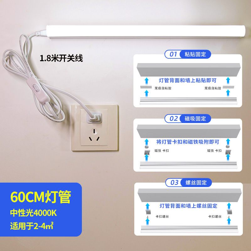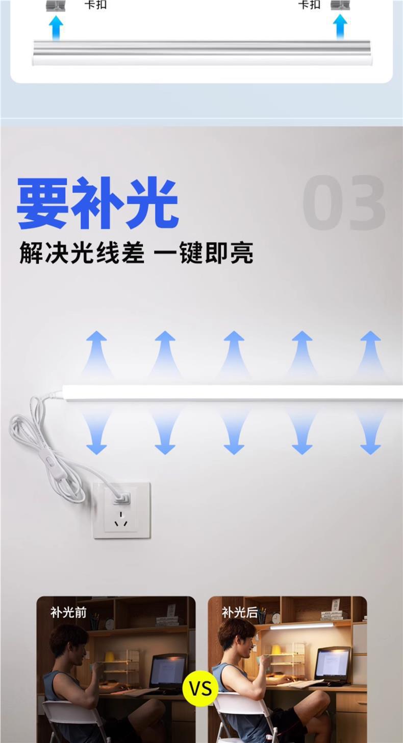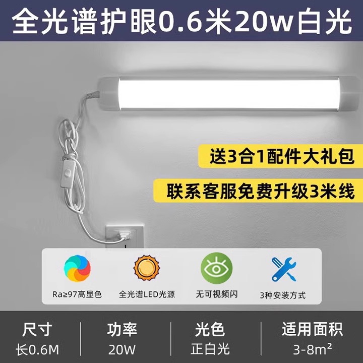 Led 라이트 바 데스크 튜브 인라인 눈 보호 설치-무료 학습 소켓 기숙사 벽 램프 침실스토어 가기