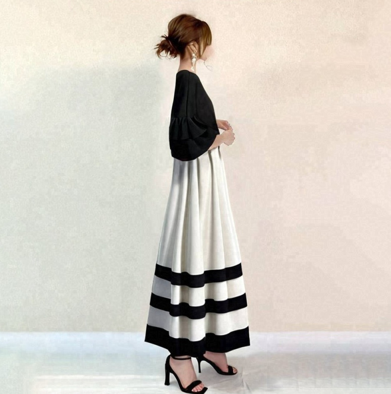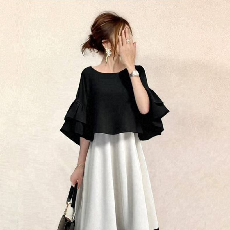 재고 일본 새로운 라운드 넥 플라잉 슬리브 원피스스토어 가기
