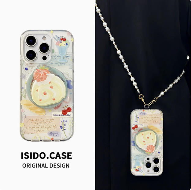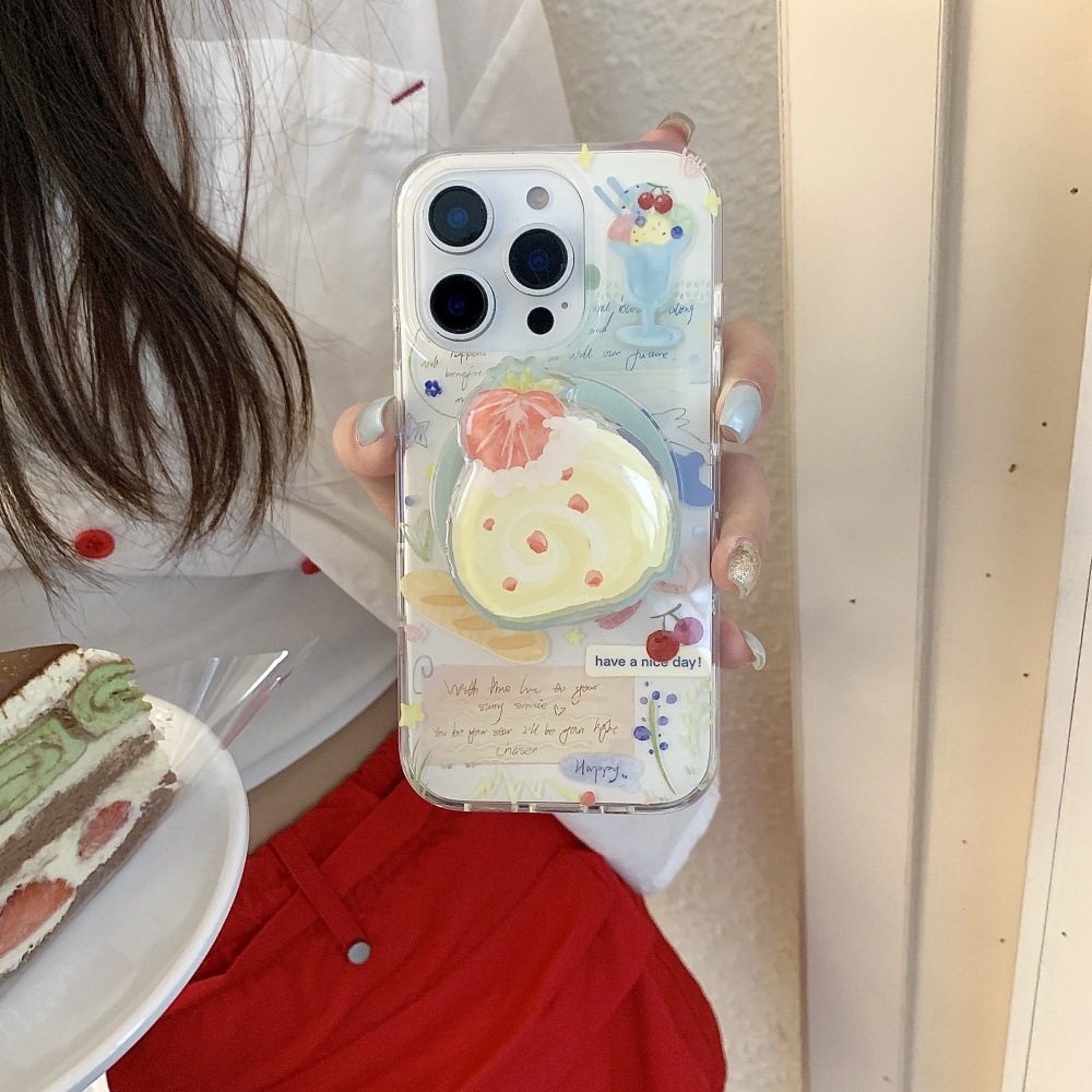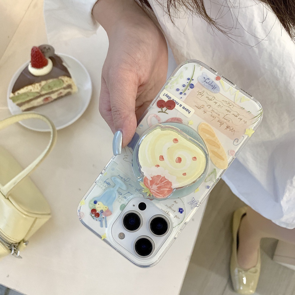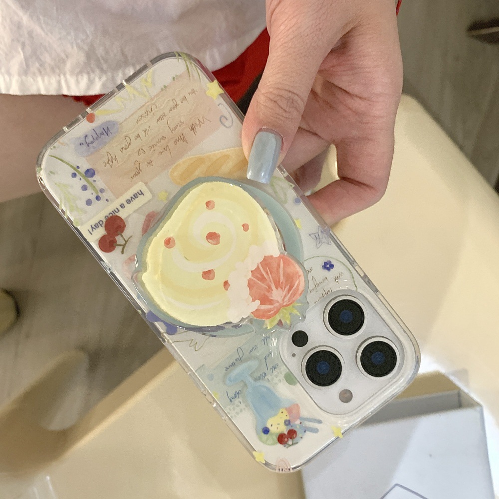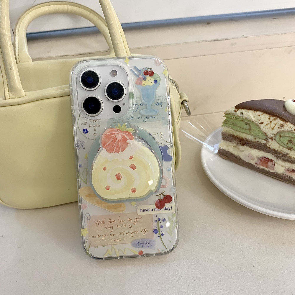 인스 스타일 유화 딸기 스위스 롤 케이크 아이폰16 케이스 17프로맥스 소녀 감성 14/15스토어 가기