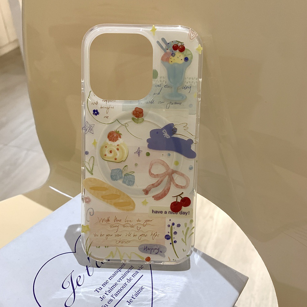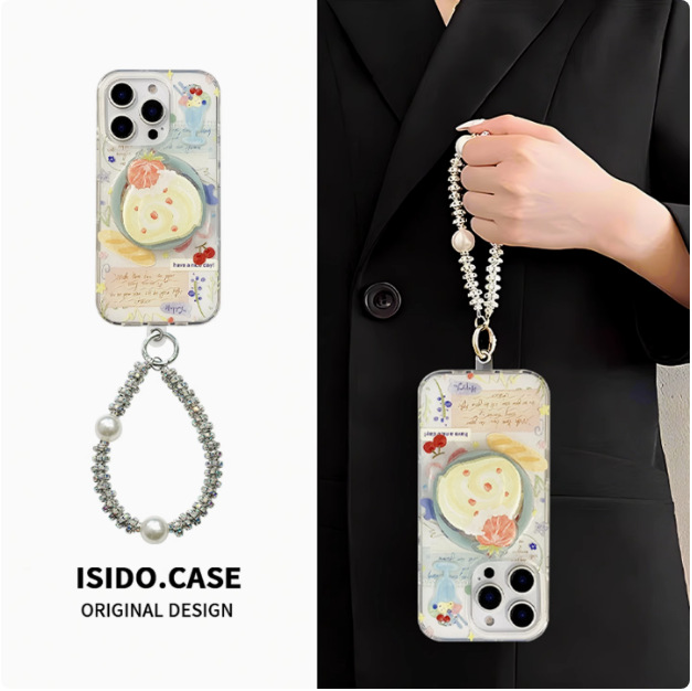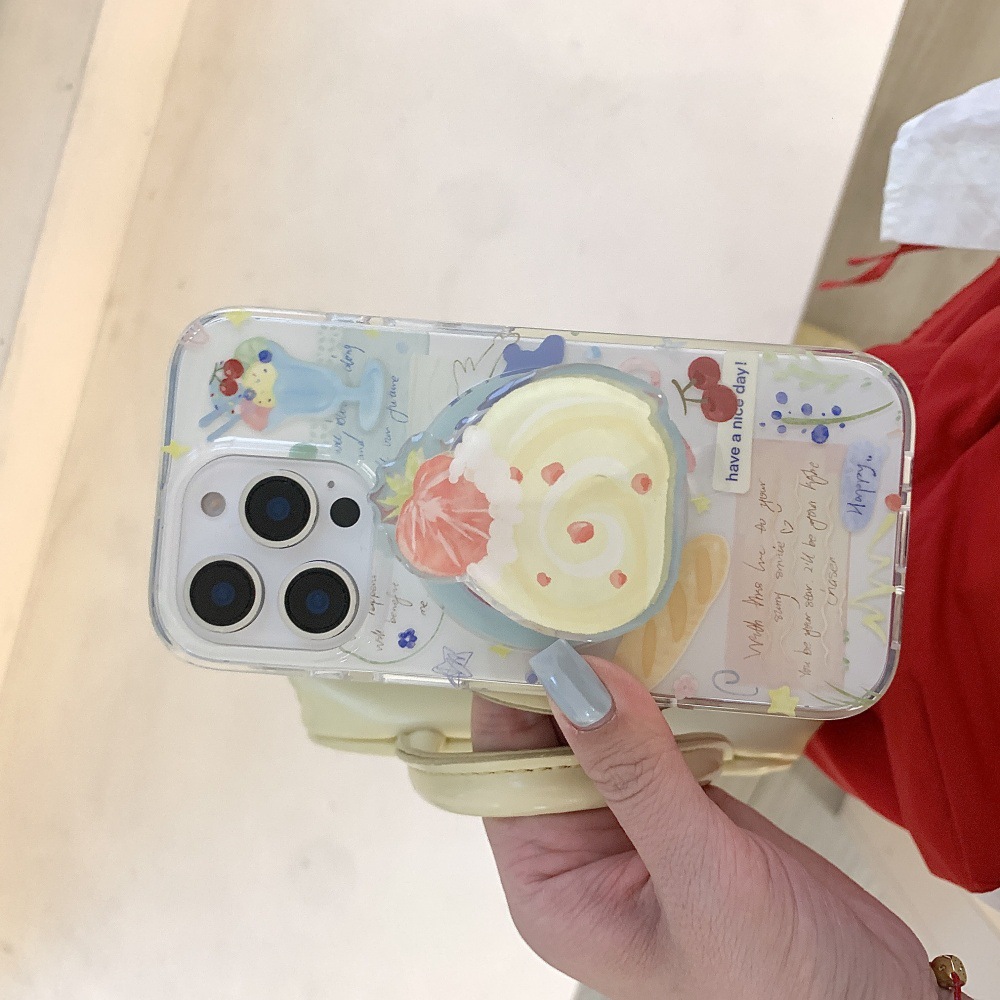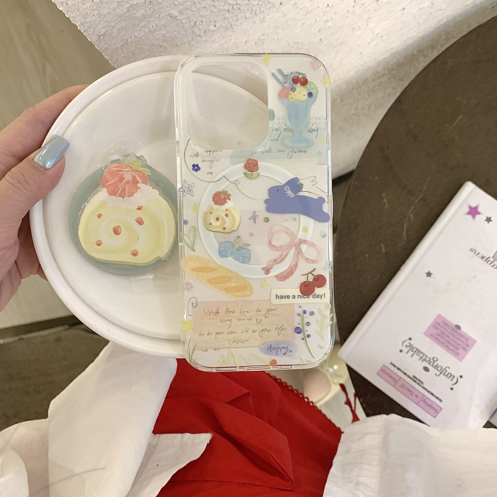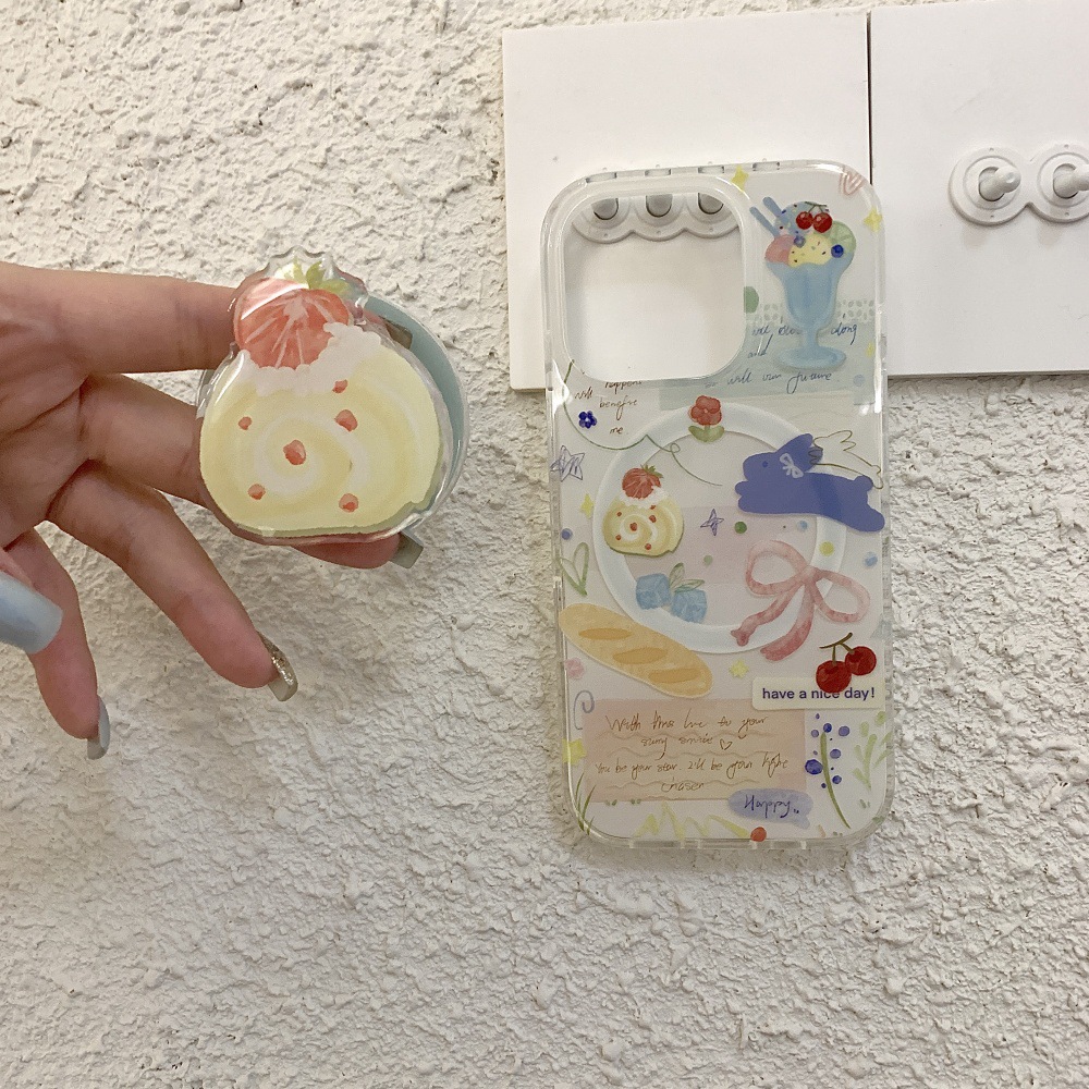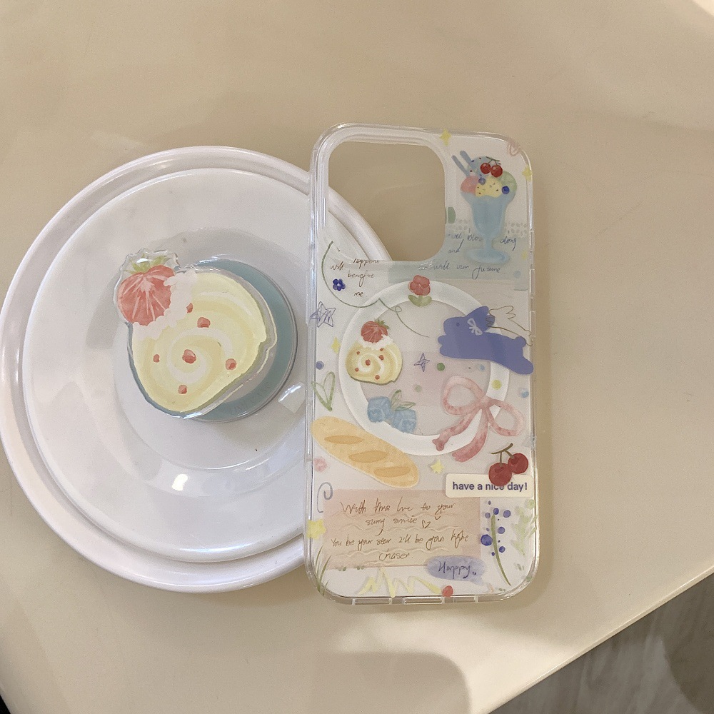 인스 스타일 유화 딸기 스위스 롤 케이크 아이폰16 케이스 17프로맥스 소녀 감성 14/15스토어 가기