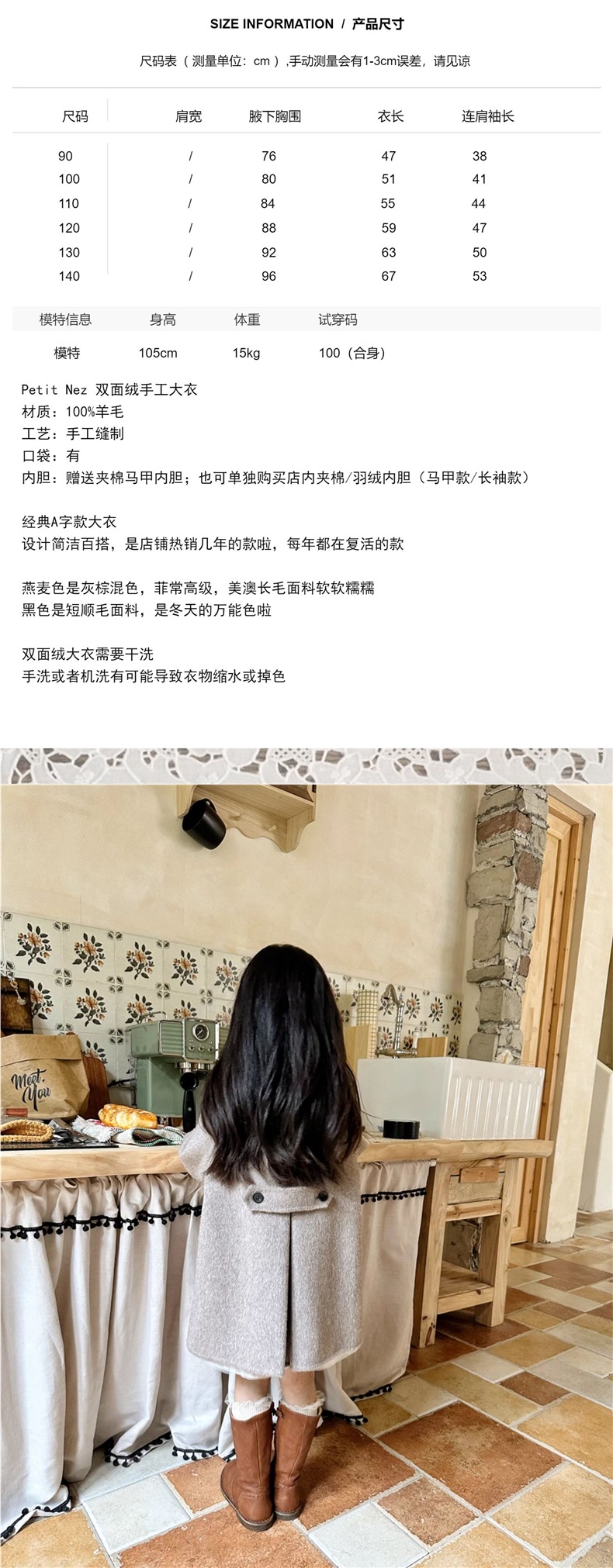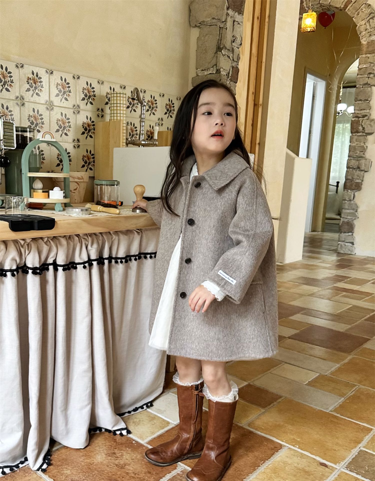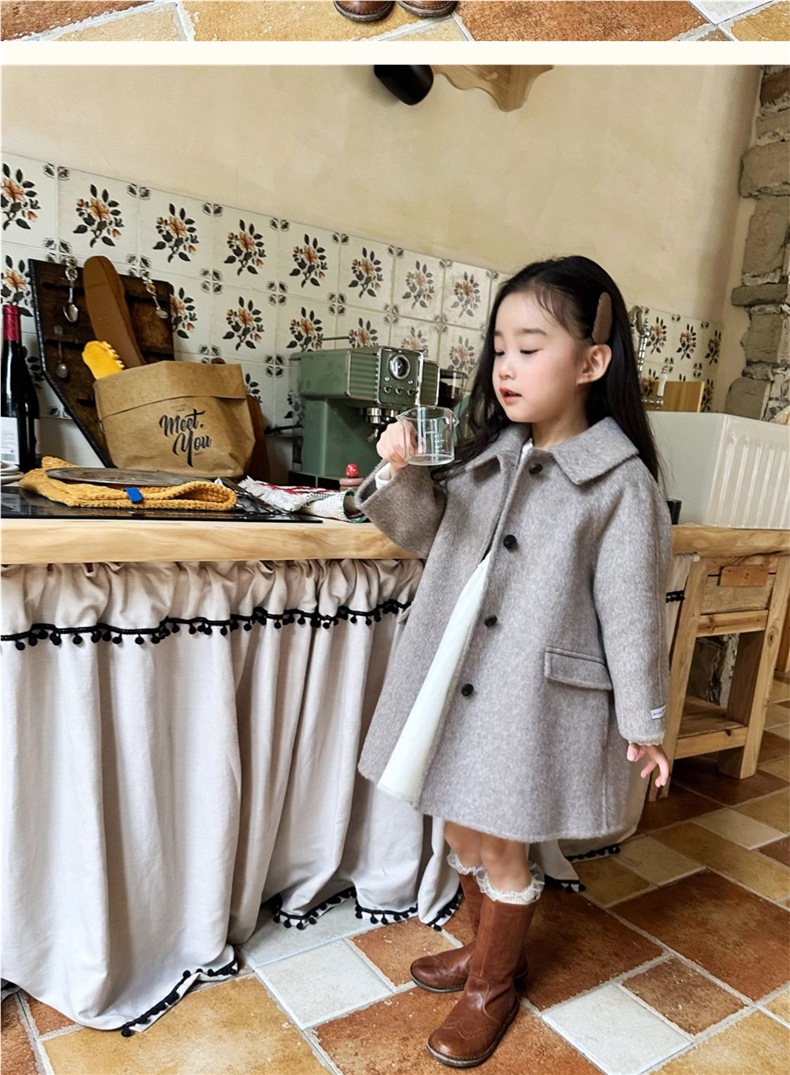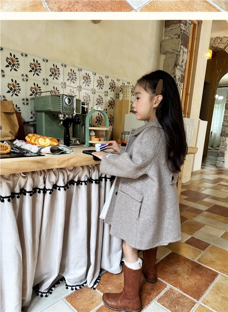 소녀들의 봄 · 가을 캐시미어 양모 코트 어린이 가을 · 겨울 한국식 서양식 중장년기 소녀 중장년기 코트스토어 가기