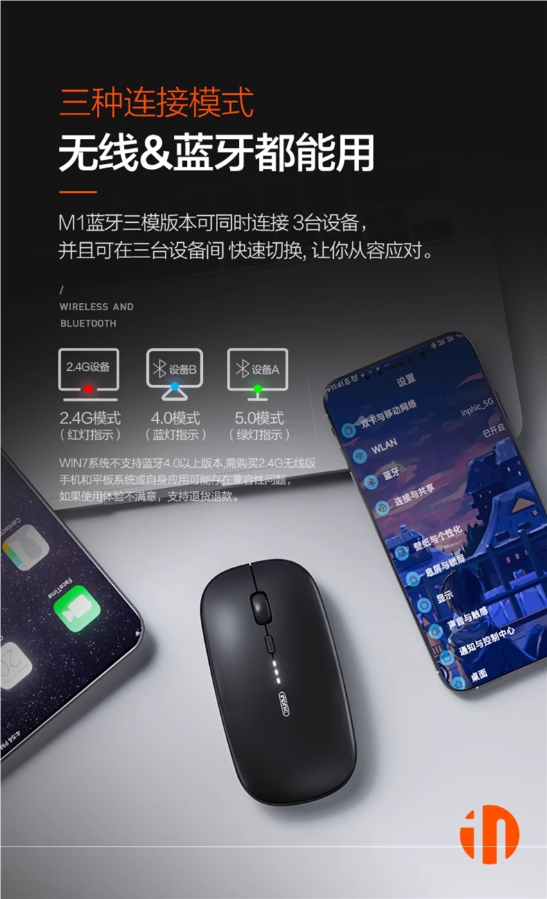 Infik M1 무선 마우스 블루투스 침묵하는 음란 노트북 충전식 소년 소녀용 애플스토어 가기
