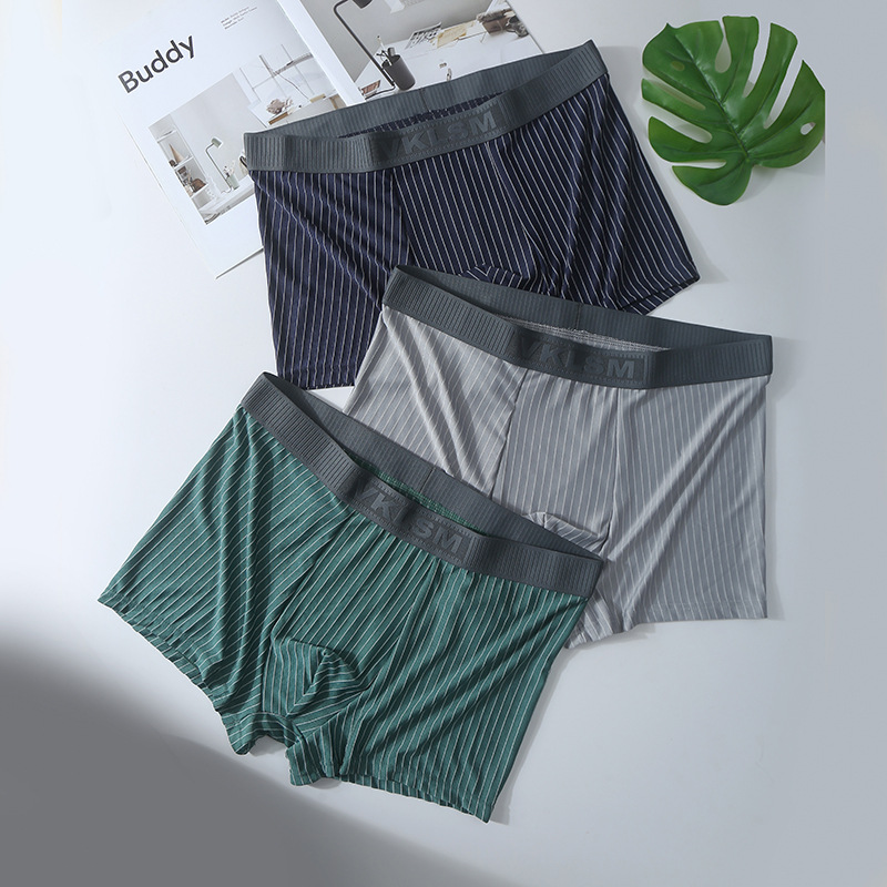 속옷 도매 스트라이프 프린트 무봉제 남성 속옷 중간 허리 복서 팬티 편안하고 통기성이 뛰어난 복서 팬티 청소년 반바지스토어 가기