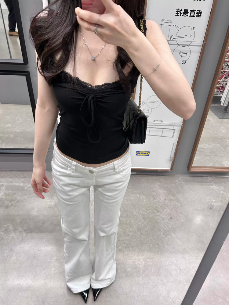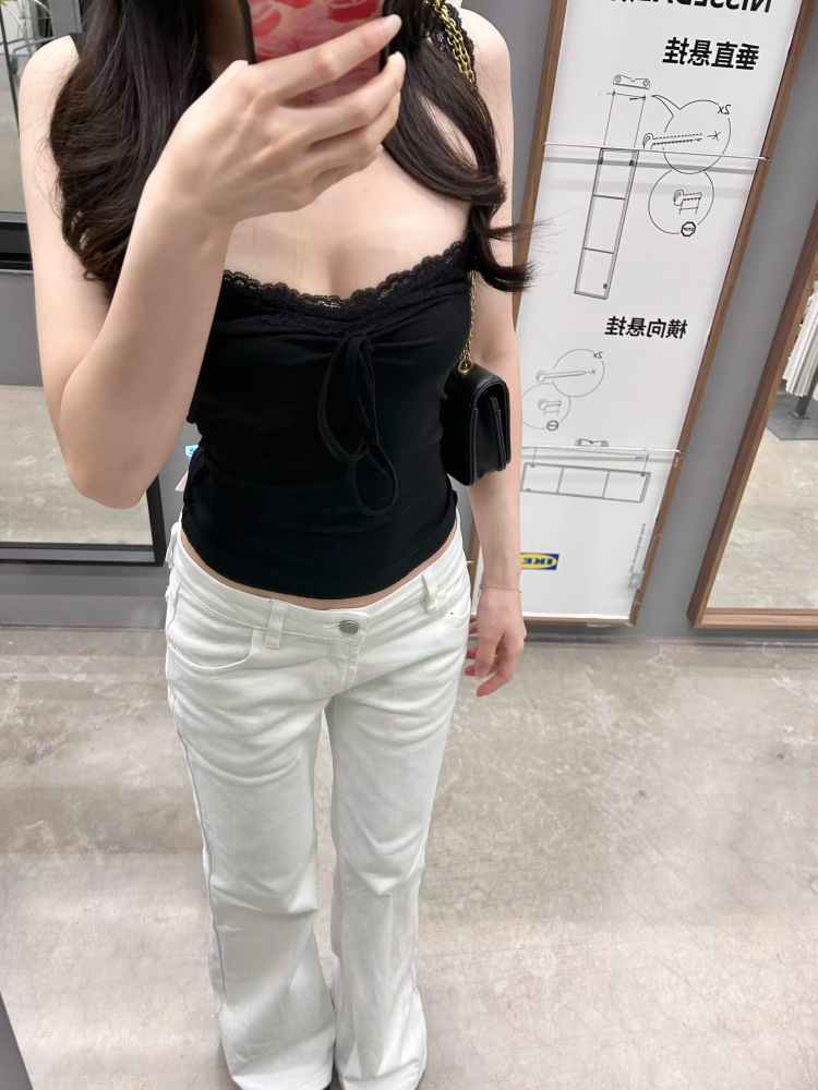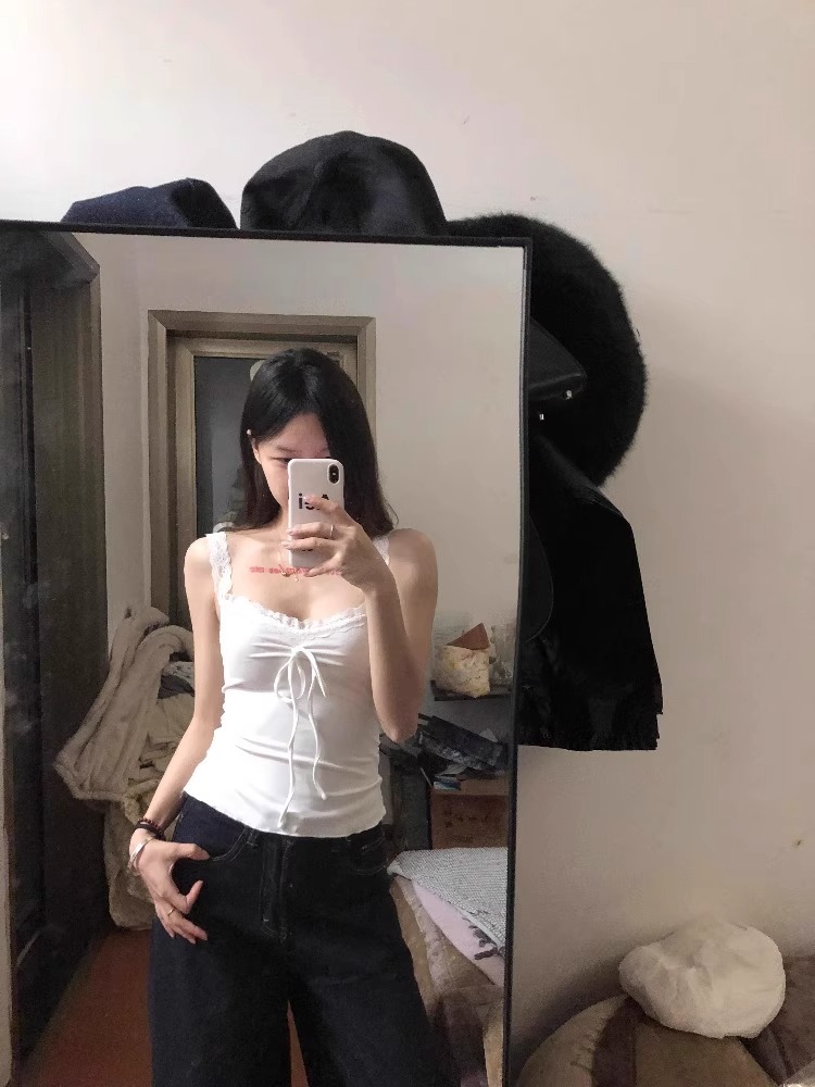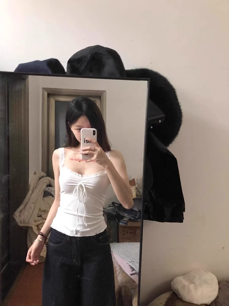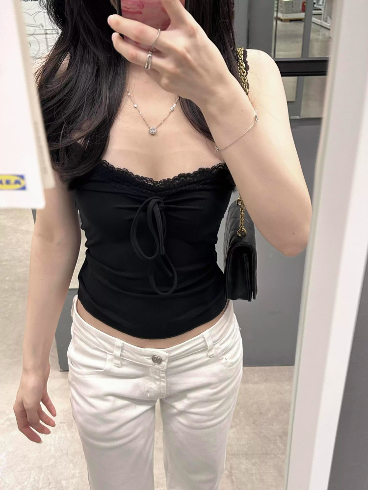 1*1 여름 슬리밍 캐주얼 다용도 탑 여성용 순수한 욕망 뜨거운 소녀 레이스 보우 캐미솔스토어 가기