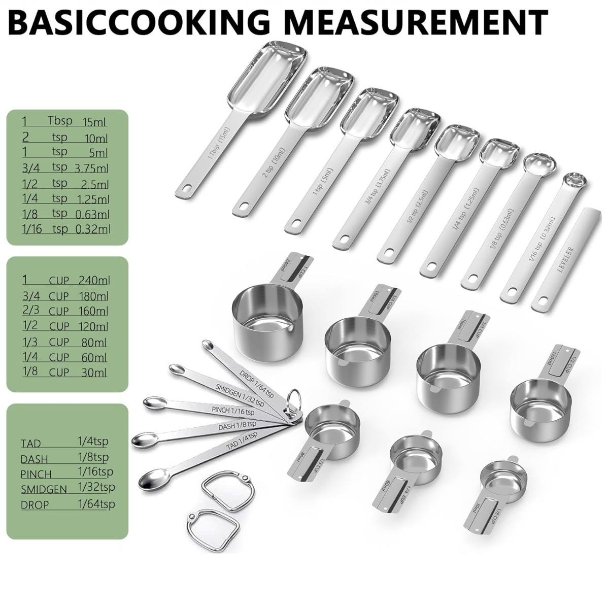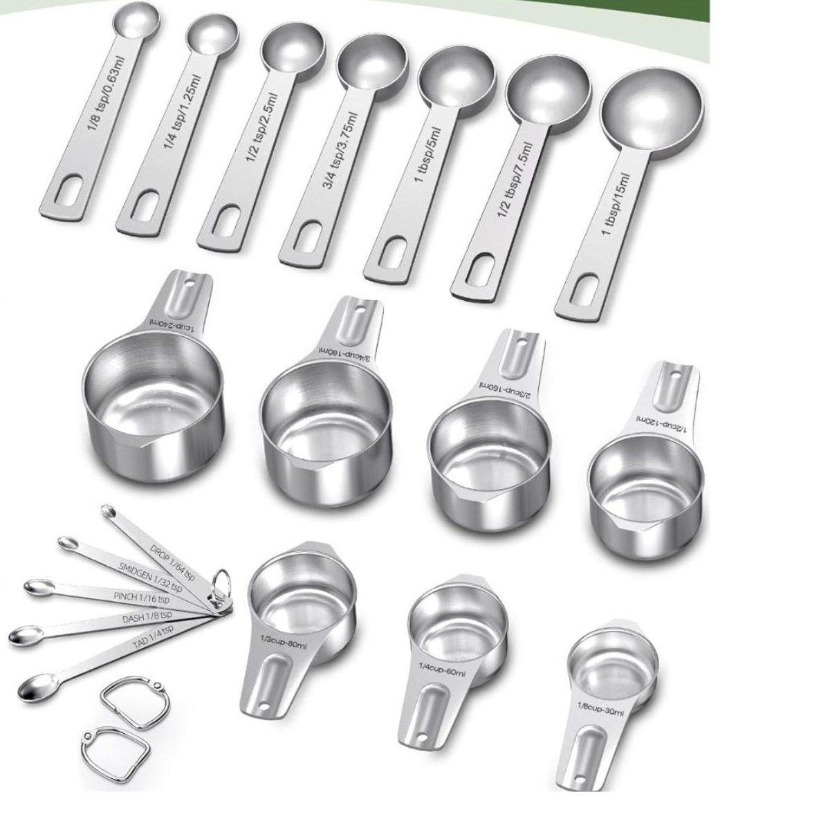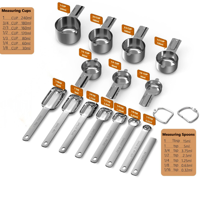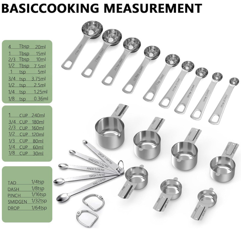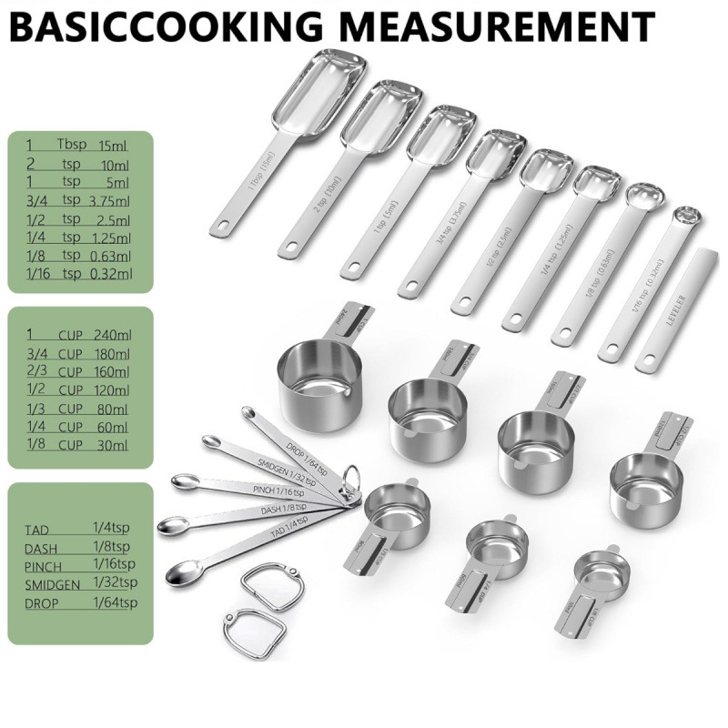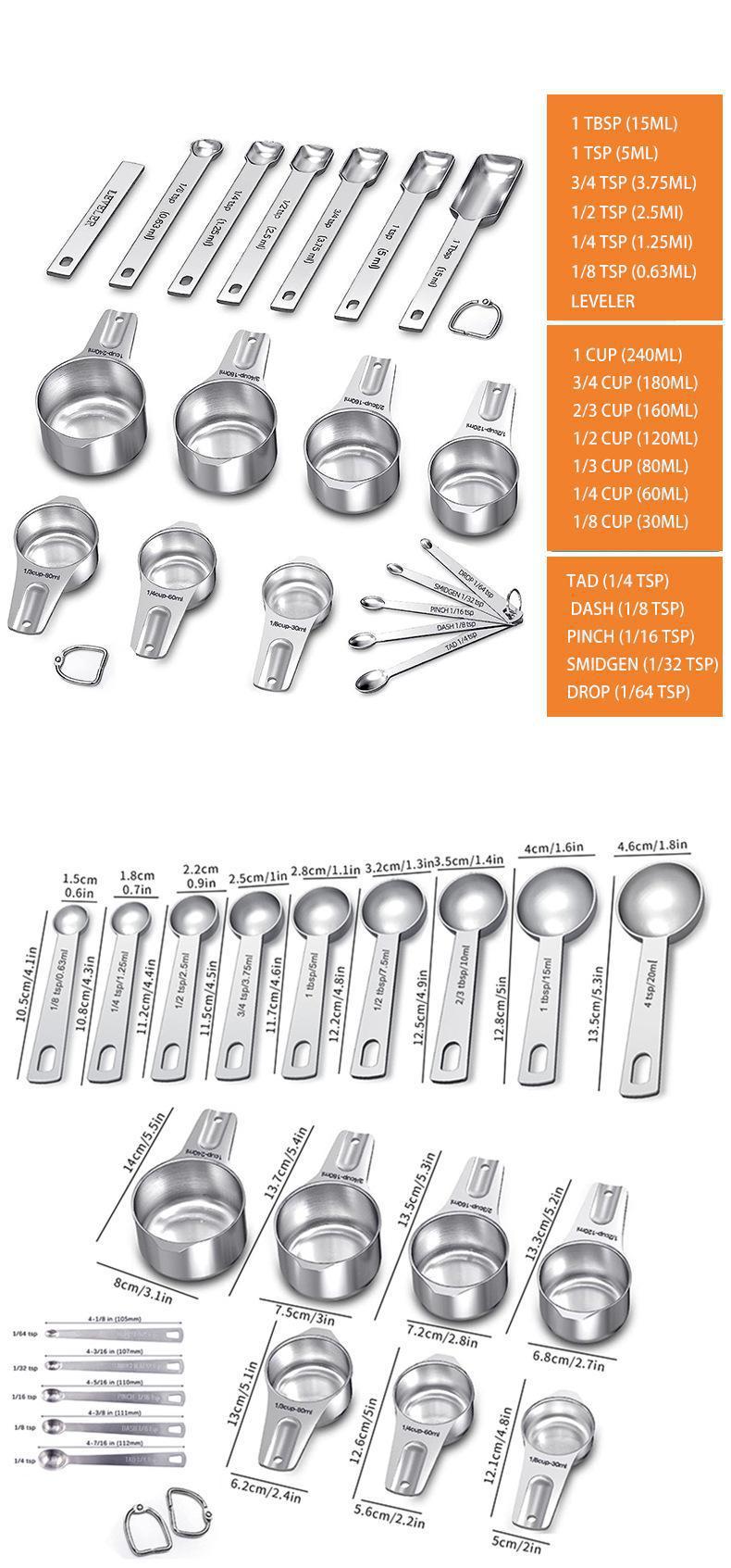 선호하는 스테인레스 스틸 측정 스푼 세트 가정용 베이킹 측정 컵 측정 숟가락 도매 21 개 세트 스케일 커피 스푼