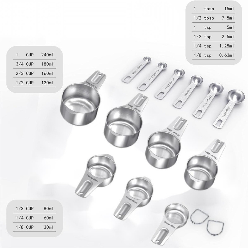 선호하는 스테인레스 스틸 측정 스푼 세트 가정용 베이킹 측정 컵 측정 숟가락 도매 21 개 세트 스케일 커피 스푼스토어 가기